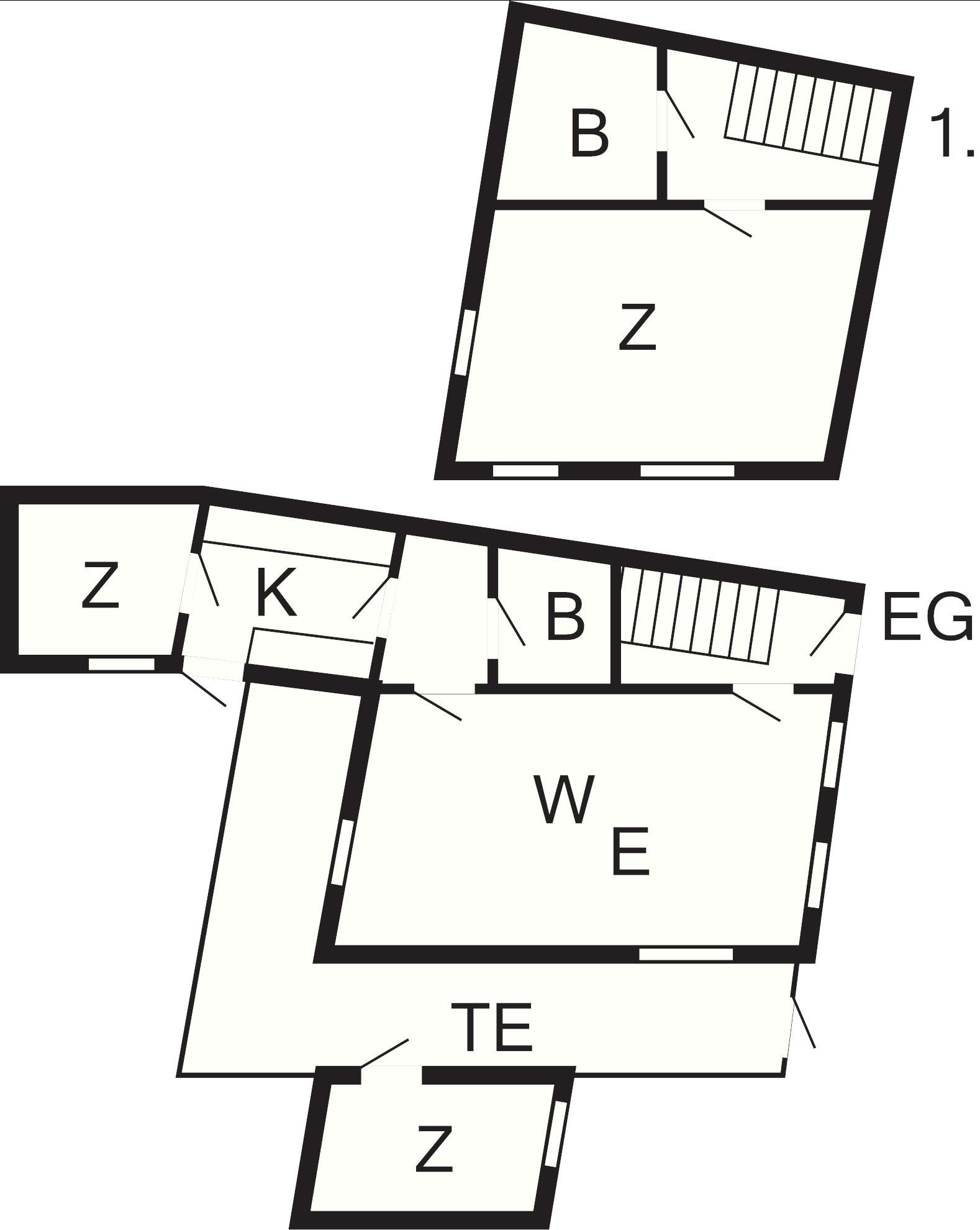u. Treppe nach oben, ein kleiner Wohn-/Essbereich, ein kleiner Raum mit