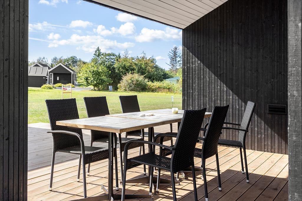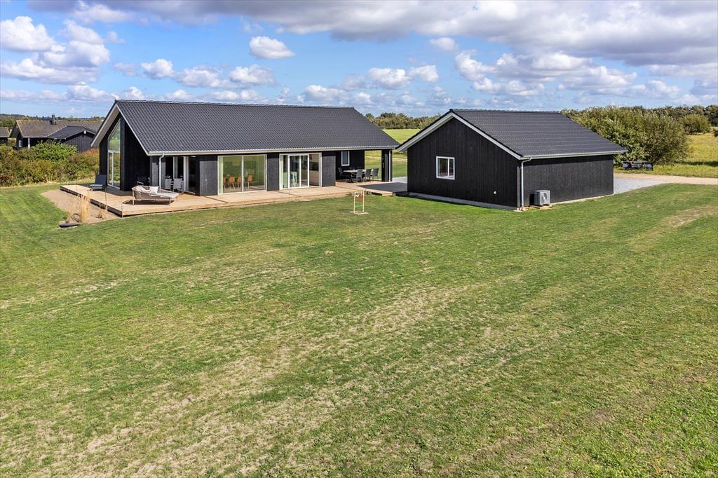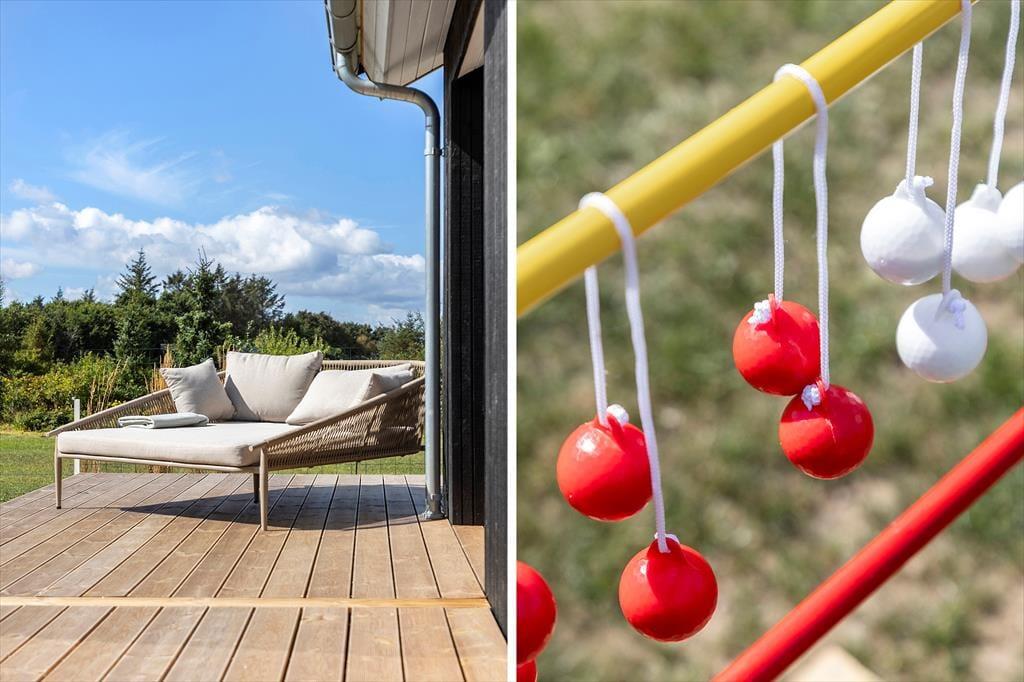 Draußen könnt ihr die Sommertage auf mehreren schönen Terrassen genießen – wahlweise überdacht oder in der Sonne. Die überdachte Terrasse eignet sich perfekt für den Morgenkaffee, wenn der Tau noch auf dem Gras liegt, oder für lange Sommerabende mit Grillgerichten und gemütlichem Beisammensein unter freiem Himmel – ganz ohne Sorgen über einen kurzen Schauer. Der Garten wird gerade angelegt und wird nach und nach noch einladender. Im Frühjahr werden ein Trampolin und Fußballtore aufgestellt sowie eine Feuerstelle und ein Sandkasten angelegt, sodass es viele Möglichkeiten zum Spielen, Beisammensein und für gemütliche Momente für Kinder und Erwachsene gibt. Der Garten wird damit zu einem natürlichen Treffpunkt, an dem die Urlaubstage in vollen Zügen genossen werden können.