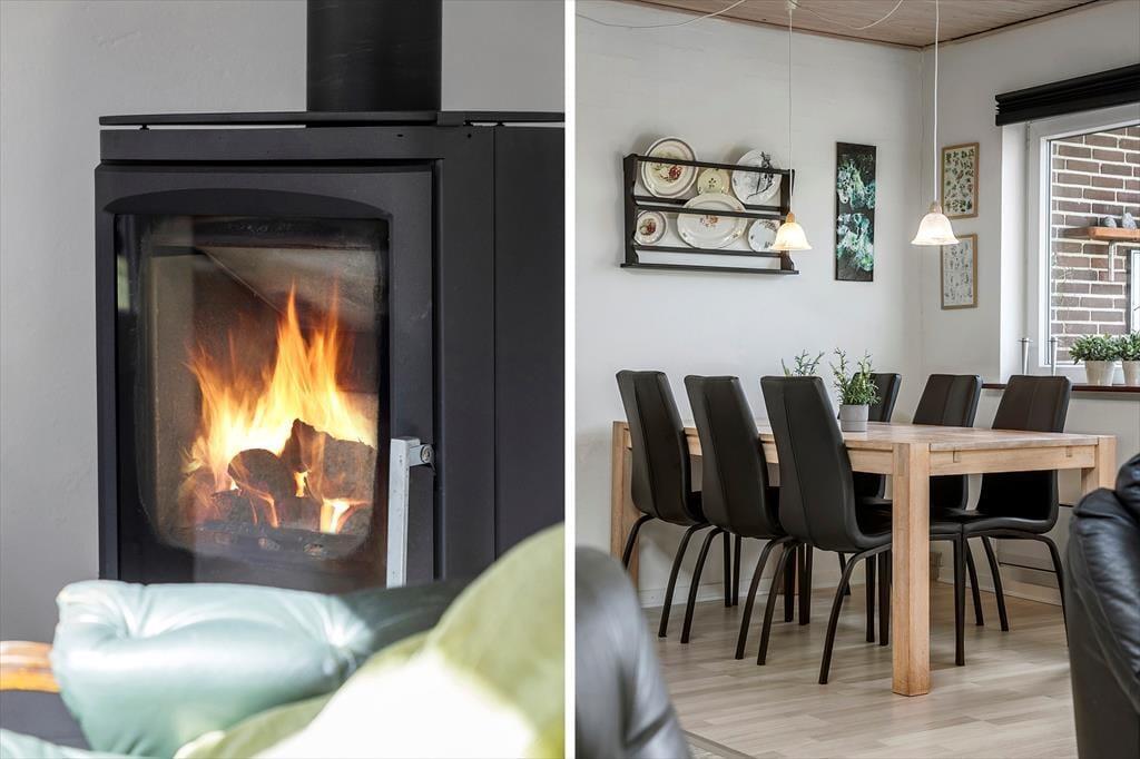 Schon beim ersten Schritt über die Türschwelle spürt man die gemütliche Ferienhausatmosphäre. Die Einrichtung ist hell und behaglich – hier wurde ein Herzstück geschaffen, in dem man sich sofort wie zu Hause fühlt. Im Wohnzimmer könnt ihr euch zu Kartenspielen, Gesprächen oder ruhigen Momenten versammeln – und wenn die Temperaturen sinken, lädt der Kaminofen dazu ein, einzuheizen und die wohlige Wärme sowie das Knistern des Feuers zu genießen. Vielleicht mit einer Tasse heißer Kakao in der Hand und einem guten Buch auf dem Schoß, während der Hund friedlich zu euren Füßen liegt. Das Haus bietet ausreichend Platz für fünf Erwachsene und ein Kind – perfekt also, um Freunde oder Familie mit in den Urlaub zu nehmen, ohne sich gegenseitig auf die Füße zu treten.