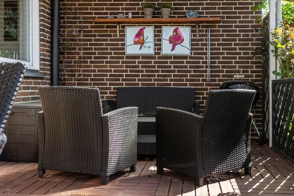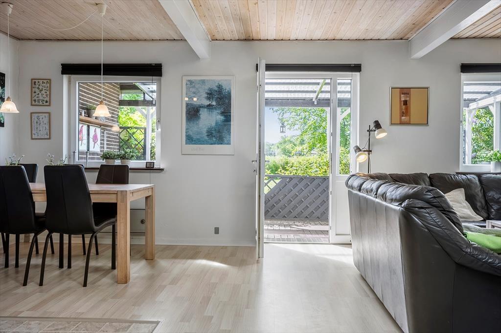 An warmen Sommertagen ist es herrlich, nach draußen zu gehen und die Sonne sowie die frische Luft zu genießen. Das Ferienhaus verfügt über eine schöne Terrasse, die zu Frühstück im Freien und langen, lauen Abenden mit Gegrilltem und Gesprächen bis tief in die Nacht einlädt. Hier könnt ihr euch in die Gartenstühle zurücklehnen, dem Zwitschern der Vögel in den Baumwipfeln lauschen oder beobachten, wie die Sonne am Horizont untergeht. Und da der Strand nur wenige Gehminuten entfernt ist, lässt sich ganz leicht ein erfrischender Sprung in den Limfjord einlegen – vielleicht sogar am frühen Morgen, wenn der Tau noch auf dem Gras liegt und die gesamte Gegend in friedlicher Stille ruht.