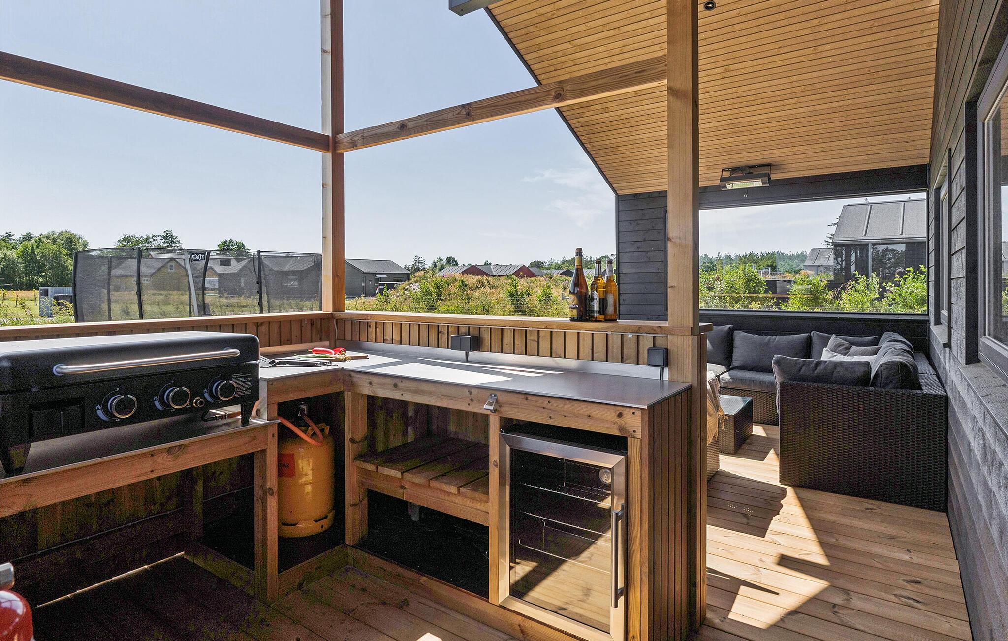Verbringen Sie viel Zeit im Freien, wo die Terrasse dazu einlädt, ausgiebig die Sonne zu genießen. Entspannen Sie mit kalten Getränken in den weichen Loungemöbeln unter dem Halbdach, während Ihre Kinder sich auf dem Trampolin vergnügen. Servieren Sie ein leckeres Abendessen unter freiem Himmel und tauchen Sie im Whirlpool ab.