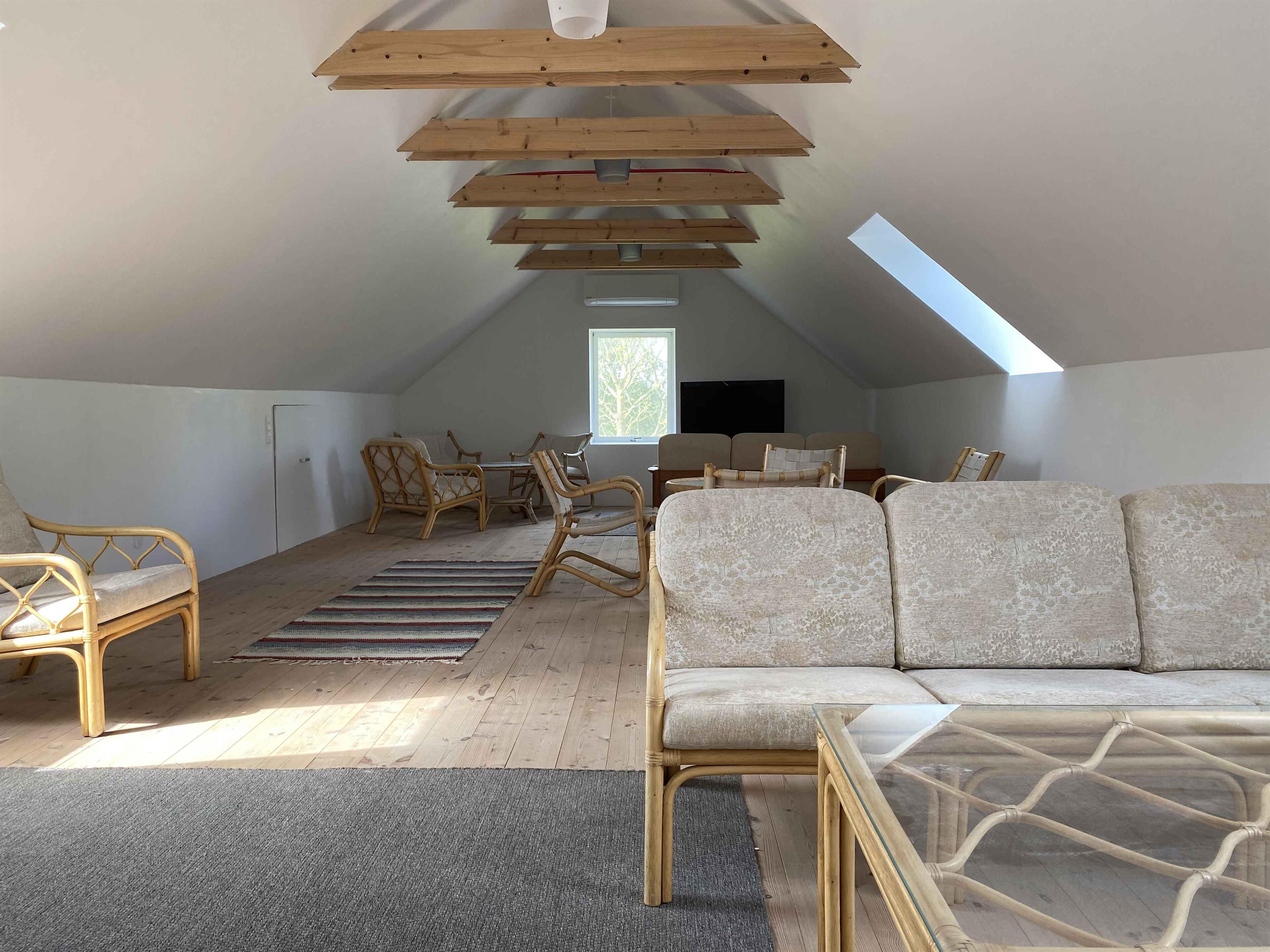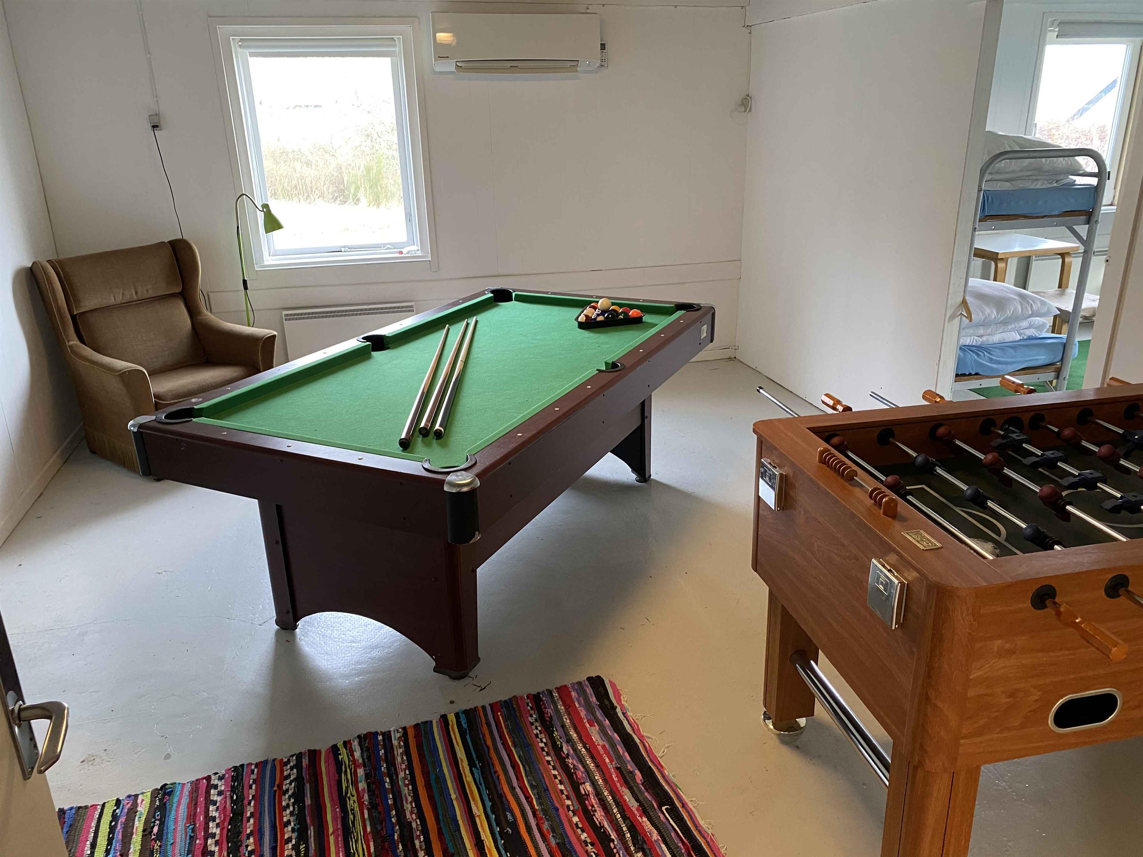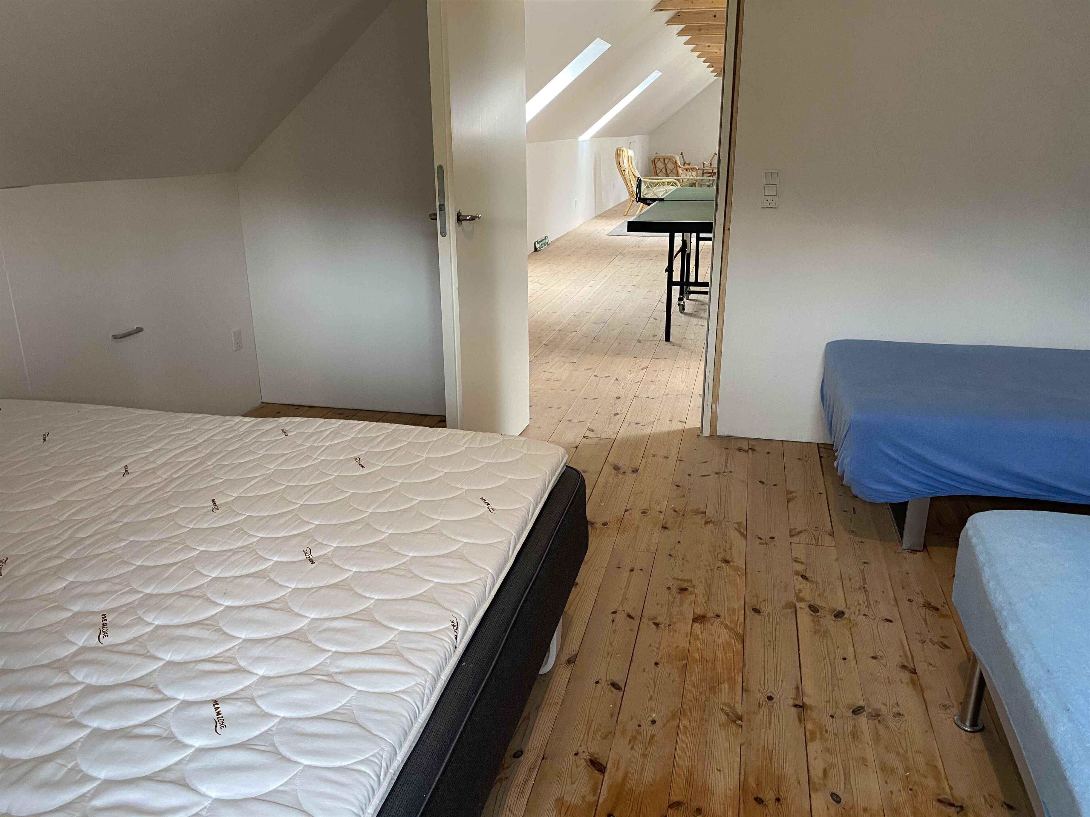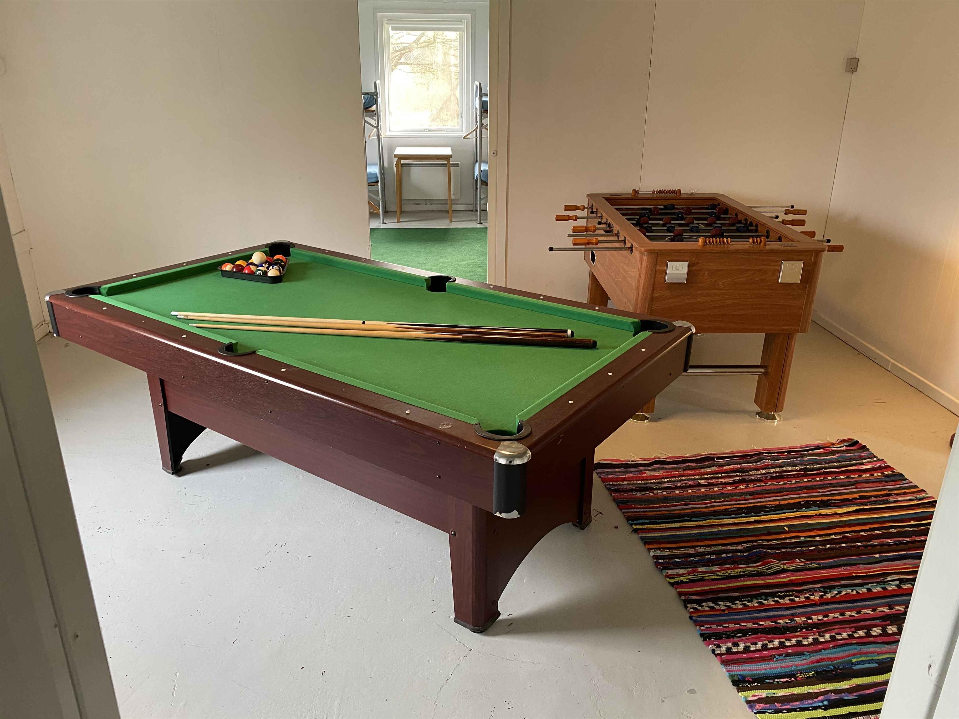 Dieses große Ferienhaus mit 340 m² bietet ganz besondere Möglichkeiten und Platz für bis zu 33 Personen. Wie der Name bereits andeutet, diente das Haus ursprünglich als Wohnhaus eines Lotsen und seiner Familie. Das Haus ist ein ehemaliges Schullandheim. Es handelt sich nicht um ein modernes Luxusferienhaus, sondern um eine leicht modernisierte Version eines früheren Gruppenhauses. Bitte erwarten Sie keinen Luxus. Aufteilung des Hauses (siehe Grundriss auf dem Foto): Küche mit 30 Sitzplätzen (mit Luft-Luft-Wärmepumpe). Wohnzimmer im Erdgeschoss mit weiteren 8–10 Sitzplätzen, Sofaecken und TV. Die Küche ist für die Verpflegung großer Gruppen ausgelegt und verfügt über Gasherd, Industrieofen und Geschirrspüler. Offene Verbindung zwischen Küche und Essbereich. Hochstuhl vorhanden. Aktivitätsraum (Zimmer 5) mit Billardtisch, Darts und Tischfußball (zusätzliche Wärmepumpe Nr. 2). Wohnzimmer im Obergeschoss (ca. 80 m²), geeignet als Kurs- oder Unterrichtsraum. Tischtennisplatte, Sitzgruppen, TV und PlayStation (Wärmepumpe Nr. 3). Schlafzimmer: Zimmer 1: 2 Etagenbetten + 2 Einzelbetten / 1 Doppelbett = 6 Schlafplätze Zimmer 2: 2 Etagenbetten = 4 Schlafplätze Zimmer 3: 2 Etagenbetten = 4 Schlafplätze Zimmer 4: 3 Etagenbetten + 1 Doppelbett = 8 Schlafplätze Zimmer 5: Aktivitätsraum Zimmer 6: 2 Etagenbetten + 2 Einzelbetten / 1 Doppelbett = 6 Schlafplätze Zimmer 7: 3 Einzelbetten + 1 Doppelbett / 2 Doppelbetten + 1 Einzelbett = 5 Schlafplätze Insgesamt 33 Schlafplätze (11 normale Betten und 22 Etagenbetten) sowie ein mobiles Gästebett und zusätzliche Matratzen. Zwei große Badezimmer mit jeweils 2 WCs, 1 Dusche und 7 Waschbecken – typische Schullandheim-Atmosphäre. Waschmaschine vorhanden. Die Zimmer 1 und 6 sind Durchgangszimmer zu den Badezimmern. Zusätzlich gibt es ein weiteres Bad mit Dusche und WC am Treppenaufgang. Das Haus liegt auf einem 7.740 m² großen Grundstück mit Feuerstelle und Ballspielplatz. Große Westterrasse (50 m²) mit Gartenmöbeln und Holzkohlegrill sowie Südterrasse (40 m²). Insgesamt 43 Stühle und 3 große Gartentische. Ideal für Familienfeiern, Geburtstage oder Gruppenurlaube mit mehreren Familien oder Freunden. Bis zu 2 Haustiere erlaubt. Kostenloses Internet sowie PC/Spielkonsole vorhanden. Beheizung durch Strom und Wärmepumpen. Parkplätze auf dem Grundstück. Im Yachthafen befindet sich eine holzbefeuerte Außensauna mit Blick auf den Fjord. Für Gäste des Hauses ist der Zugang kostenlos. Brennholz ist vorhanden; die Sauna muss etwa eine Stunde vorher angeheizt werden. Erst ins Wasser, dann entspannen in der Sauna mit herrlichem Fjordblick. Das Haus liegt auf Djursland in Udbyhøj Syd an der Mündung des Randers Fjords in den Kattegat. Das Dorf ist von schönen Stränden umgeben und ein beliebtes Feriengebiet. Mehrmals täglich verkehrt eine seilgezogene Fähre in nur vier Minuten zwischen Udbyhøj Syd und Udbyhøj Nord – ein Erlebnis für sich. Vom neuen 48 Meter langen, T-förmigen Badesteg aus gibt es beste Möglichkeiten zum Baden, Angeln sowie für Kanu und Kajak.