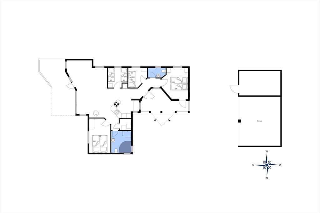 Das neuere Ferienhaus aus dem Jahre 2001 besticht mit echtem Ferienhauscharme. Der Innenbereich empfängt Sie mit holzverkleideten Wänden und hohen Decken. Der im Wohnraum platzierte Kamin komplementiert die typisch dänische Gemütlichkeit. Die wohl durchdacht aufgeteilte Wohnfläche bietet Ihnen auf 107 m² viel Komfort. So befinden sich beispielsweise das Badezimmer und das Gäste-WC an jeweils einem Ende des Hauses. Auch die vier Schlafräume liegen gut verteilt, wodurch ein angenehmer Grad an Privatsphäre geschaffen wird. In den bereits erwähnten Wohnraum ist die gut ausgestattete Küche integriert. Der wunderbar große, schöne Raum wirkt Dank der bodentiefen Fenster, die bis zur Decke reichen, um ein Vielfaches größer und begeistert mit einem schönen Lichteinfall. Die Glasfront schafft zudem einen sehr schönen, fließenden Übergang zwischen dem Haus, der nach Westen gerichteten Terrasse und den Außenbereichen.