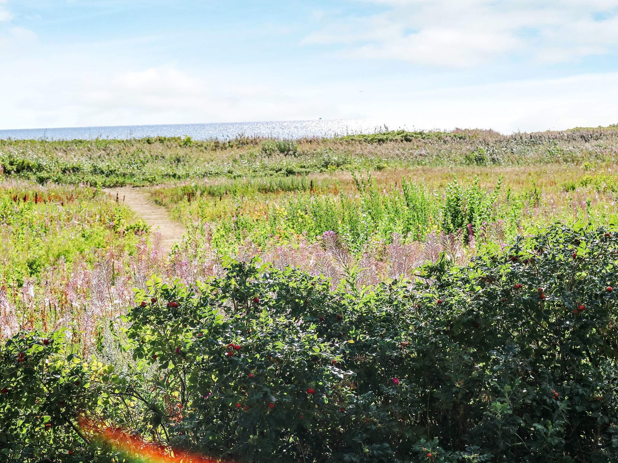 Mehrere Terrassenflächen umgeben das Haus, von denen die eine überdacht und zum Wasser und Innenhof ausgerichtet ist. Das Haus liegt am Ende eines kleinen Weges in einem ruhigen Ferienhausgebiet. Auf dem Grundstück gibt es Schaukeln, einen Sandkasten, eine Feuerstelle sowie viele gemütliche Sitzplätze.