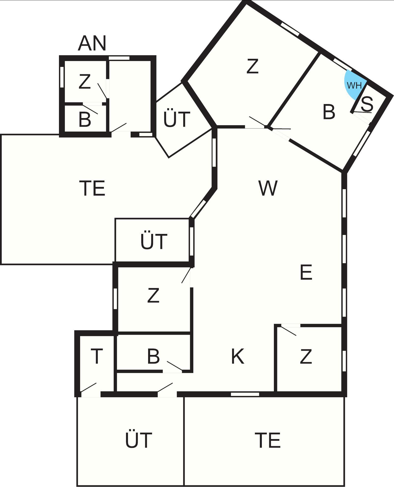 Bad: Waschm, Trockner, WC, Waschb., Dusche, Fußbodenheiz.
