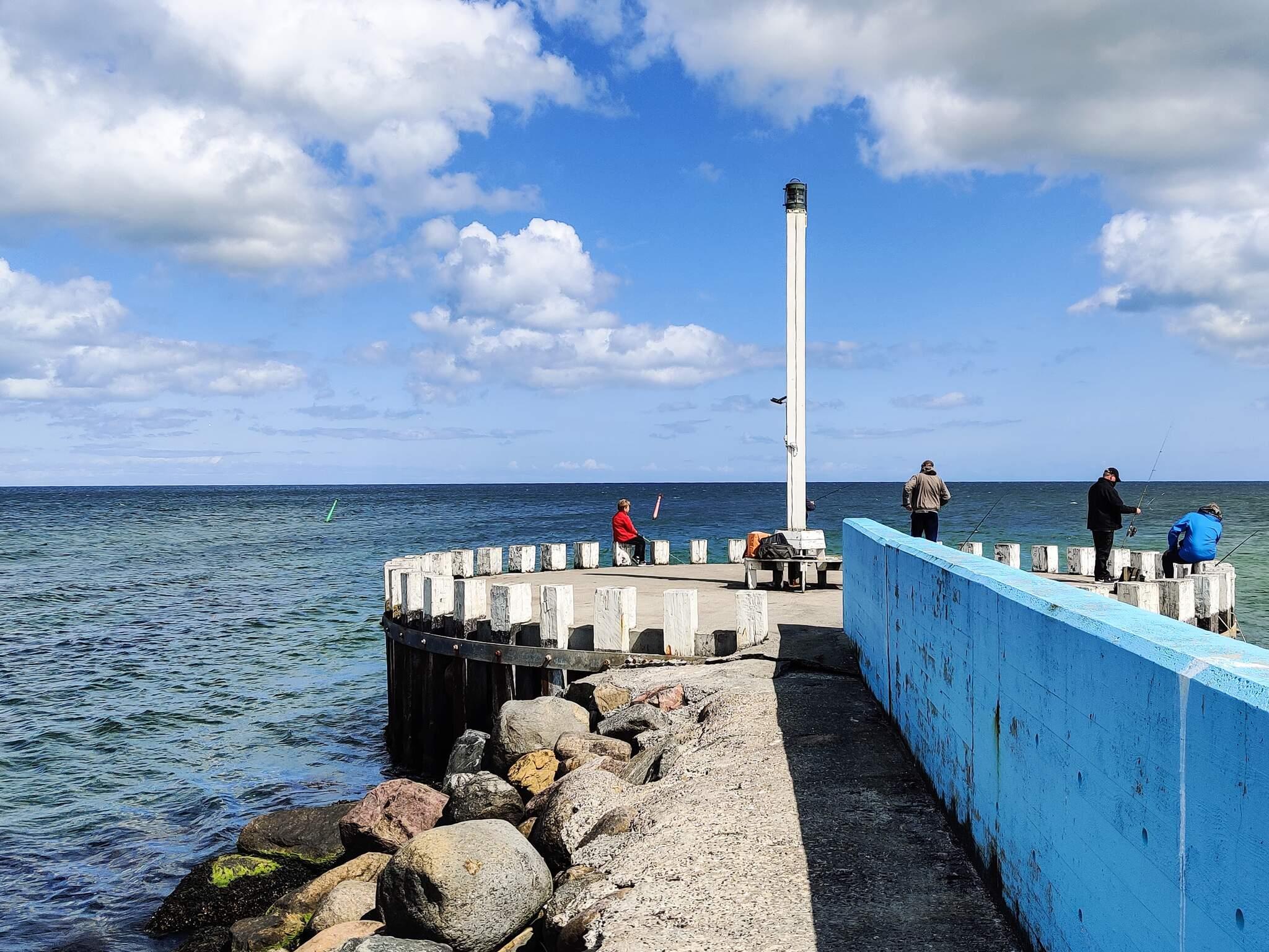 Ferienwohnung mit Meerblick und zugleich besonders attraktiver Lage im Ort, direkt neben dem kinderfreundlichen Strandufer sowie unweit des kleinen Hafens und des Ortskerns von Øster Hurup.