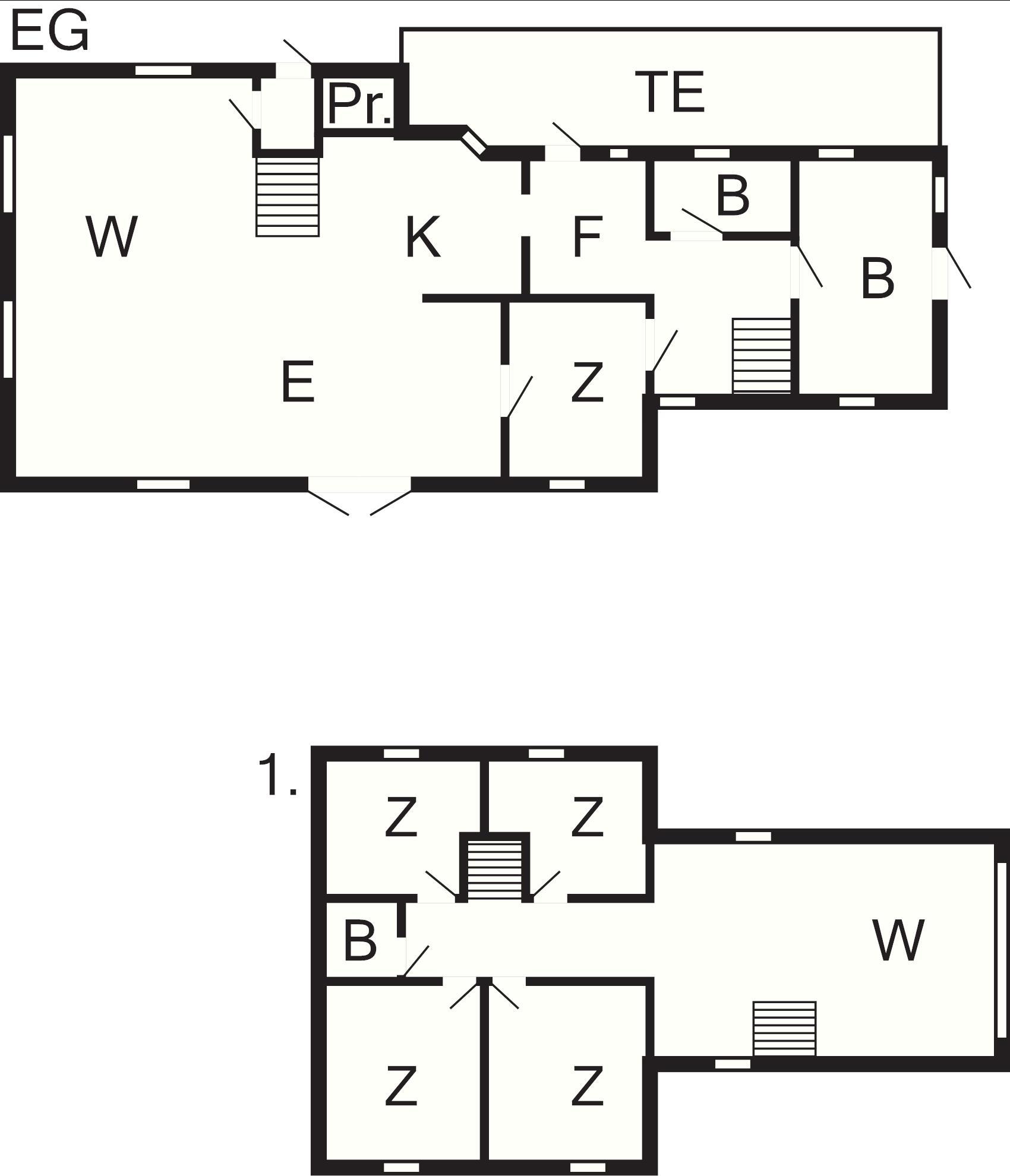 Bad: Waschm, Trockner, WC, Waschb., Dusche, Fußbodenheiz.