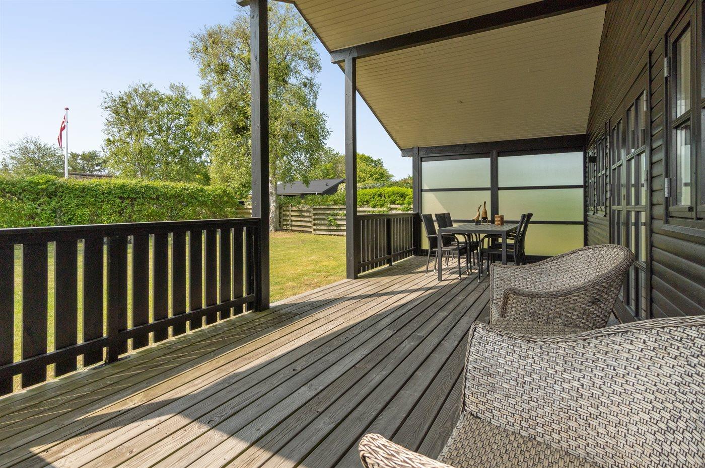 100 m vom kinderfreundlichen Badestrand liegt dieses prachtvolle Ferienhaus. Das Haus liegt auf einem Natur-/Gartengrundstück, von dem aus du das Meer ahnen kannst. Zum Haus gehört eine schöne, überdachte Terrasse mit Gartenmöbeln.