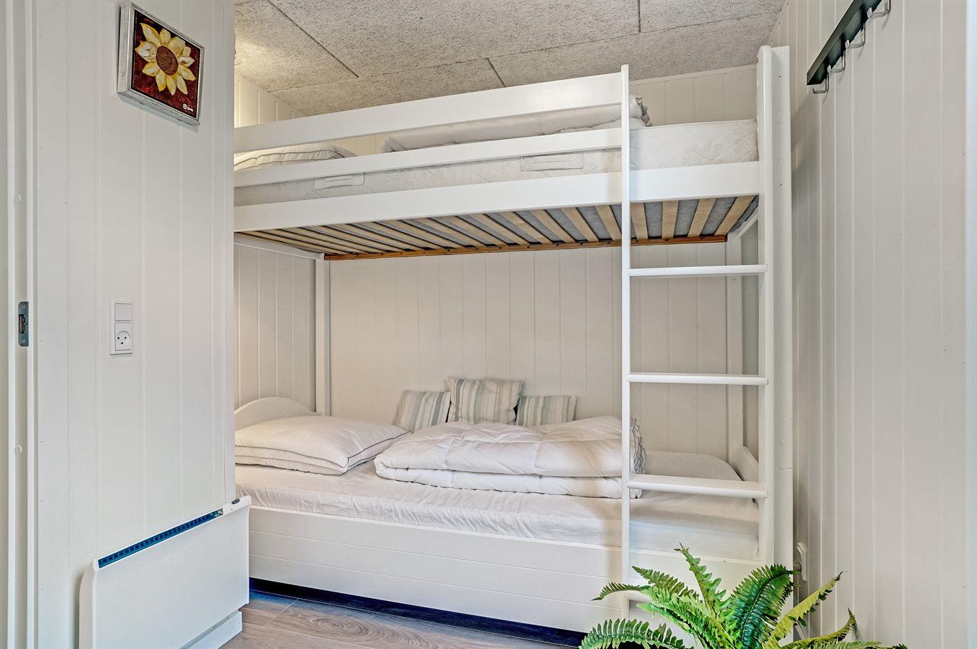 Die Schlafplätze verteilen sich auf 4 Schlafräume. 6 Schlafplätze in Doppelbetten. 2 Schlafplätze in einem Etagenbett. Ferner steht ein Kinderbett zur Verfügung.