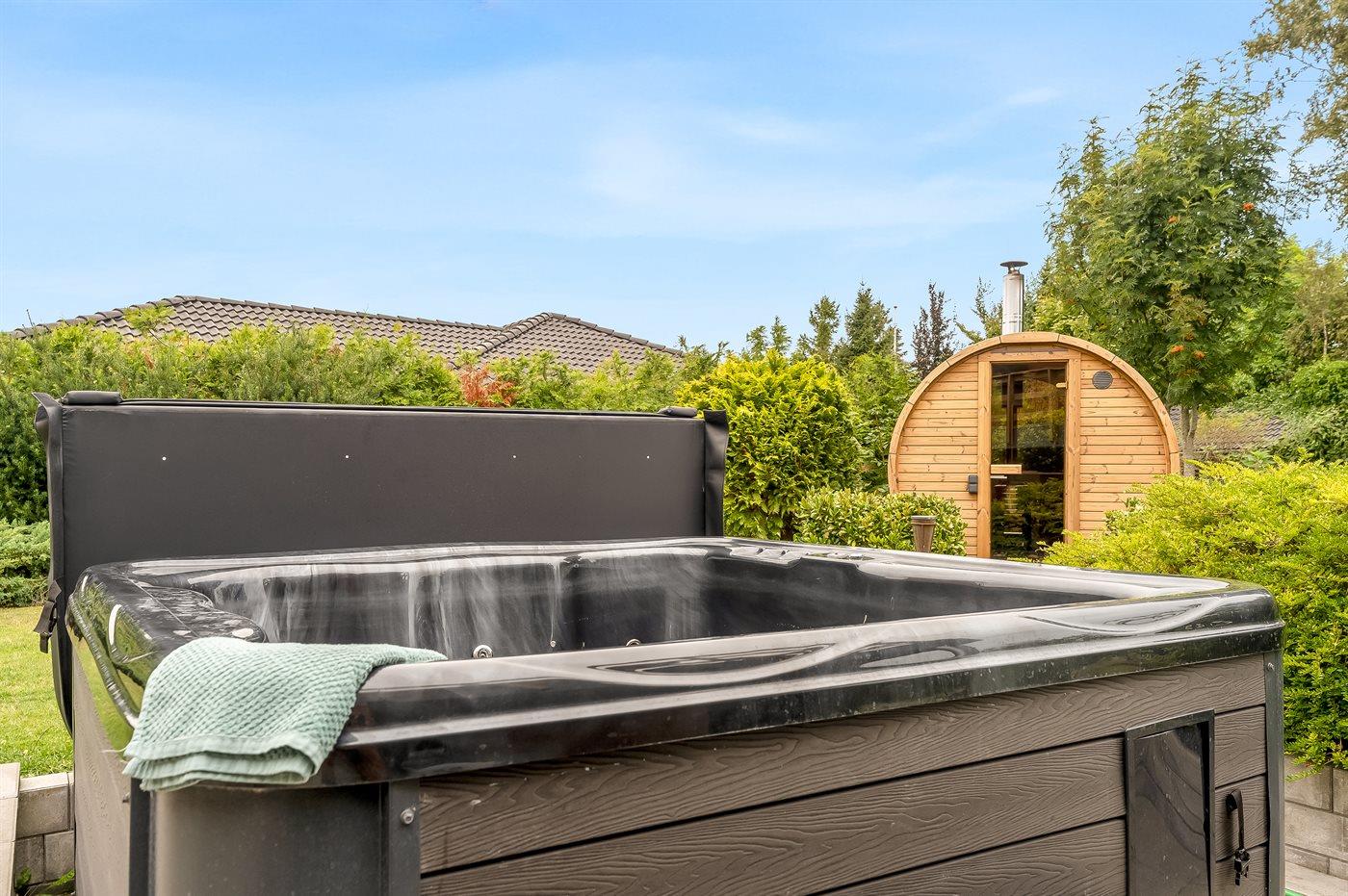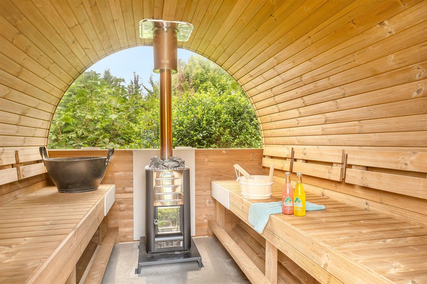 Auf der Terrasse findet man seinen ganz eigenen Wellnessbereich in Form eines schönen Außenwhirlpools für 8 Personen sowie eine Außensauna. Enspannt euch im warmen Wasser des Whirlpools - während ihr den beruhigenden Geräuschen der Natur lauscht. Anschließend kann man das Wellnesserlebnis in der Außensauna ausklingen lassen.