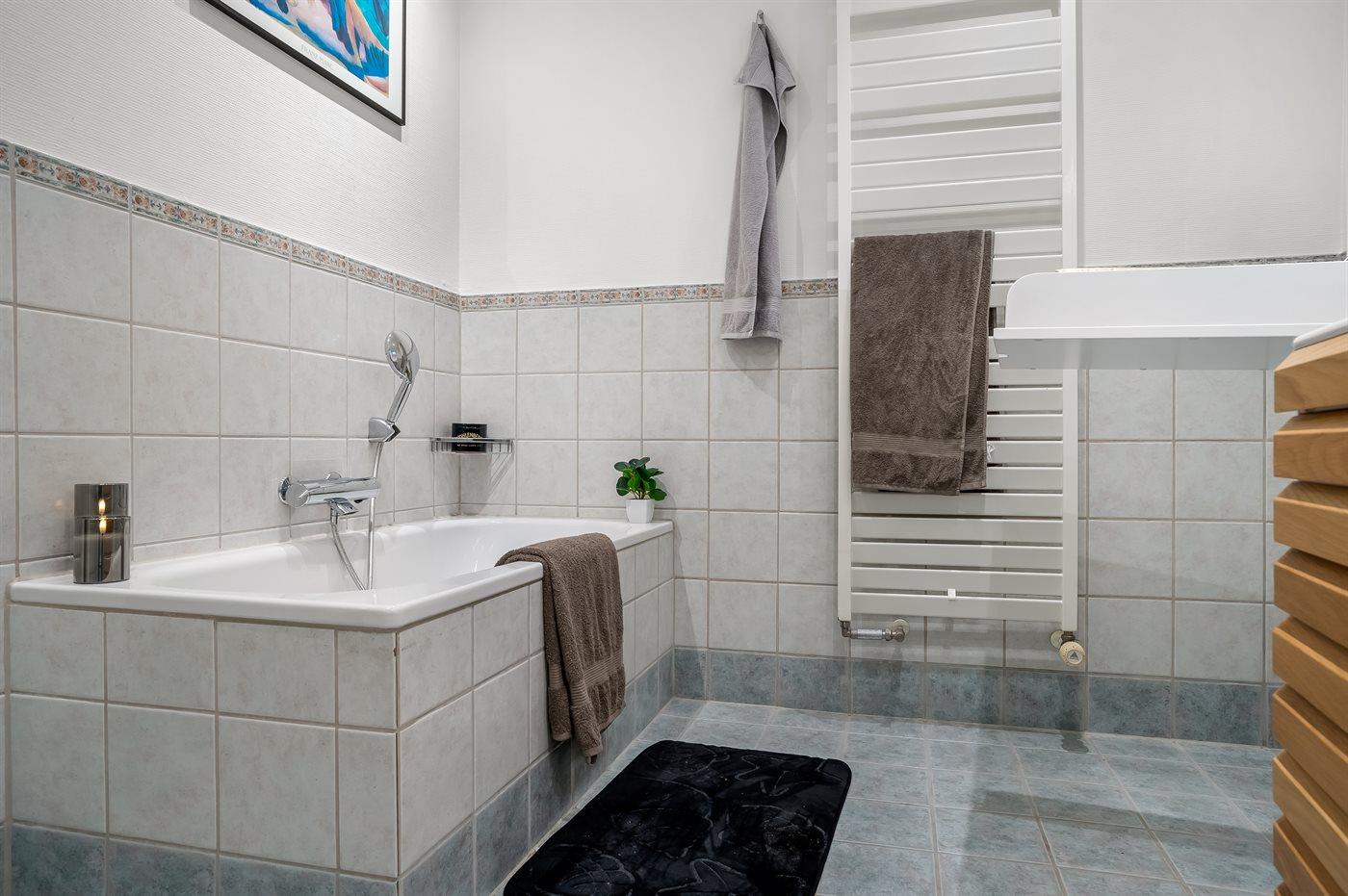 Es gibt 1 Badezimmer mit Fußbodenheizung, Duschnische, Badewanne und Toilette. Außerdem steht eine Gästetoilette zur Verfügung – ebenfalls mit Fußbodenheizung.