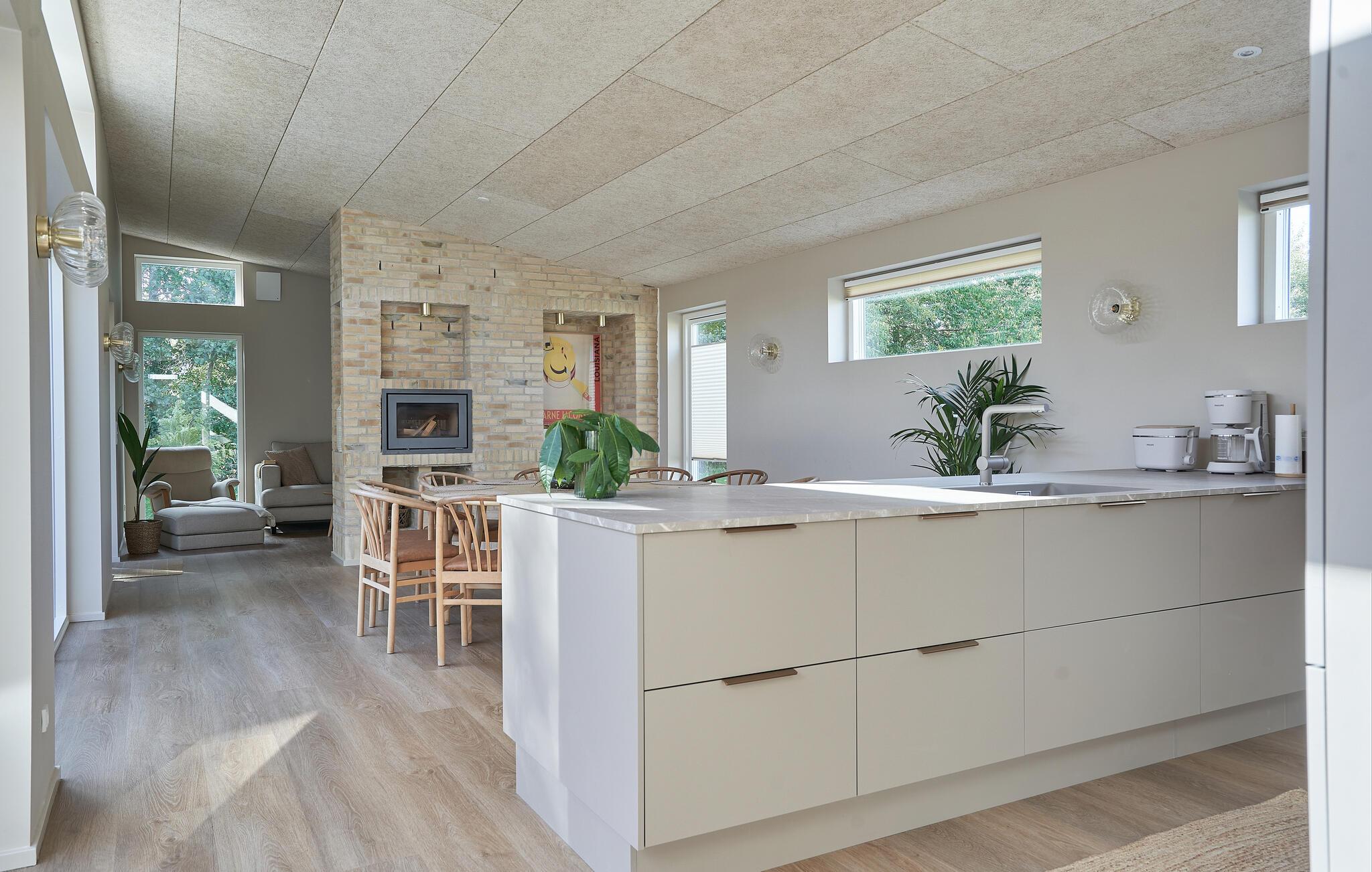 Dieses schöne Haus empfängt Sie mit einem modernen Ambiente, mit warmen Holztönen und stilvollen Details. In der offenen Küche mit großem Esstisch bereiten Sie gemeinsam köstliche Mahlzeiten zu und genießen diese mit Blick in den Garten. Auf der weichen Sofalandschaft lässt es sich wunderbar entspannen, während im Kamin ein Feuer leise knistert. Verbringen Sie hier gesellige Stunden beim Kaffeetrinken, beim gemeinsamem Fernsehen oder einem Spieleabend.