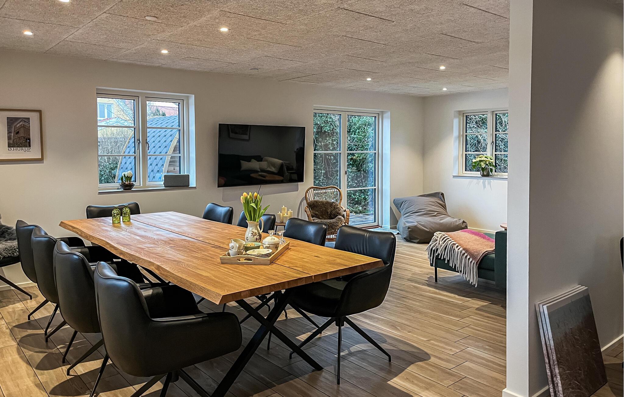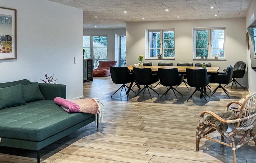 Dieses hochwertig und geschmackvoll eingerichtete sowie barrierefrei gestaltete Ferienhaus bietet Ihnen reichlich Platz, um seine angenehme Atmosphäre mit einer größeren Familie oder einer Gruppe von Freunden zu genießen. Veranstalten Sie fröhliche Kochabende, plaudern Sie bei ausgedehnten Mahlzeiten und machen Sie es sich für einen Spieleabend im einladenden Wohnzimmer gemütlich.
