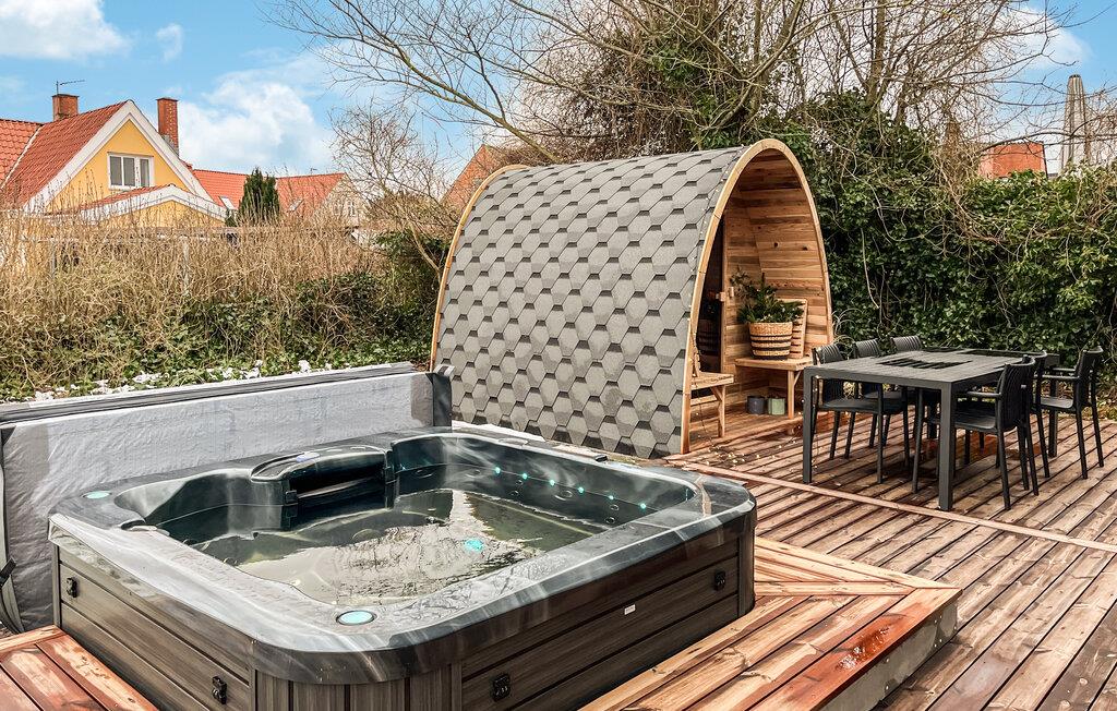Gönnen Sie sich Luxus und Wellness in diesem großzügigen Ferienhaus mit Sauna und Whirlpool in Strandnähe.