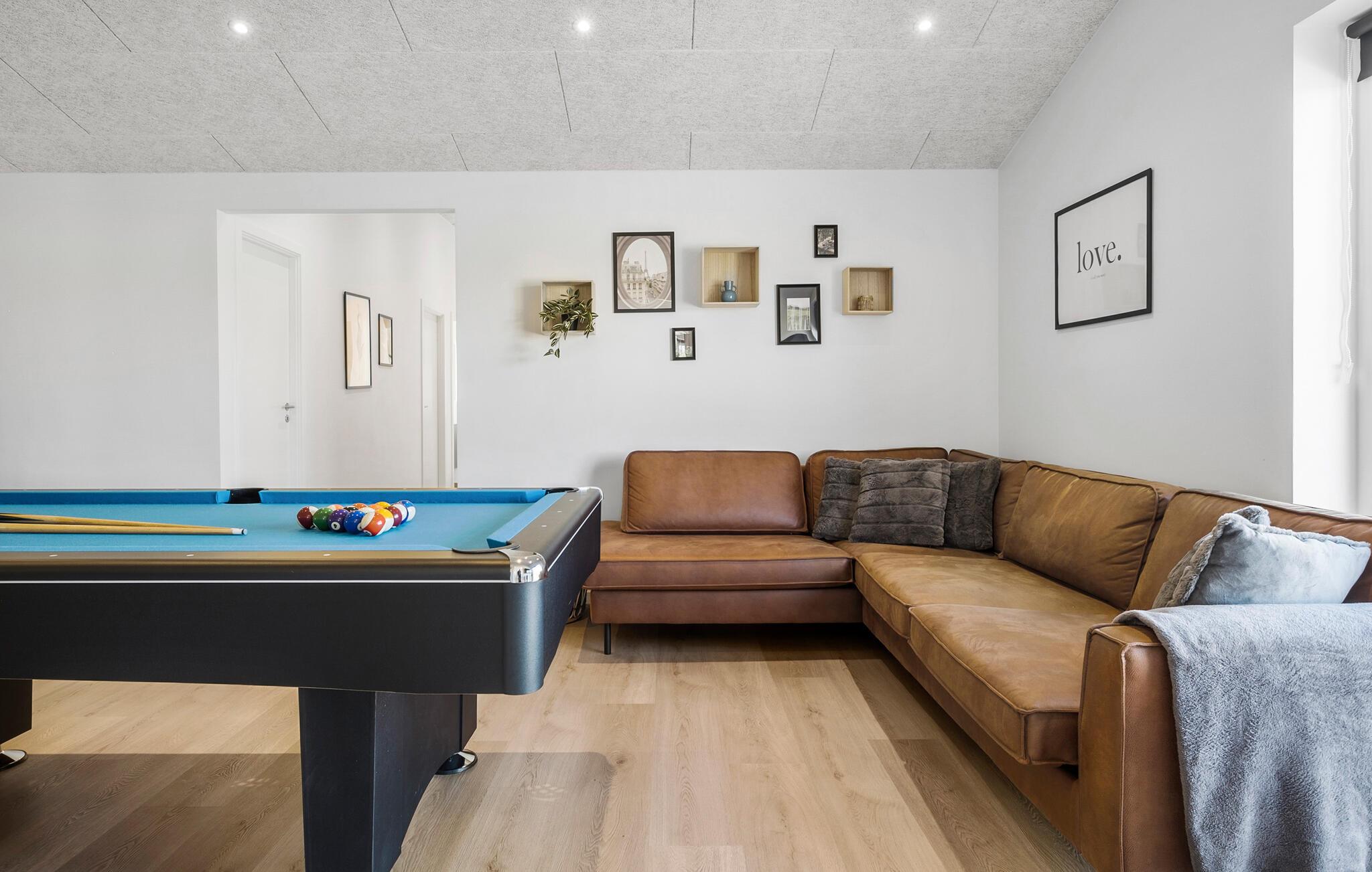 Freuen Sie sich auf dieses luxuriöse Haus mit Schwimmbad und tollem Außen-Wellnessbereich und reisen mit befreundeten Familien hier an und genießen eine wohltuende Auszeit von Ihrem Alltag. Das moderne und große Haus hat allerhand zu bieten und verspricht Ihnen Entspannung und Unterhaltung. Egal ob Sie beim Kochen und Essen in der hellen Essküche verweilen oder sich im Aktivitätsraum zu Billard, Darts oder Tischfußball herausfordern, Sie werden Ihre Zeit hier genießen und sich wohlfühlen. Freuen Sie sich auch auf das Schwimmbad im Haus oder treten durch die Terrassentür hinaus, wo ein Whirlpool und eine Fasssauna Sie zum Relaxen auffordern. Entdecken Sie zudem die große und teilweise überdachte Terrasse, die ideale Umgebung für BBQs während Ihre Kinder die Spielgeräte im Garten erkunden.