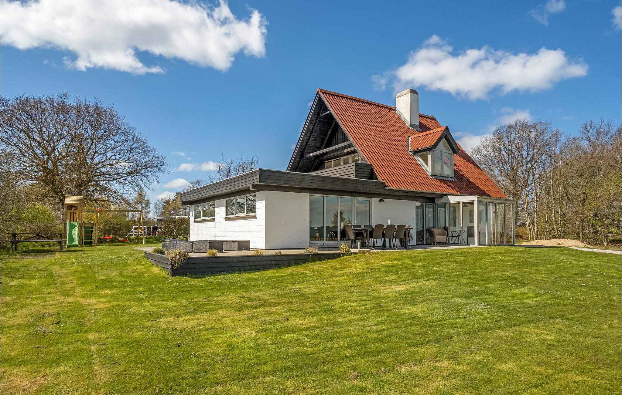 Freuen Sie sich auf diesen Urlaub in Øster Hurup und diesem schönen Haus, das Ihnen alles bietet, was Sie sich wünschen. Kommen Sie mit Ihren Lieben hier an und entdecken die geschmackvollen Räume, die sehr viel für Sie bereithalten. Während Sie im Erdgeschoss einen Teil der Schlafzimmer und die Küche mit Messbereich vorfinden, werden Sie im oberen Stockwerk weitere Schlafzimmer und den Wohnbereich entdecken. Dieser wird durch die große Terrasse erweitert, die Sie zum Verweilen in der Sonne und zum Genuss kühler Getränke einlädt. Bewundern Sie auch die großartige Aussicht auf das Wasser. Den Höhepunkt des Hauses finden Sie aber auch im Erdgeschoss, hier warten Swimmingpool und Sauna auf Sie und versprechen Ihnen viele Stunden Badespaß und Erholung beim Schwitzen.