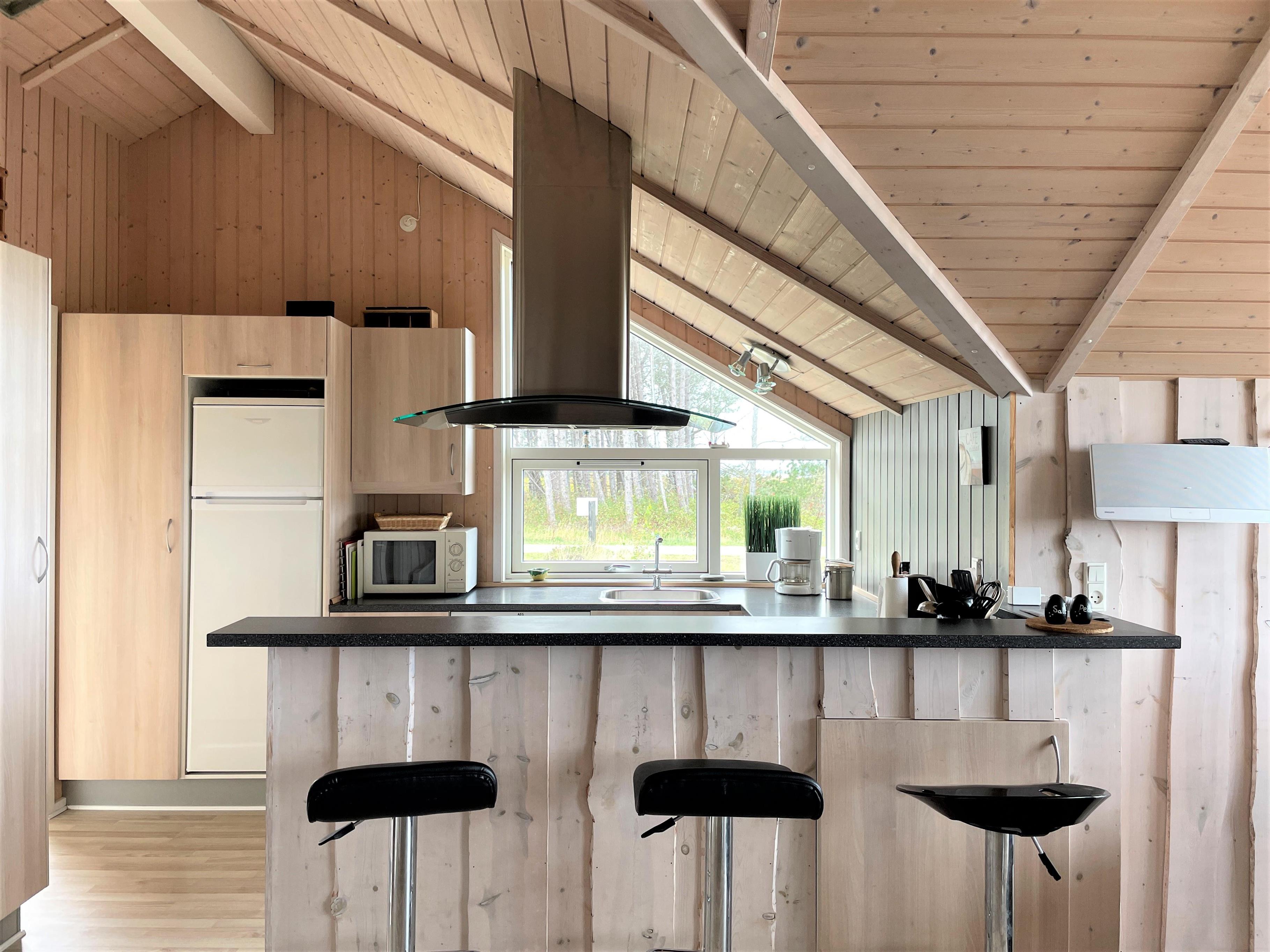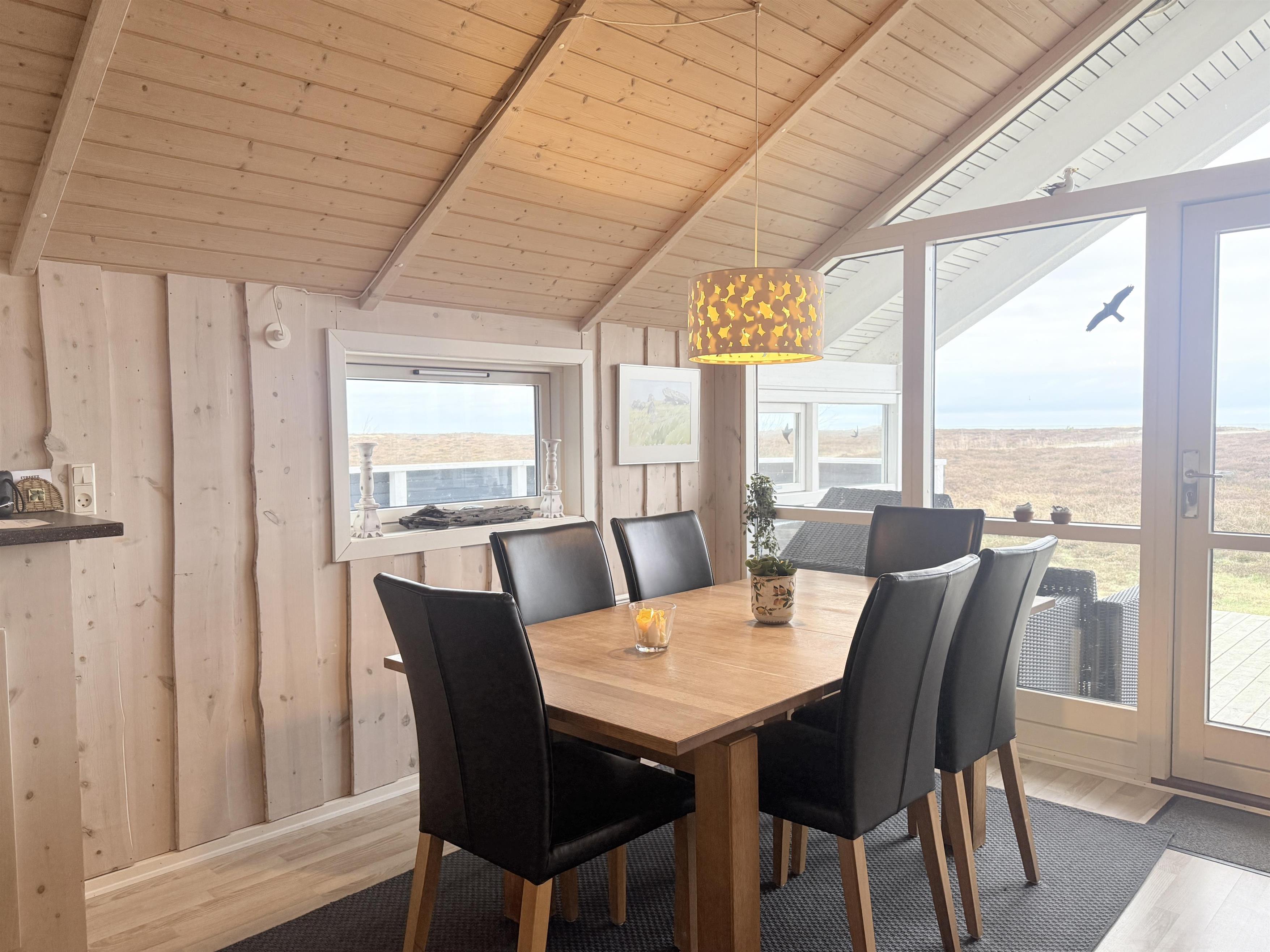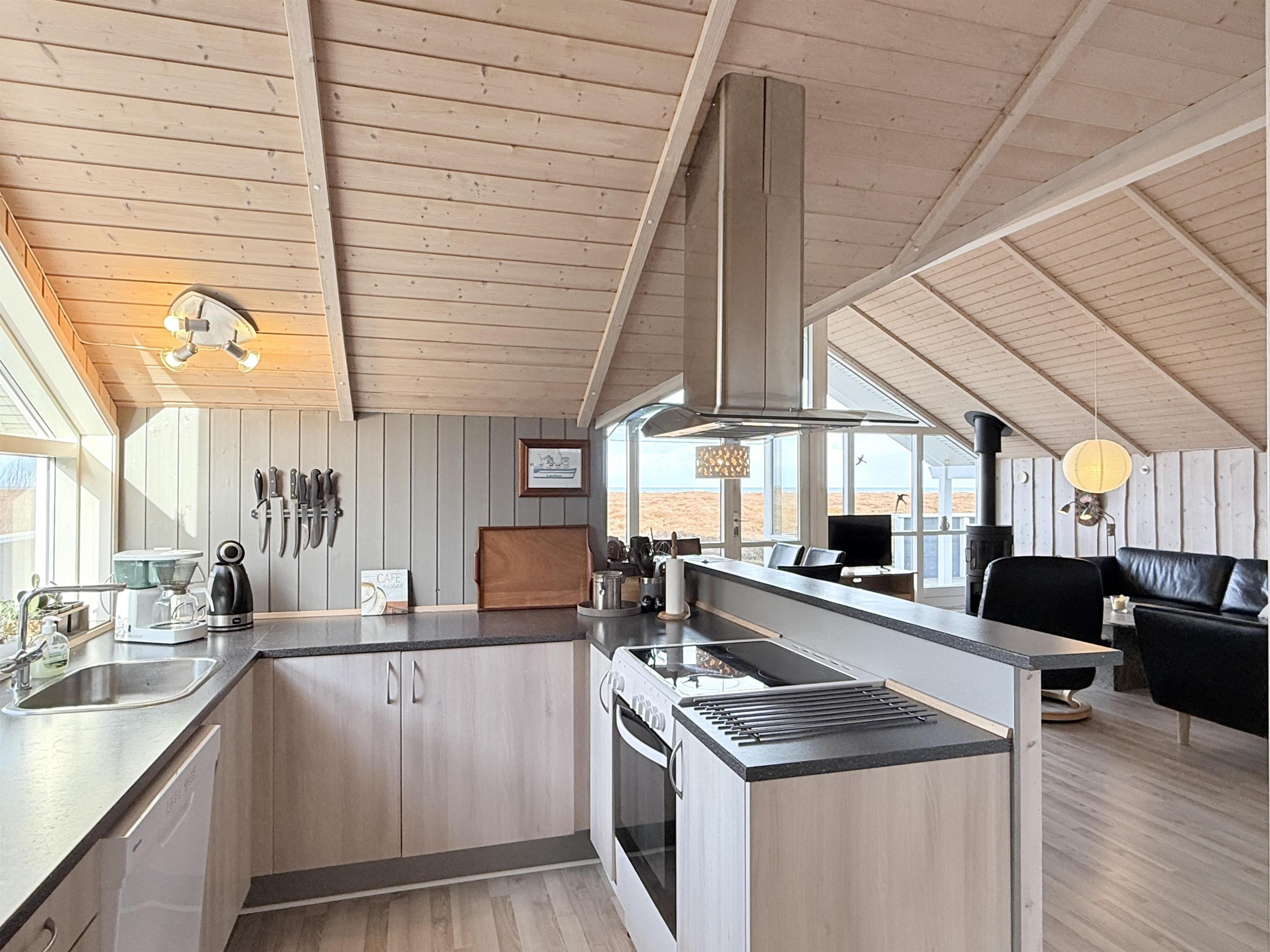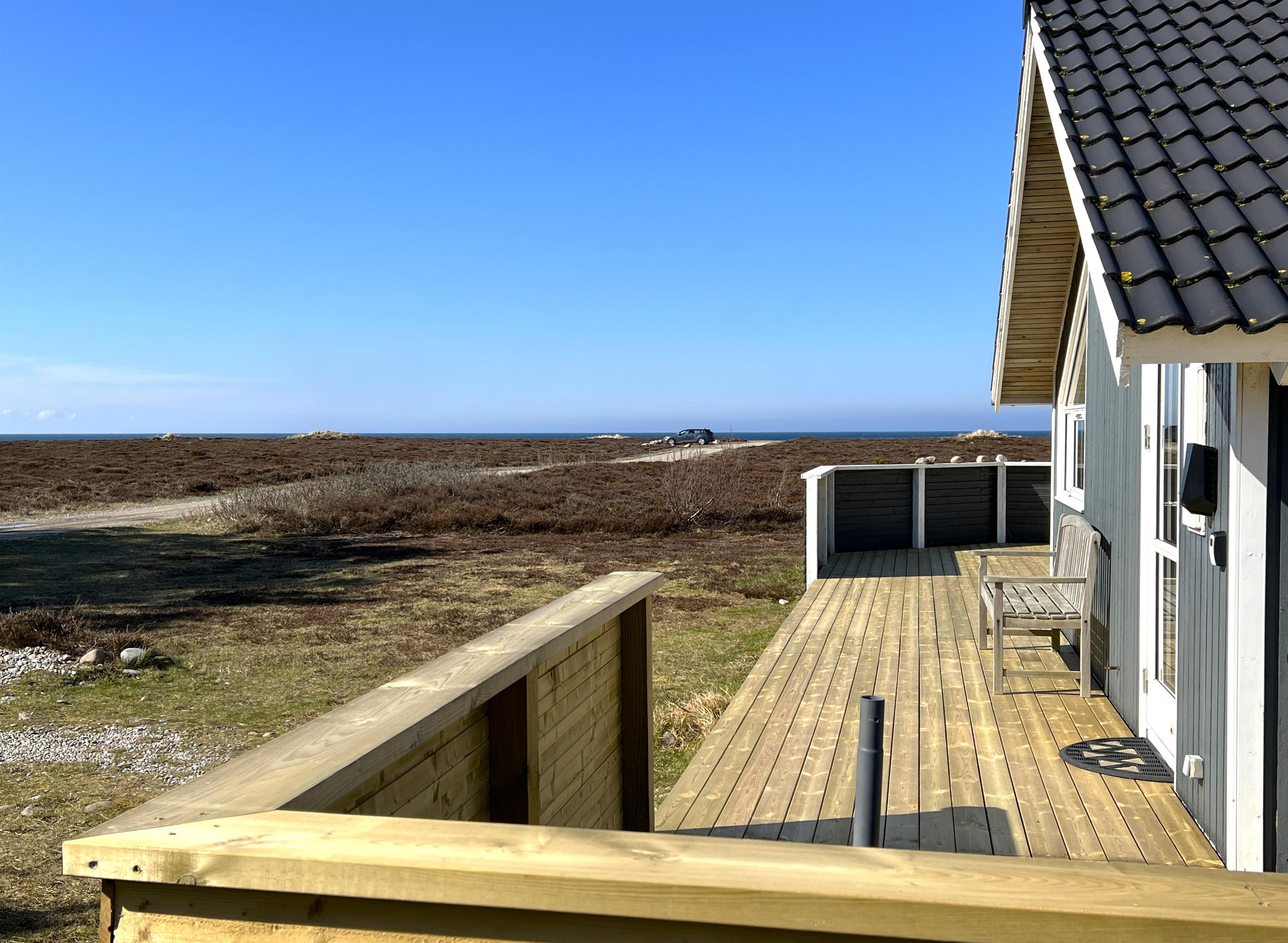 MEERBLICK. Schönes Haus mit schöner Küche in offener Verbindung mit dem Wohnzimmer mit hoher Decke und Kaminofen. Panorama-Fenster Kapitel über Heidevegetation und fantastischer Blick über Kattegat.