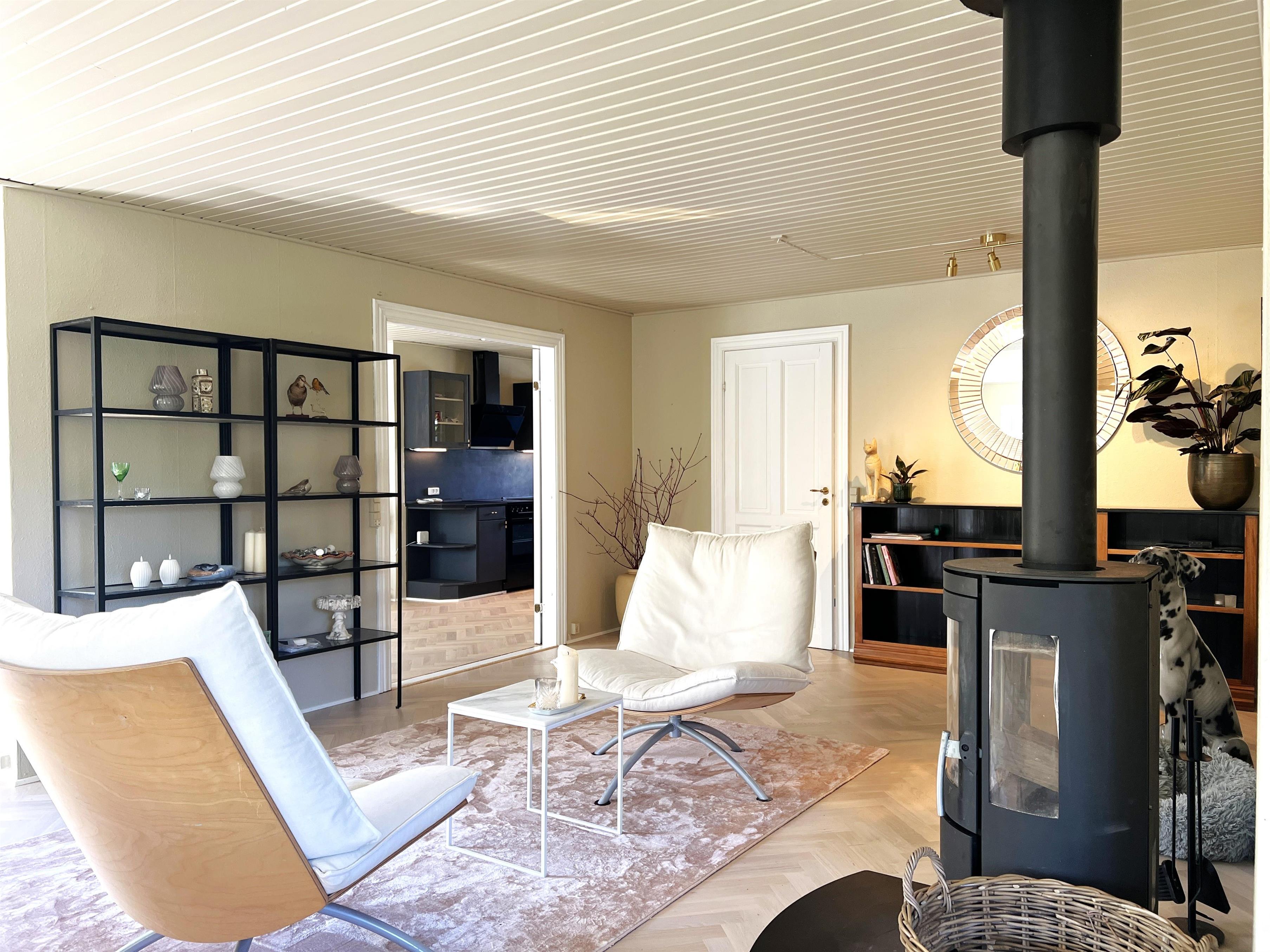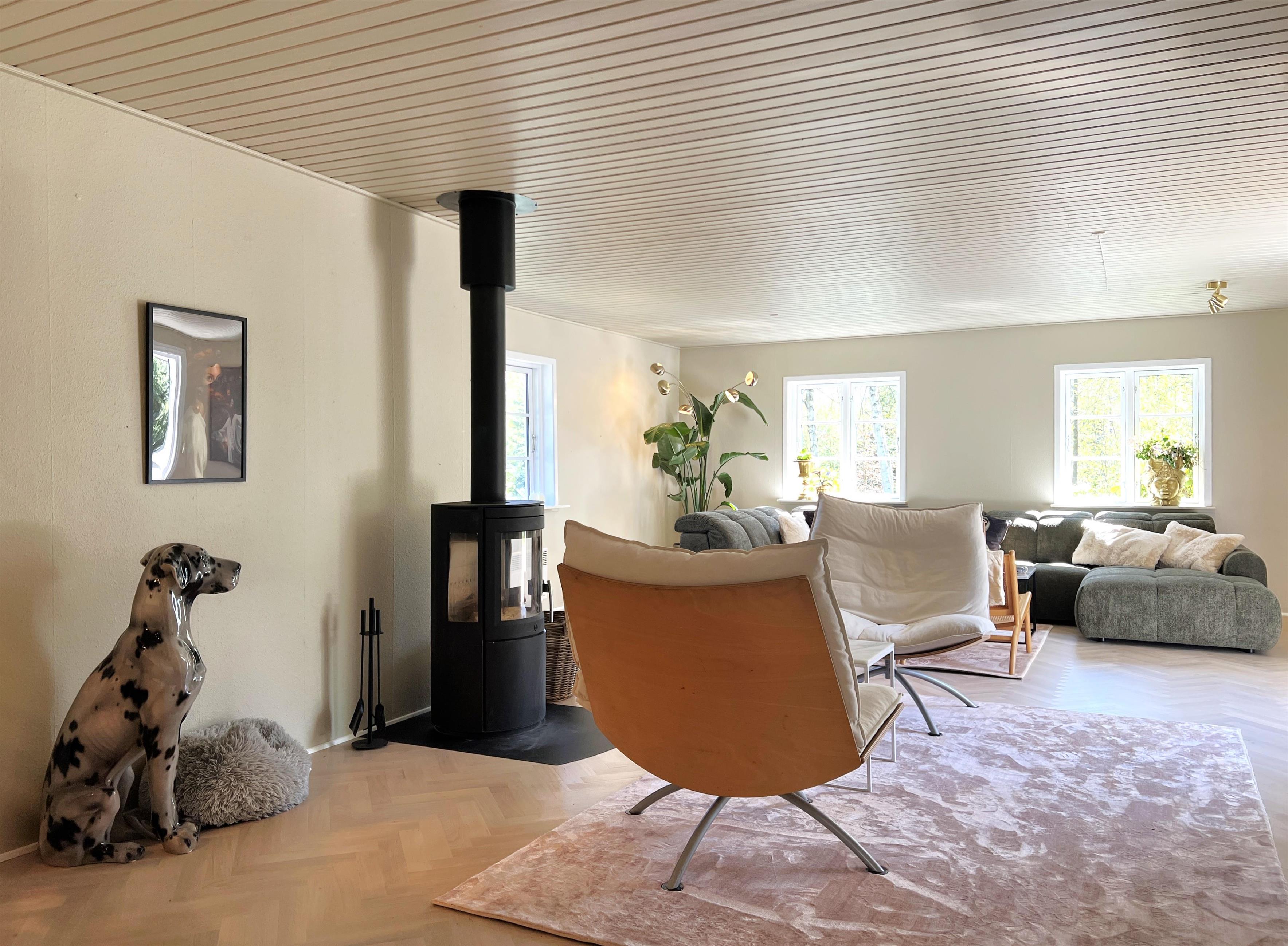 Das Haus verfügt über eine schöne, stilvolle Küche mit Essbereich und einem der beiden Holzöfen des Hauses. Vom Esszimmer aus besteht eine offene Verbindung zum großen Wohnzimmer mit Fernseher(nur deutsche Nachrichtensender über Apple TV) , wo die ganze Familie entspannen kann. Es gibt mehrere gemütliche Sitzgruppen und eine sehr schöne, große Sofagruppe. Das Wohnzimmer besticht durch seinen charmanten Stil und ist für außergewöhnliche Entspannung konzipiert. Vom Wohnzimmer aus gelangt man in den großen, schönen Garten mit Ziersträuchern, Terrasse, bequemen Gartenmöbeln und Grill.