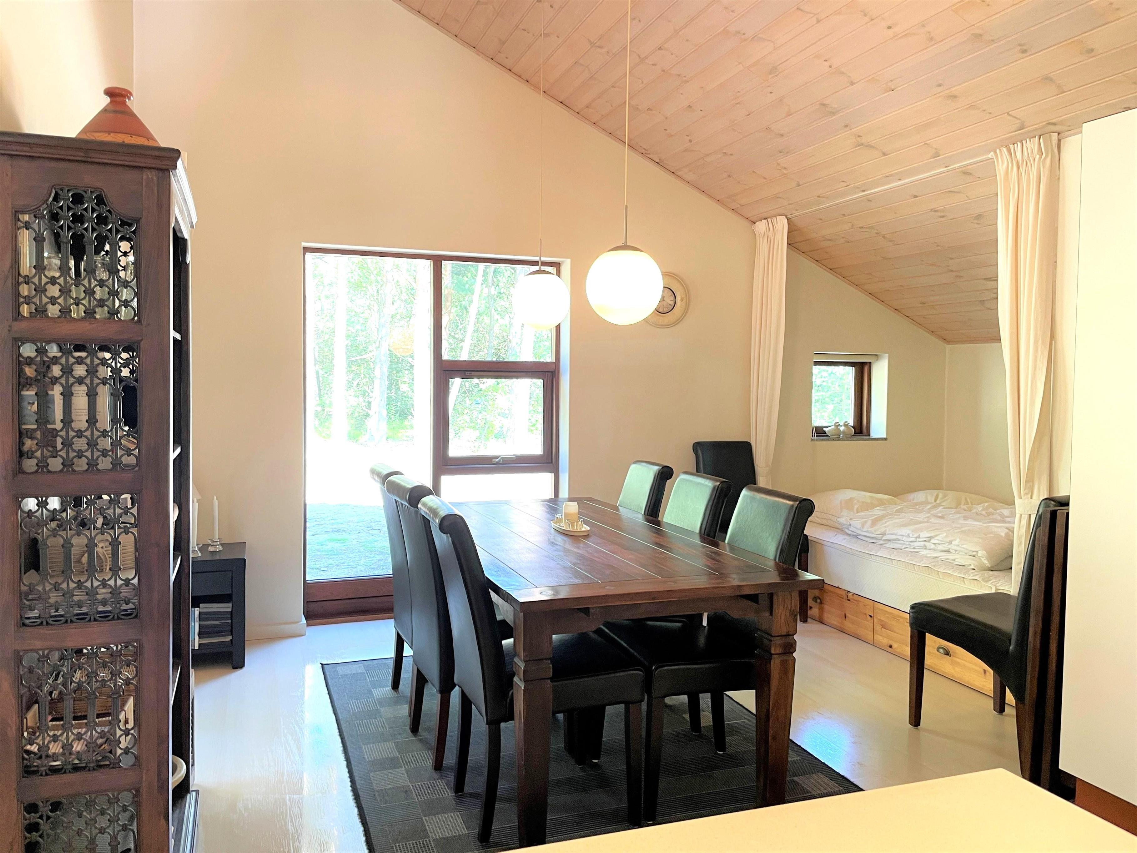 Das Holzsommerhaus liegt am Ende einer Sackgasse auf einem Grundstück mit Heidekraut .Das Haus hat viele Schlafplätze, denn im Wohnzimmer gibt es eine Einbau-Nische und es gibt zwei Schlafplätze auf dem Dachboden sowie drei anderen Schlafzimmer . Ein Schlafzimmer hat Dobbeltbett und die zwei anderen haben Einzelbetten Das Haus hat eine gute Küche. Das Wohnzimmer ist geschmackvoll eingerichtet mit guten Möbeln, deutschen Paraboltv und Kaminofen . Das Badezimmer ist gross und schön. Auf der überdachten Terrasse können Sie richtig den Urlaub geniessen.Abstand zum Strand und Einkaufsmöglichkeiten beträgt ca. 1 Kilometer.