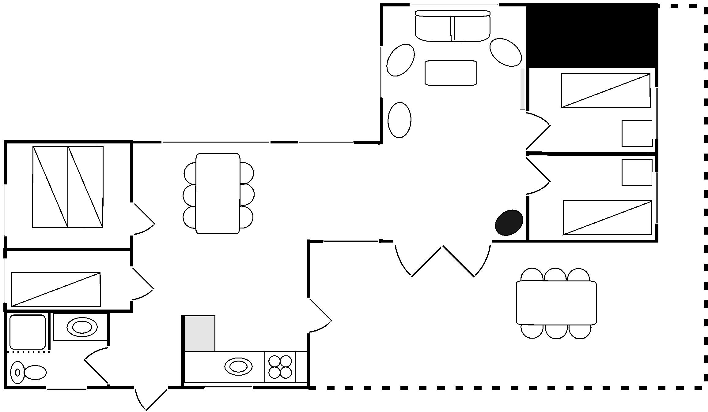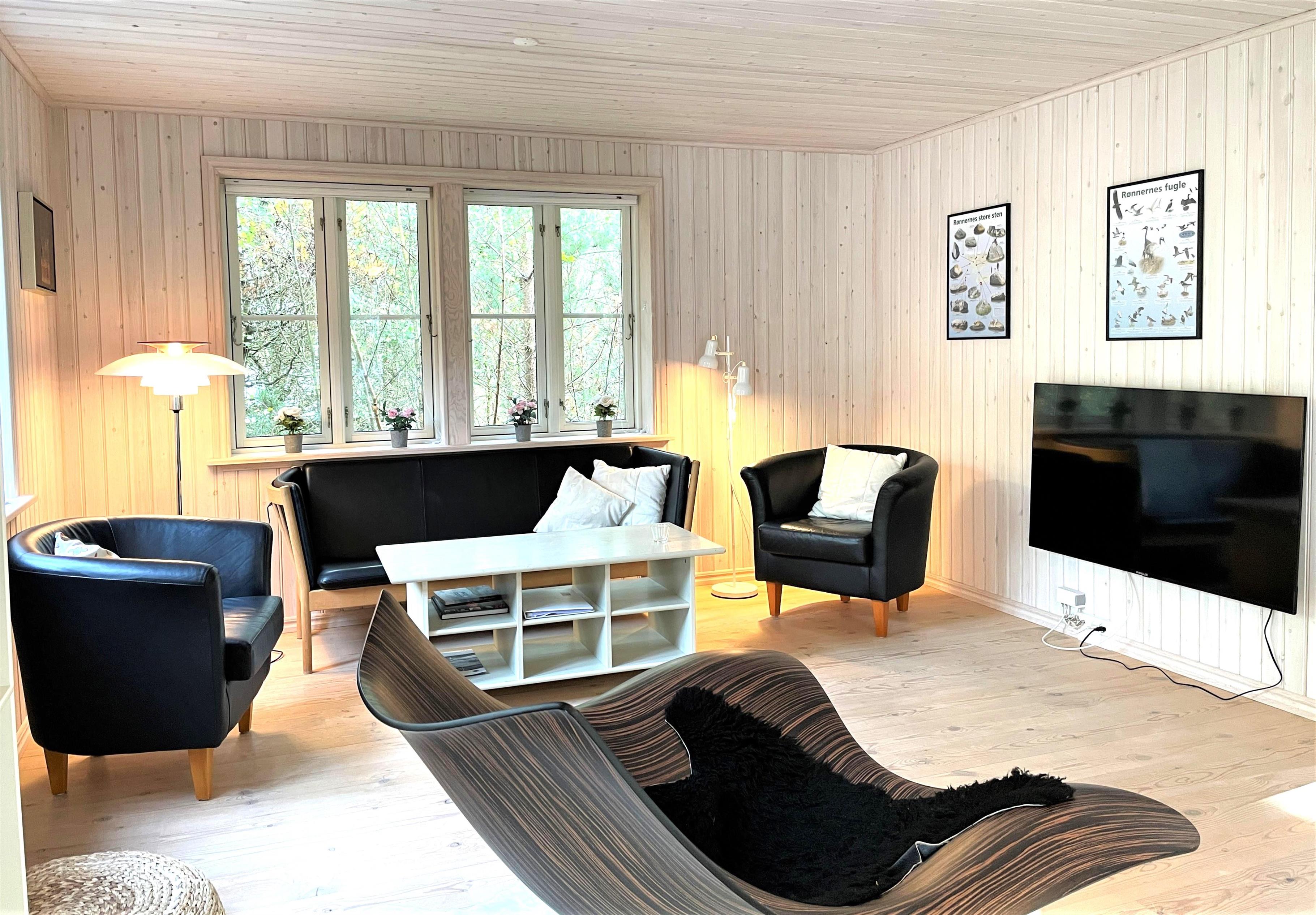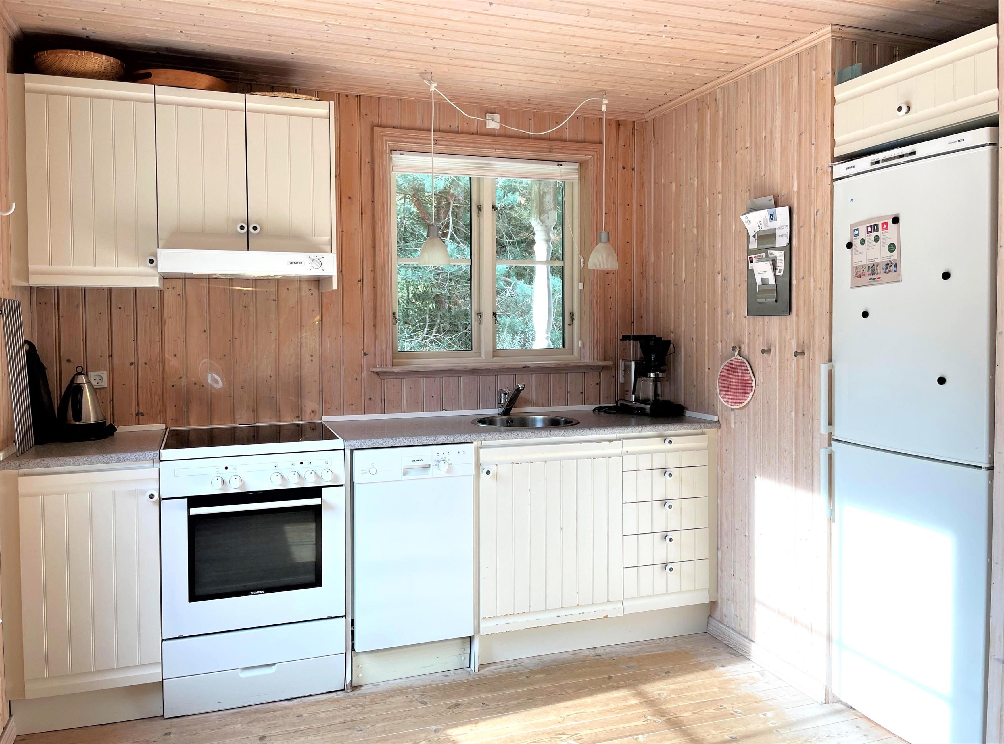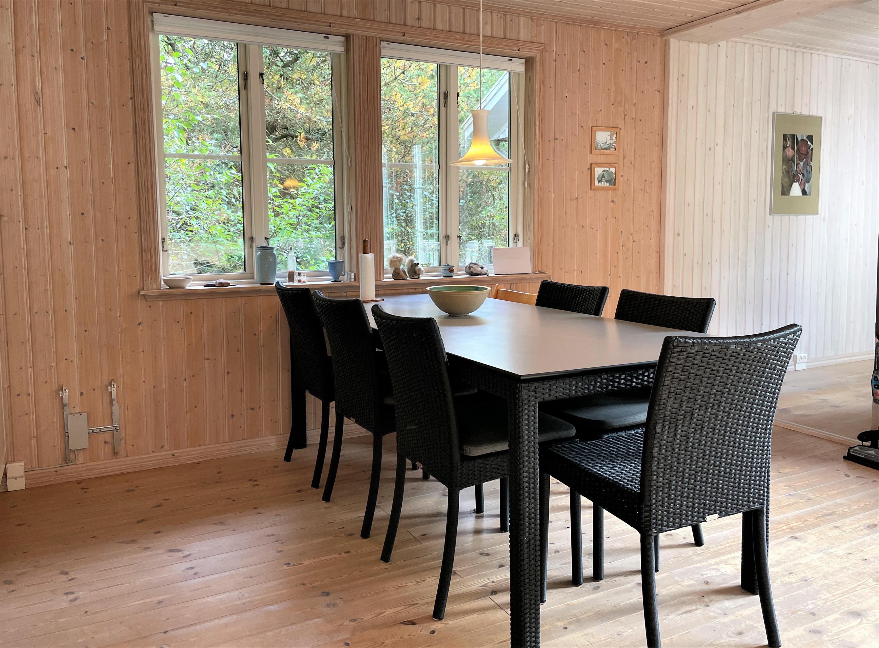 Schönes und gepflegtes Holzhaus, hell und modern. Große Wohnküche mit Zugang zur Terrasse. Gemütliches Wohnzimmer mit Holzofen und von dort Zugang zur großen Holzterrasse. Badezimmer mit Duschecke und Fußbodenheizung. Ein Zimmer mit Doppelbett. Drei Zimmer mit ausziehbaren Schlafsofas.