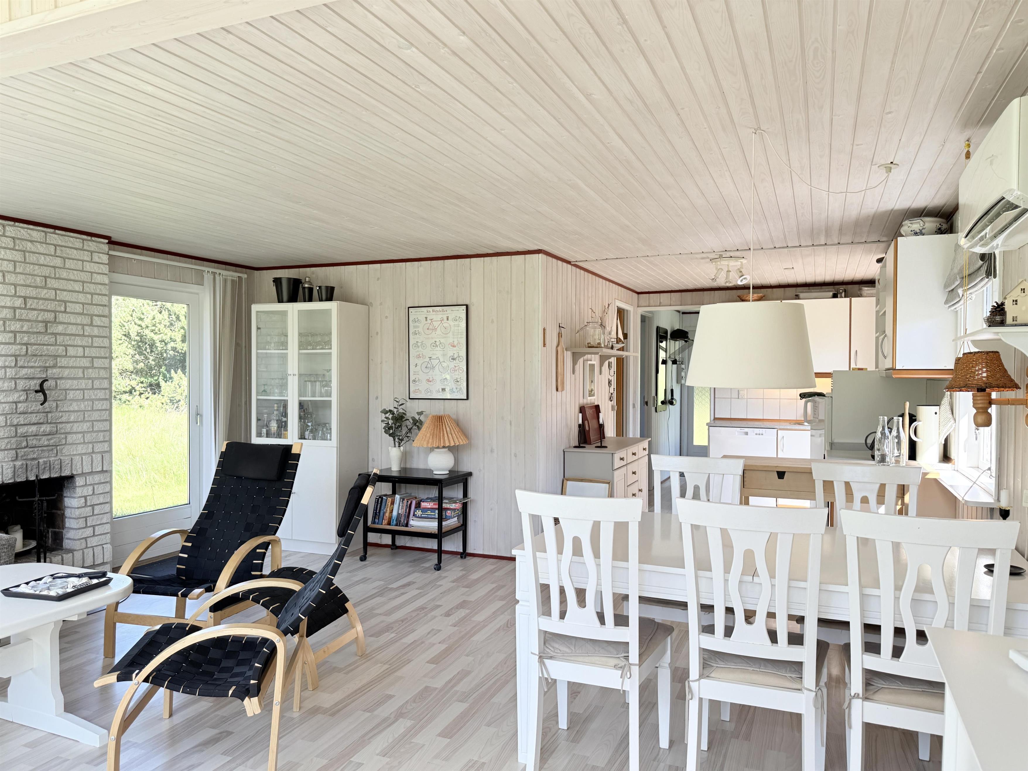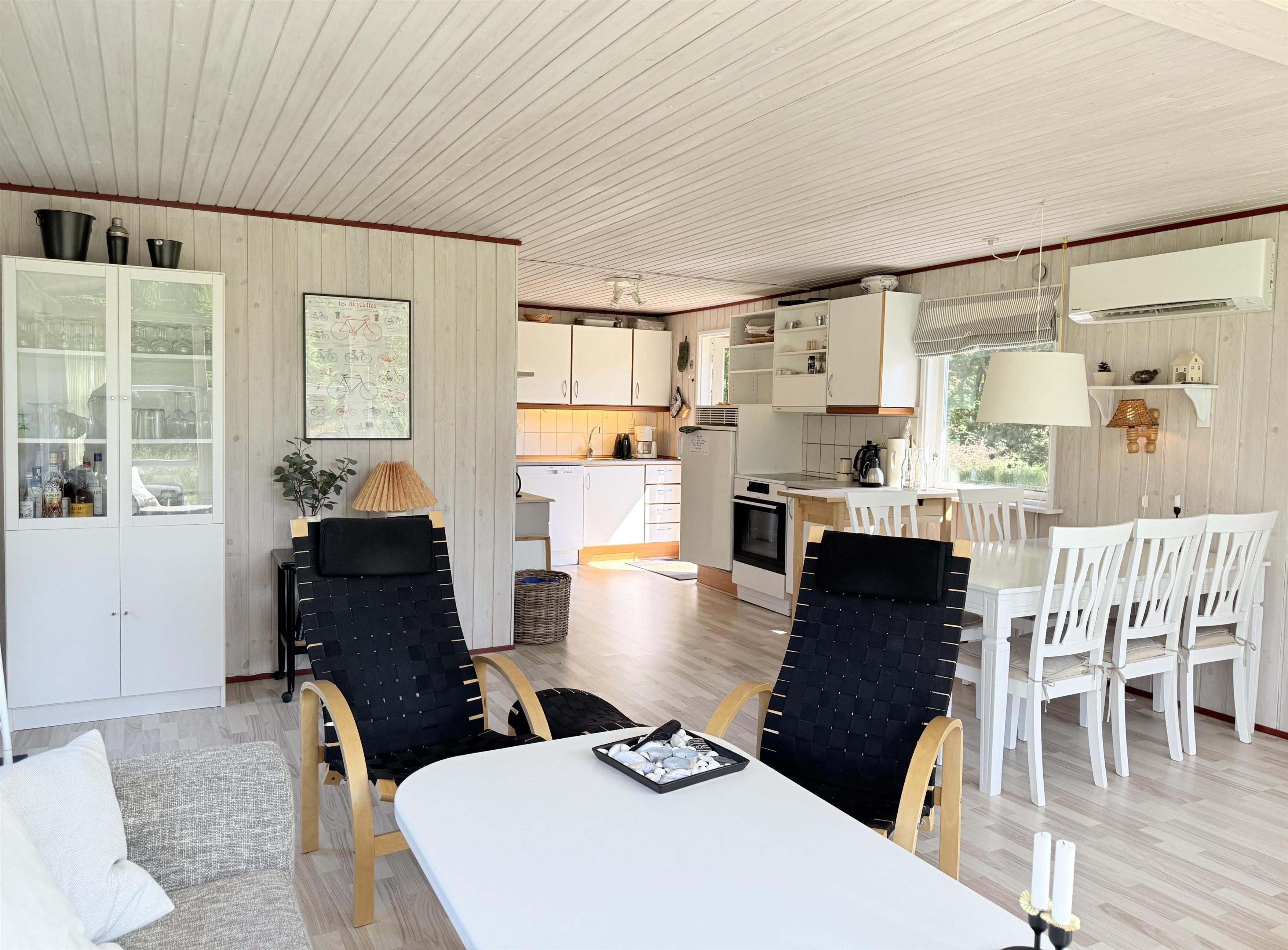 NEU beim Team Læsø. Ein wirklich schönes Sommerhaus in einer wunderschönen natürlichen Umgebung auf einem großen, privaten Grundstück in der Nähe der beeindruckenden weißen Sandstrände von Østerby und der wunderschönen Dünen von Danzigmand. Das Sommerhaus verfügt über eine schöne Wohnküche mit Essbereich und einer Sofaecke mit Kamin, und Sie spüren hier den echten Sommerhausstil. Die großen Fensterflächen sorgen für angenehmes Licht und einen schönen Blick auf das große, schöne Grundstück. Im Haus gibt es drei Schlafzimmer, eines mit Doppelbett und zwei mit Etagenbetten, sodass im unteren Bereich Platz für zwei Personen ist. Das Haus ist für sechs Personen ausgelegt, es besteht jedoch die Möglichkeit für zwei Zustellbetten. Schönes Badezimmer mit Dusche. Rund um das Haus gibt es mehrere schöne Sonnenplätze und Holzterrassen mit guten Gartenmöbeln. Auch der Hausgrill kann hier genutzt werden. Im Geräteschuppen stehen Spiele und ein zusätzlicher Kühlschrank mit Gefrierfach zur Verfügung. Durch die Lage des Hauses spüren Sie schnell die besondere Ruhe von Læsø und das Gefühl, eins mit der Natur zu sein. Gleichzeitig ist die gemütliche Hafenumgebung von Østerby Havn mit Restaurants, Einkaufsmöglichkeiten, Fischhändlern und Einkaufsmöglichkeiten nicht weit entfernt.