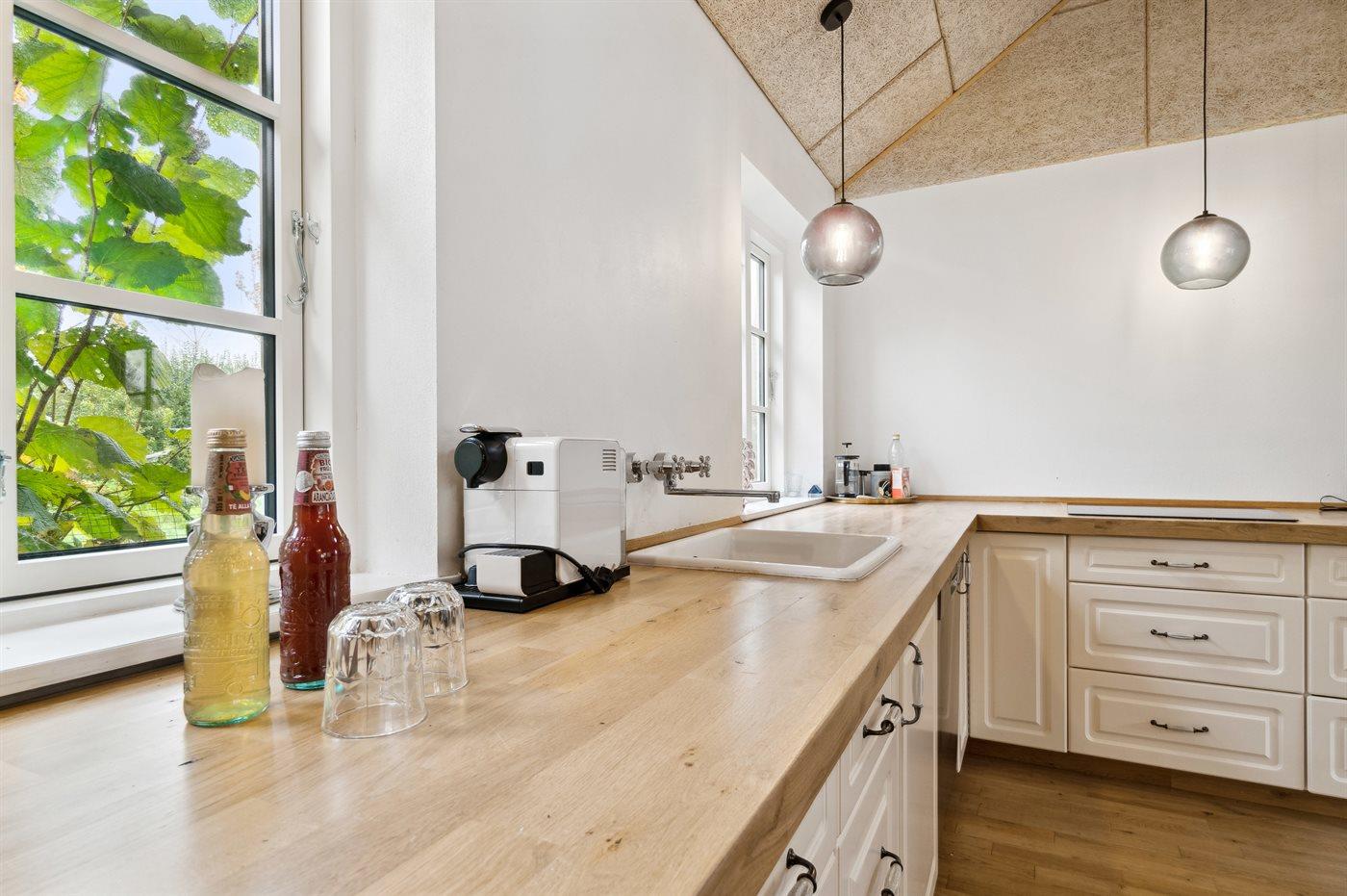 Die Küche ist mit Kühlschrank ausgestattet. Außerdem gibt es 4 Induktions-Kochzonen, Umluftofen, Mikrowelle sowie Geschirrspüler.