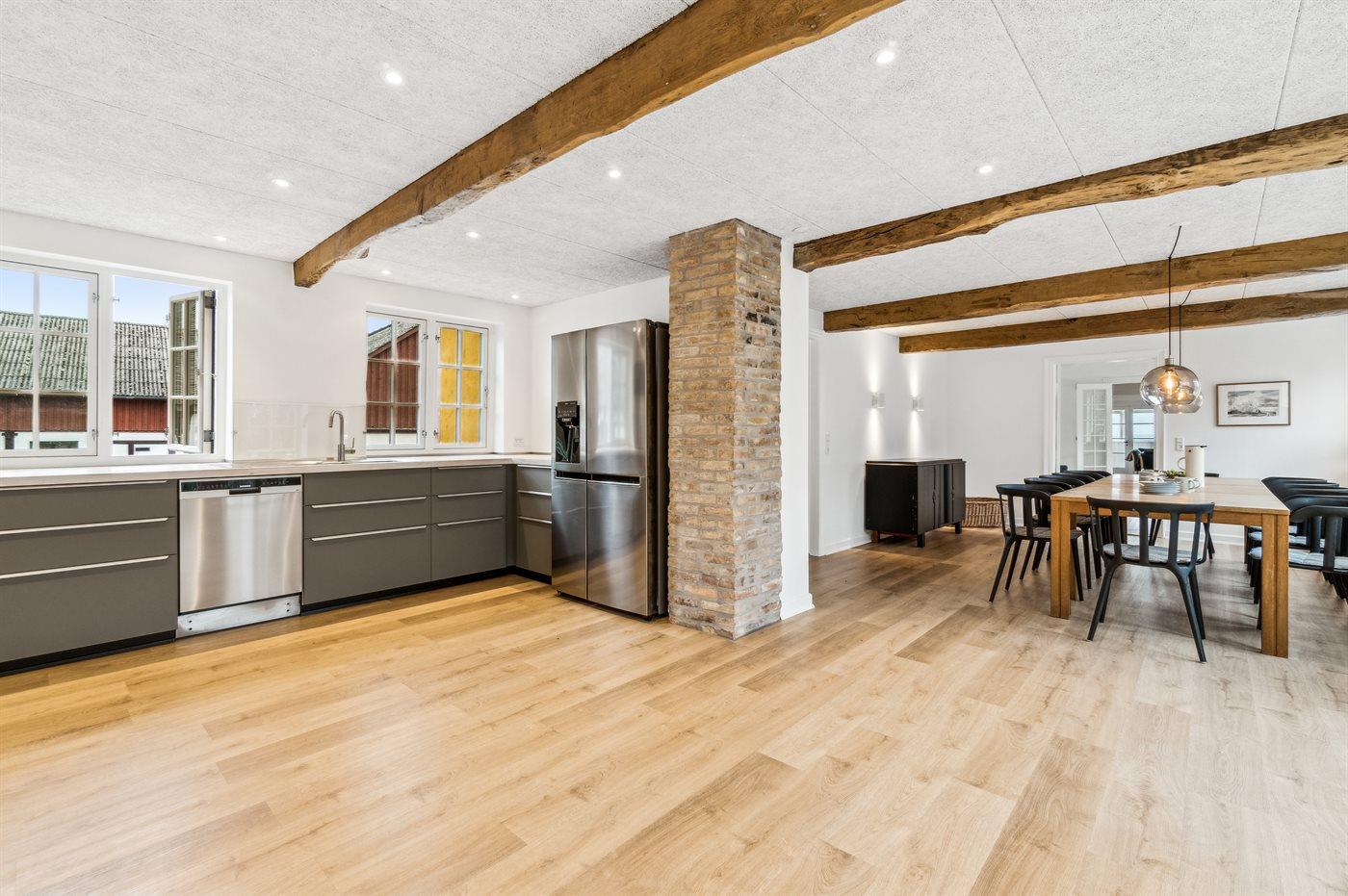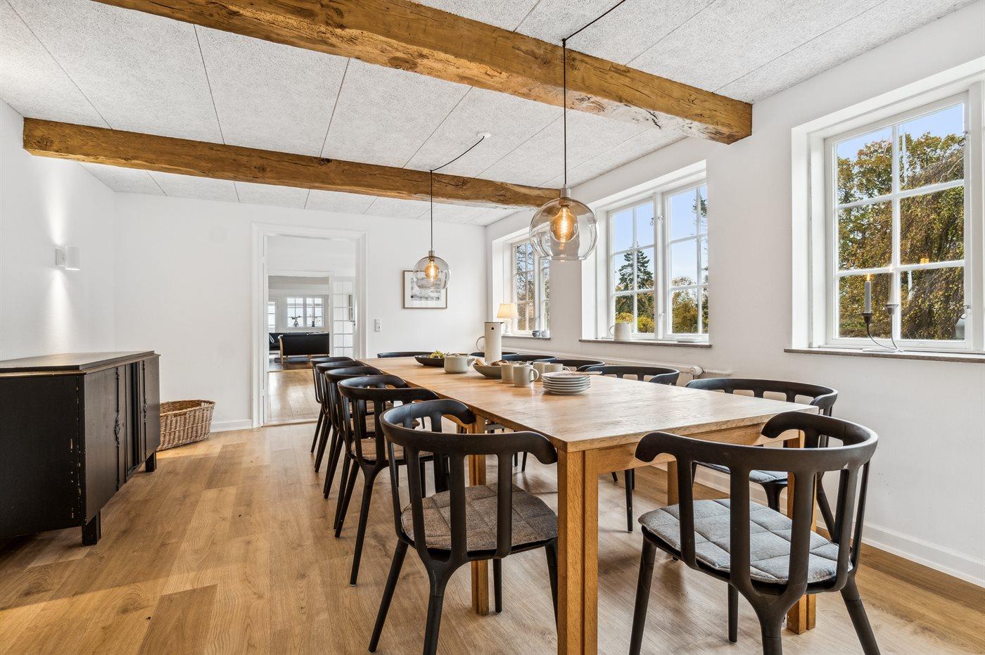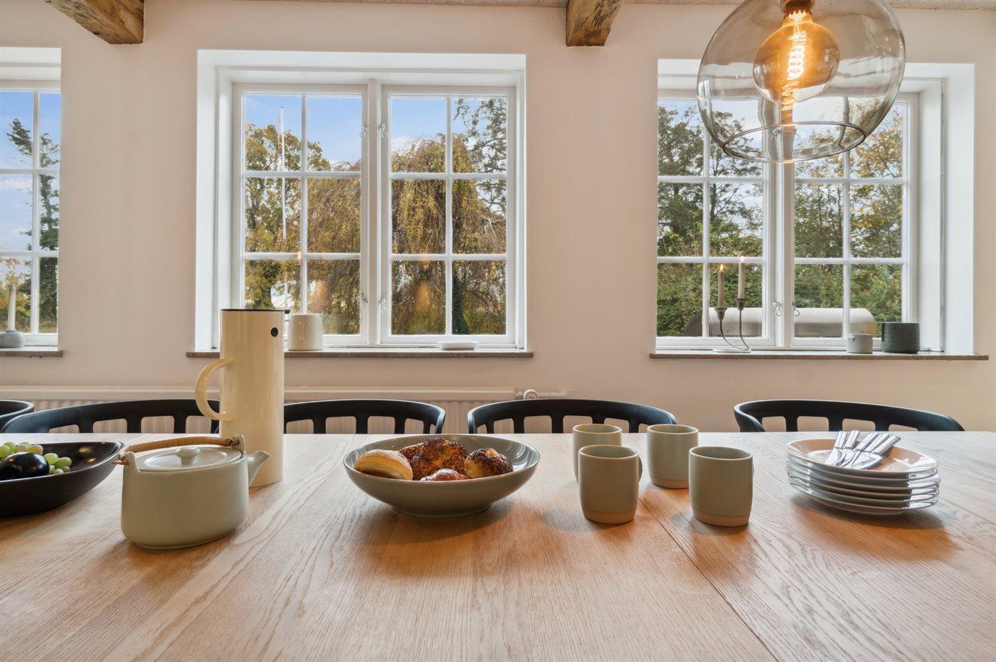 Die neue, große Küche verspricht, dass das Kochen praktisch sein kann und gemeinsam mit der Familie vorbereitet werden kann – es gibt einfach viel Platz. Mit einem größeren Speisezimmer wirkt es fast feierlich am langen, schönen Tisch – nach dem Essen kannst du dich in das gemütliche Wohnzimmer zurückziehen oder vielleicht sogar in den Wintergarten, wo die vielen großen Fenster die besten Ausblicke bieten.