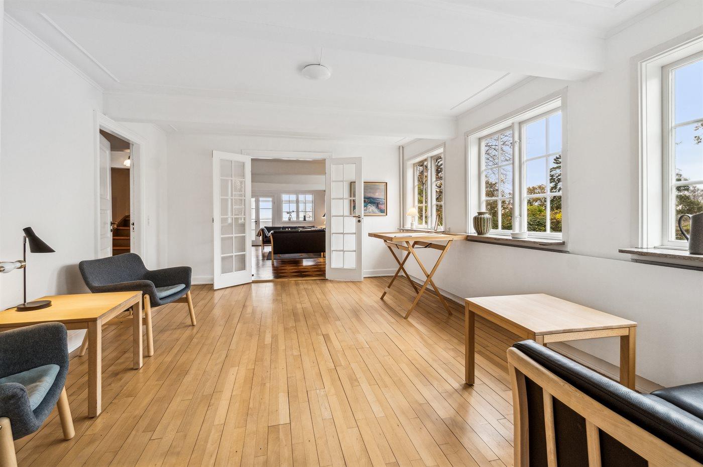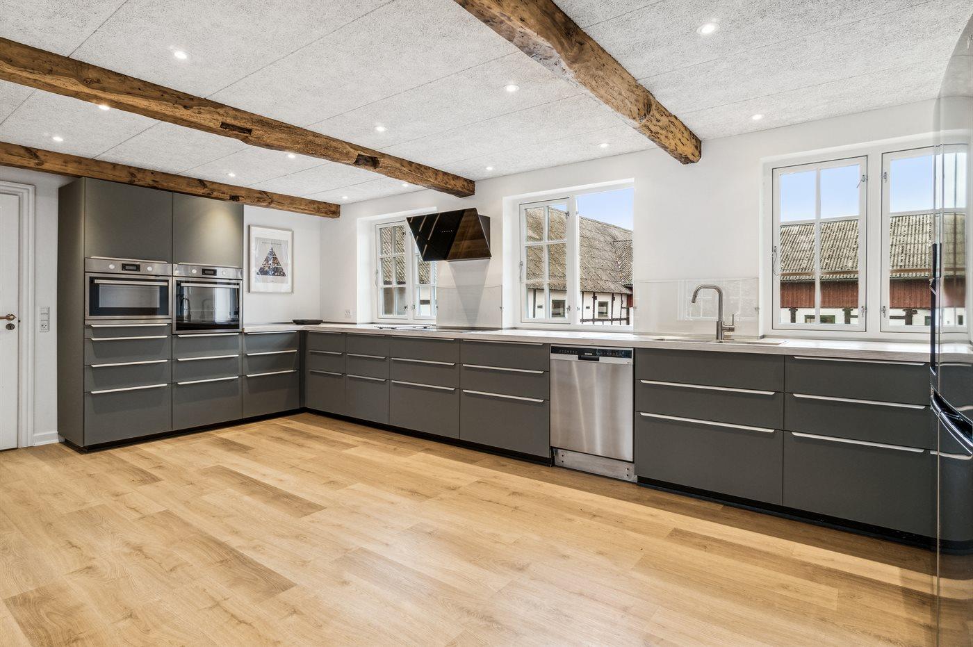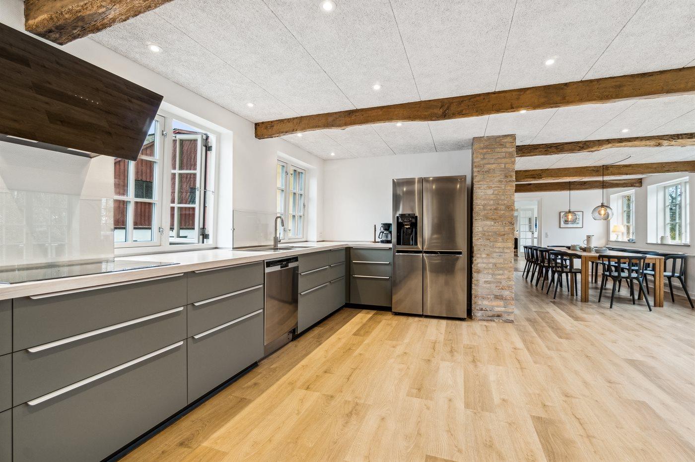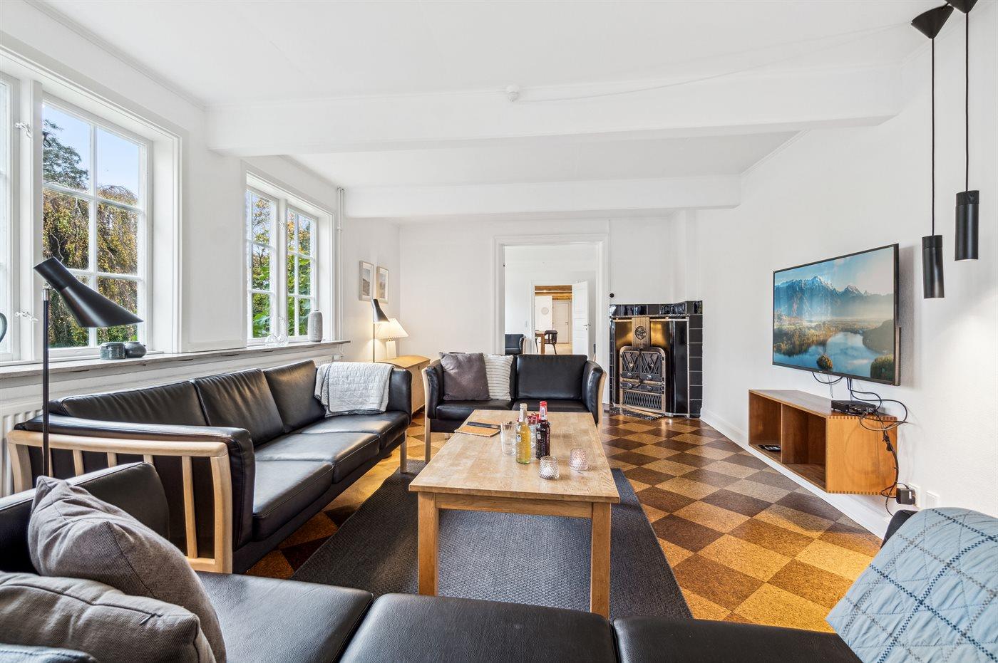 Die neue, große Küche verspricht, dass das Kochen praktisch sein kann und gemeinsam mit der Familie vorbereitet werden kann – es gibt einfach viel Platz. Mit einem größeren Speisezimmer wirkt es fast feierlich am langen, schönen Tisch – nach dem Essen kannst du dich in das gemütliche Wohnzimmer zurückziehen oder vielleicht sogar in den Wintergarten, wo die vielen großen Fenster die besten Ausblicke bieten.