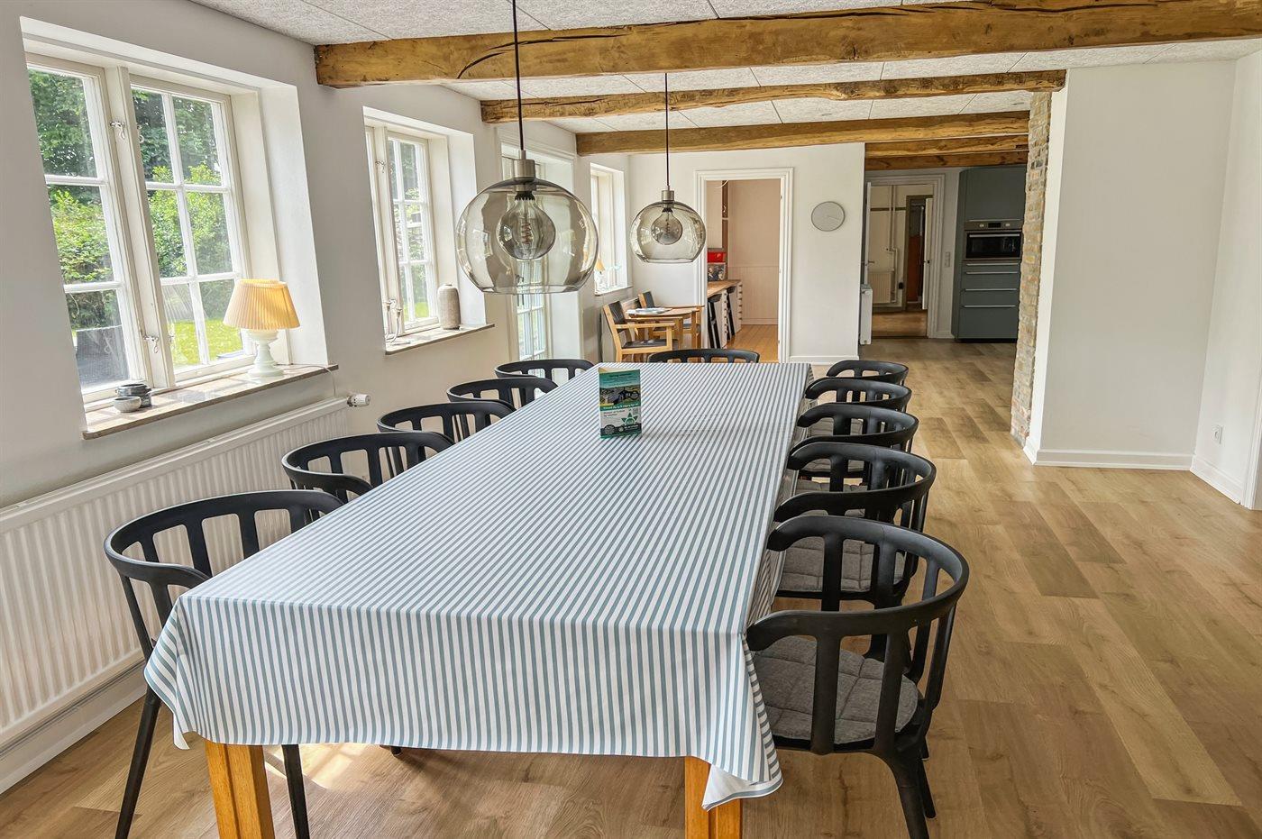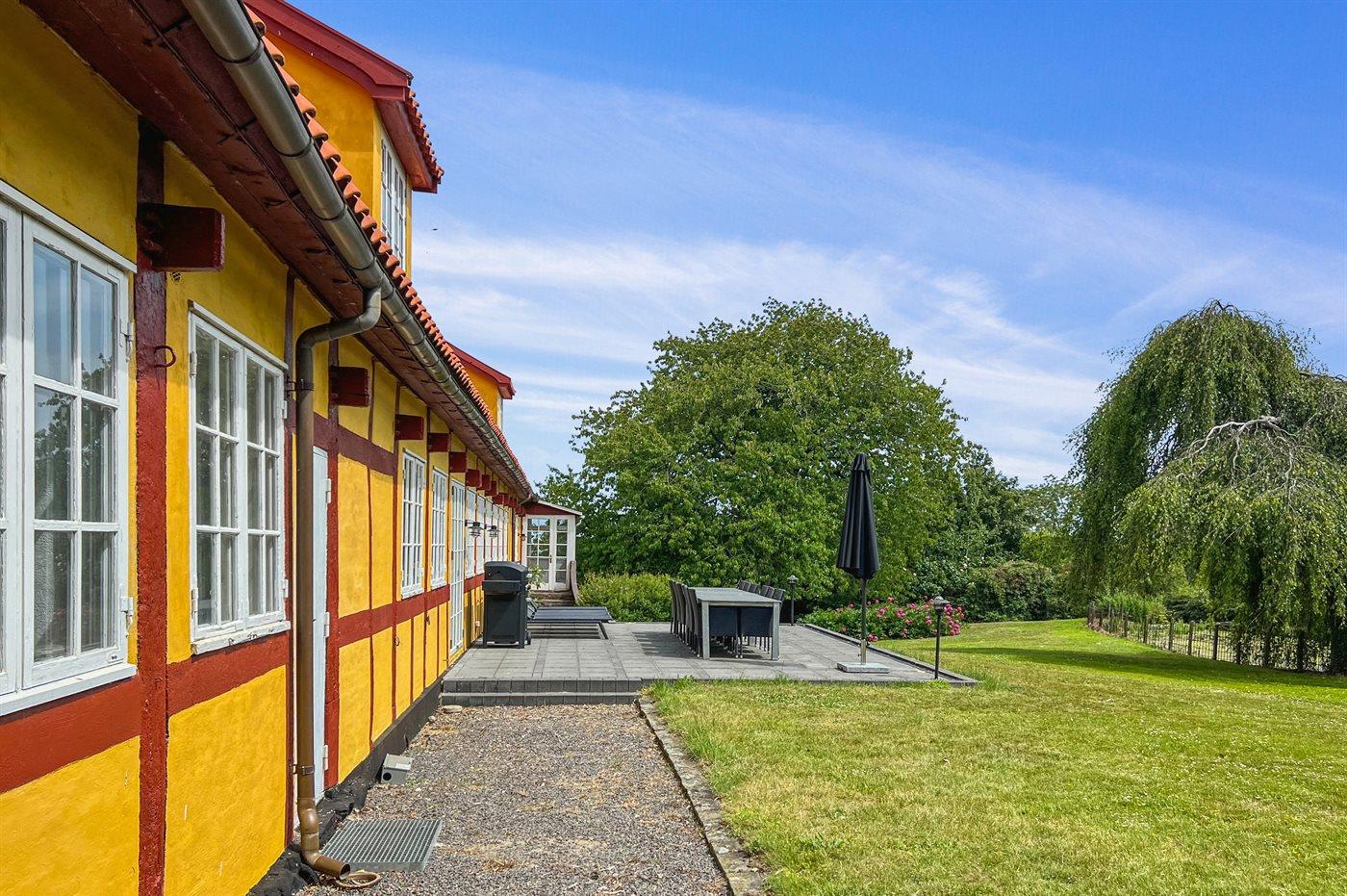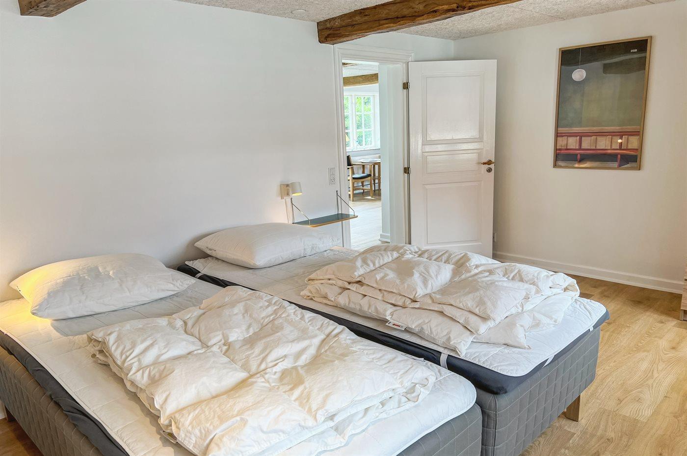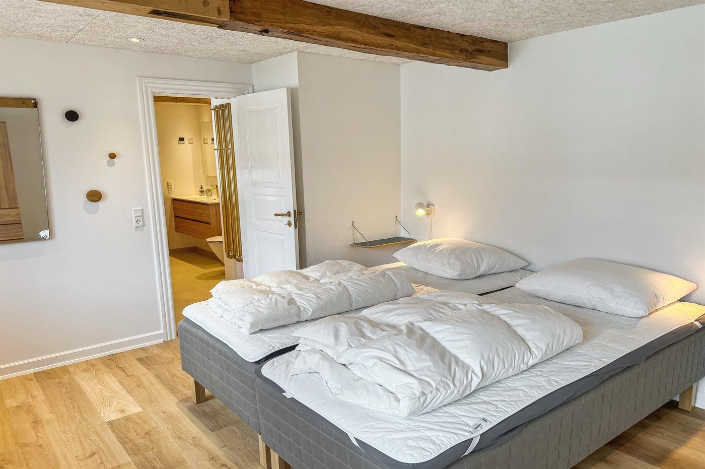Der Hof heißt Ypnastedgård und stammt aus alter Zeit, aber lass dich nicht täuschen – hier erwartet dich ein großes, gut funktionierendes Wohnhaus, das mit großem Respekt für die damalige Bauweise und Einrichtung renoviert wurde. Das Haus ist zweigeschossig, wobei sich die meisten Schlafzimmer im Obergeschoss befinden. Wenn die große Familie oder gute Freunde gemeinsam in den Urlaub fahren, ist dieses Haus mit seiner Umgebung wirklich verlockend, weil alles so ordentlich ist.