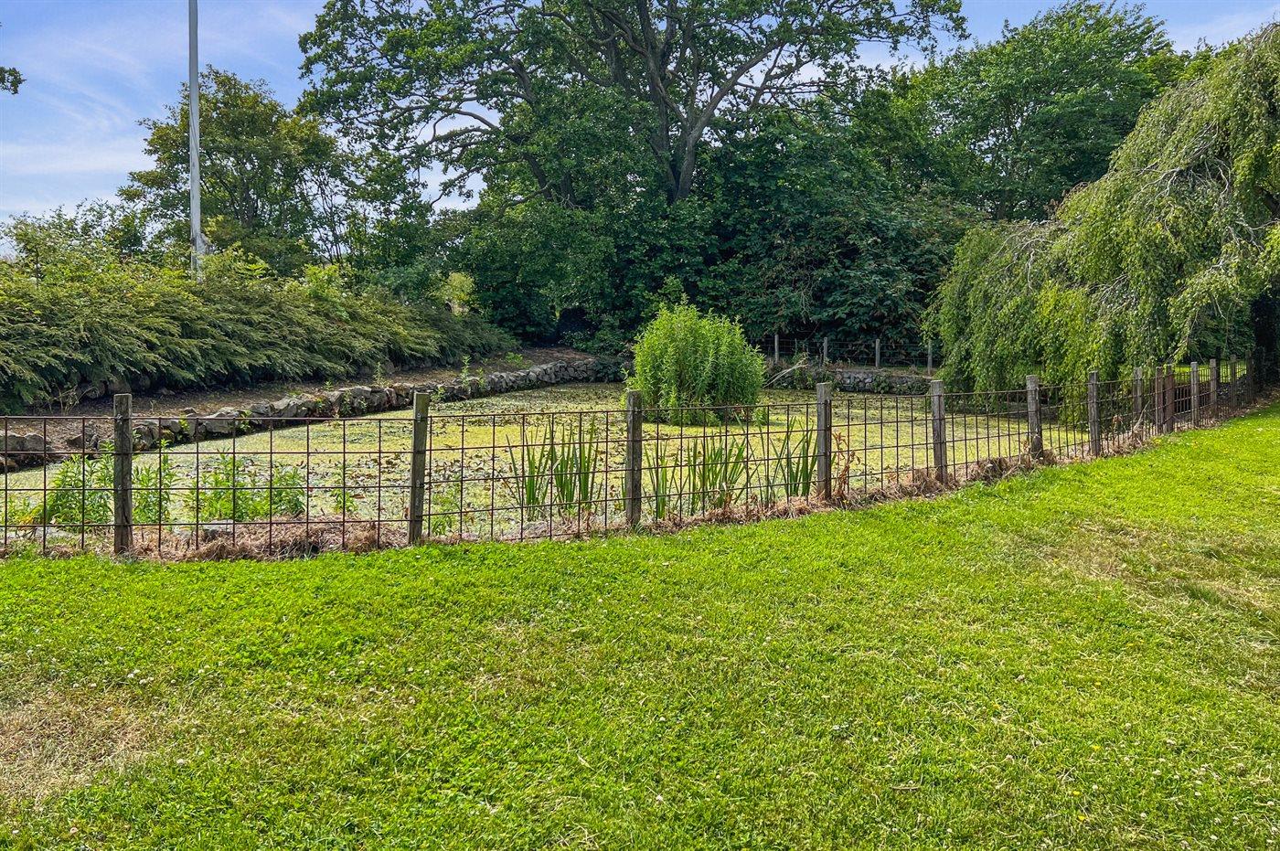 Bei gutem Wetter kannst du die schöne erhöhte Terrasse nutzen, die einen herrlichen Blick auf den schönen Garten bietet, der alles umrahmt. Der kleine Teich im Garten ist sicher eingezäunt, aber mit etwas Glück kannst du Frösche, kleine Fische und natürlich die Vögel erleben, die sich solch einen Leckerbissen nicht entgehen lassen.