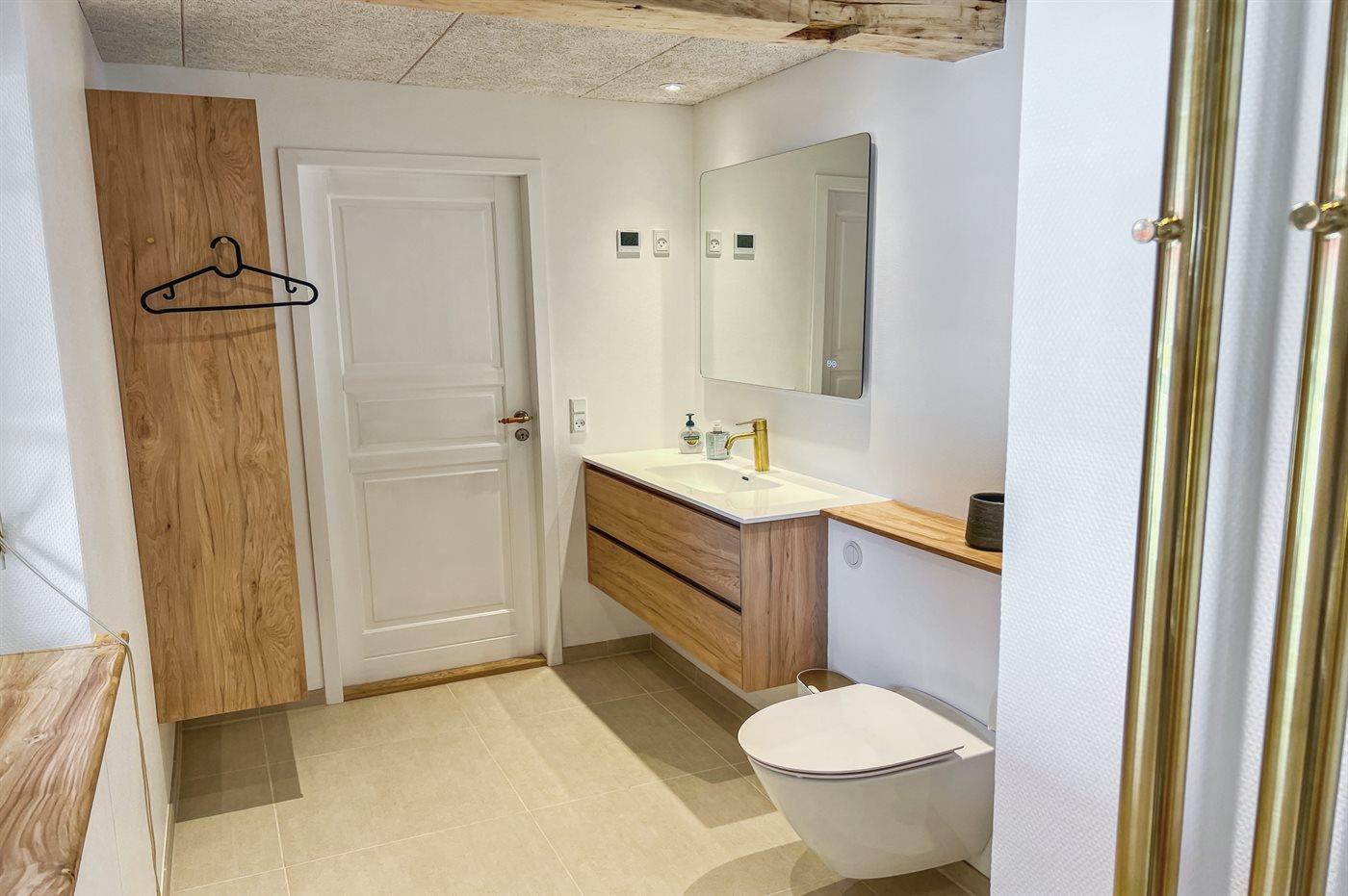 Ein neues, modernes Badezimmer wurde 2025 gebaut. Du kannst es sowohl vom Hauptschlafzimmer als auch vom Flur aus betreten – so wird niemand unnötig gestört.
