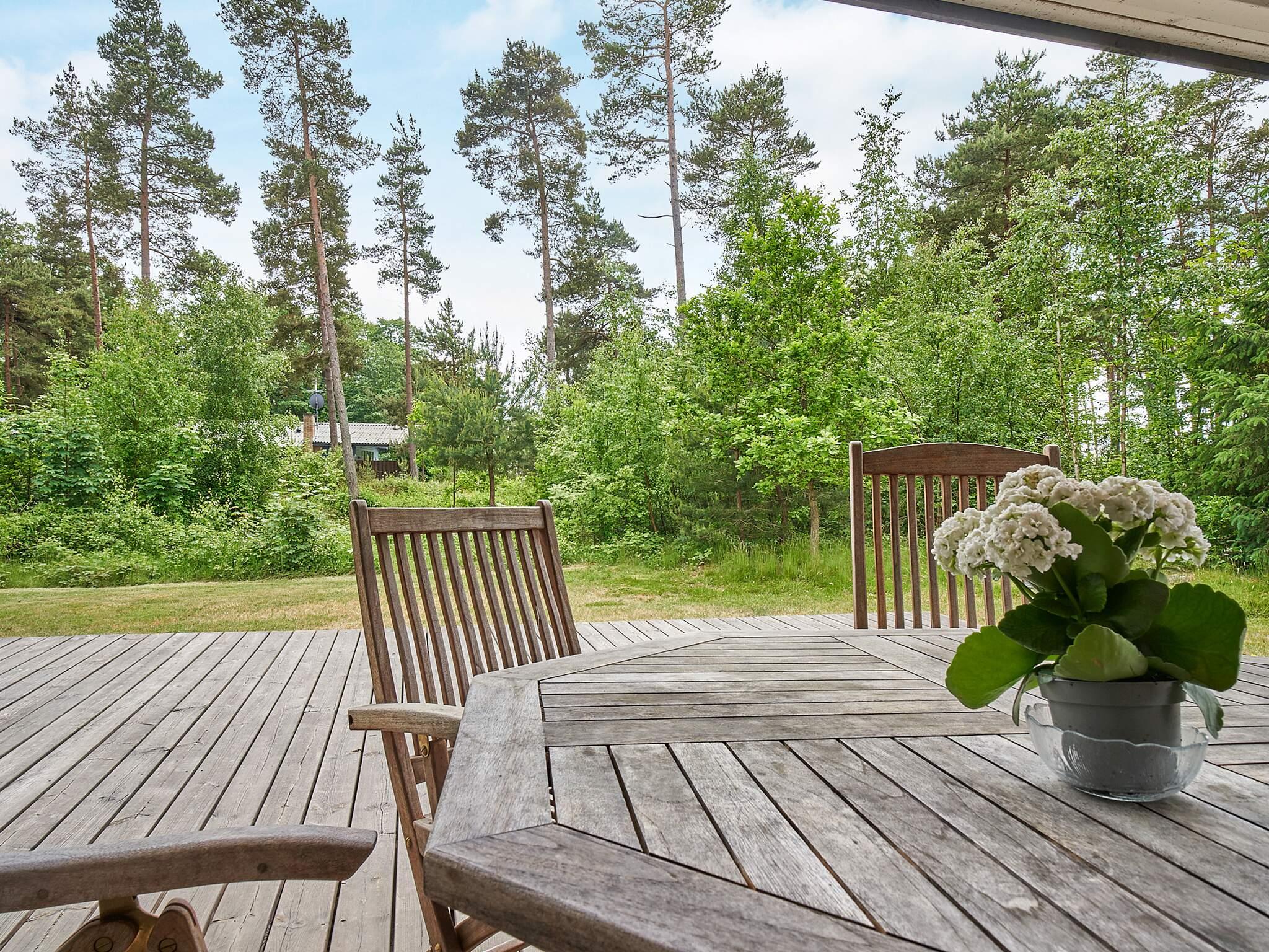 Draußen auf der großen Holzterrasse können Sie von morgens bis abends Ihren Urlaub in ruhiger und schöner Umgebung genießen. Wenn Sie einen Ausflug an die Ostsee planen, liegt der Strand nicht weiter entfernt, als dass Sie dorthin spazieren können. Neben dem Carport wurde auch ein praktischer Duschbereich im Freien geschaffen, in dem Sie sich nach dem Laufen oder einem Strandausflug kurz abspülen können.