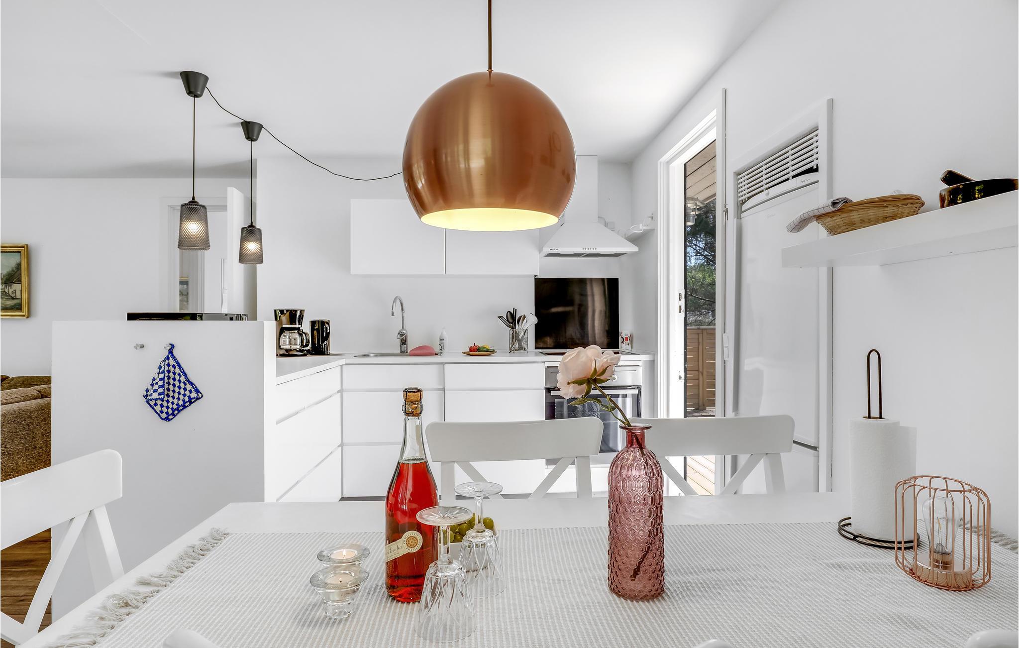 Ihr einladendes Ferienhaus begrüßt Sie in einer ruhigen Ferienhaussiedlung. Im Inneren erwartet Sie ein helles und komfortabel möbliertes Interieur, das eine warme Atmosphäre schafft. Die geräumige Wohnküche lädt dazu ein, gemeinsam köstliche Mahlzeiten zuzubereiten und diese anschließend am Esstisch zu genießen. Spielen Sie unterhaltsame Brettspiele und wärmen Sie sich in den kühleren Jahreszeiten am knisternden Feuer des Kaminofens.