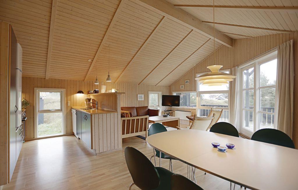 Gepflegtes und hübsch eingerichtetes Ferienhaus in einer schönen Gegend. Hier erleben Sie eine schöne Natur und einen herrlichen Sandstrand. Im Haus gibt es 3 Schlafzimmer, ein nettes Badezimmer und eine richtig gemütlich eingerichtete Wohnküche. Vom Wohnzimmer haben Sie teilweise Meerblick und in ihm genießen Sie auch das viele Licht, das durch die großen Fenster herein kommt. In der feinen Küche ist es ein Leichtes Ferienmahlzeiten zuzubereiten und dabei ein Auge auf die schöne Natur Bornholms zu haben. Auf der großen Holzterrasse vor dem Wohnbereich stehen komfortable Gartenmöbel. Ein Fußweg führt vom Haus zum Strand. Kurzer Abstand zum öffentlichen Spielplatz, der schön in der Natur eingebettet ist. Ein schönes Haus in einer Gegend zum Relaxen.