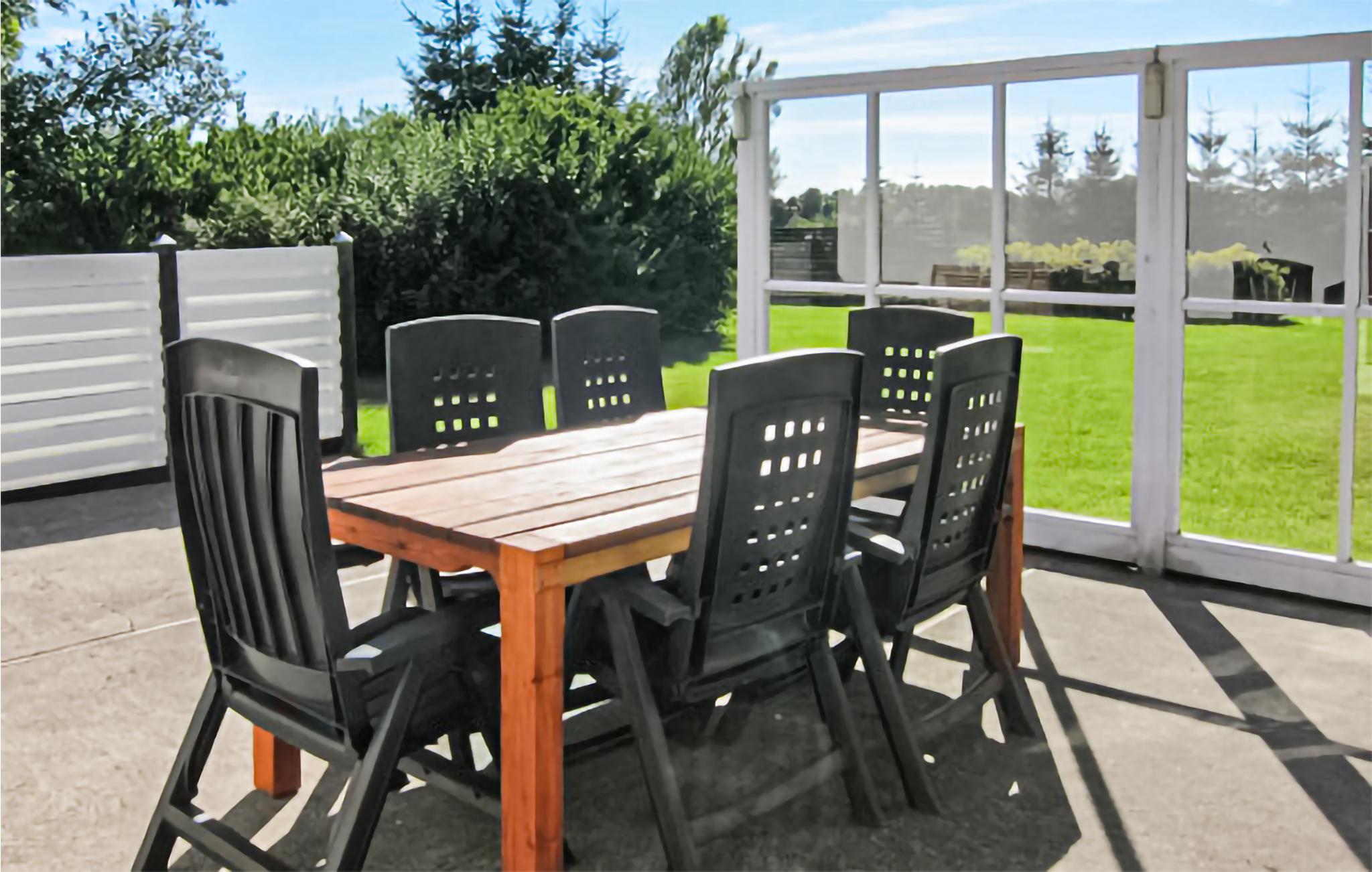 Das Haus verfügt über einen schönen, sonnigen Innenhof mit Terrasse mit Outdoormöbeln, Markise und Grill zum Zubereiten Ihrer Mahlzeiten im Freien. Es gibt eine weitere Terrasse mit Gartenmöbeln auf der Westseite, wo Sie ein gutes Buch, eine Tasse Kaffee oder ein Glas Wein, oder gute Gesellschaft in der Sonne genießen können. Im großen Garten haben die Kinder viel Platz zum Spielen und Toben.
