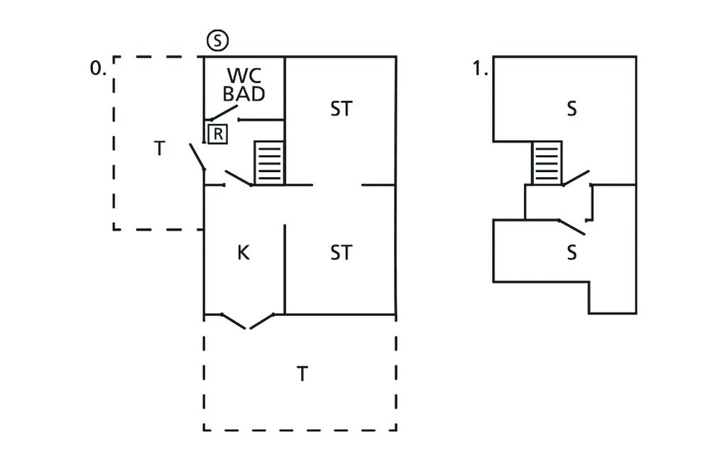 Schlafzimmer (nr. 1) - 1 Schlafmöglichkeit. (Einzelbett(en)). 2 Schlafmöglichkeiten. (Doppelbett(en)).