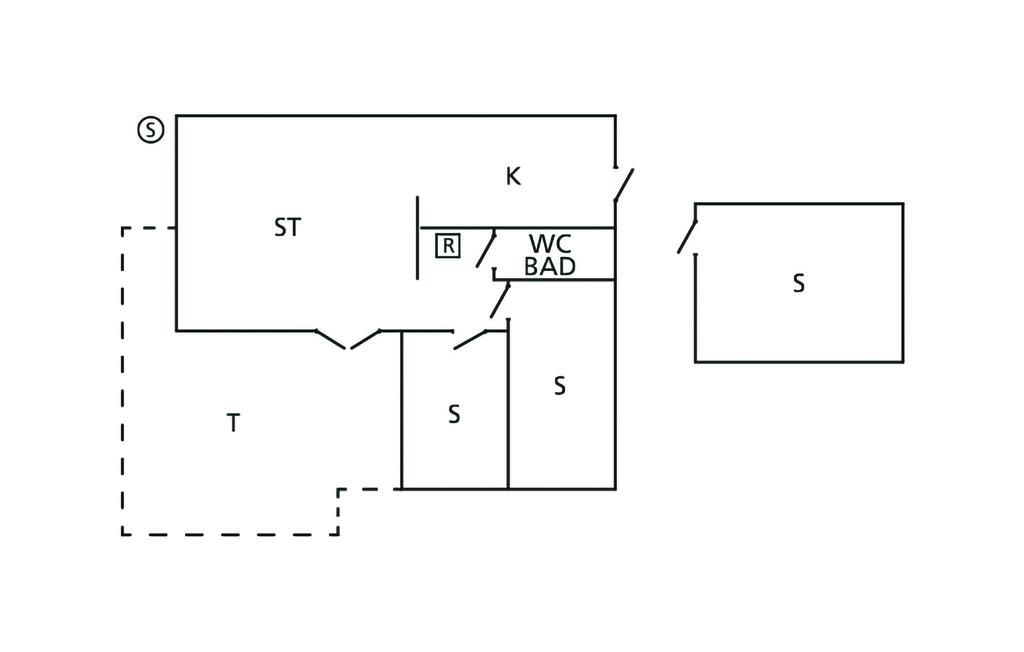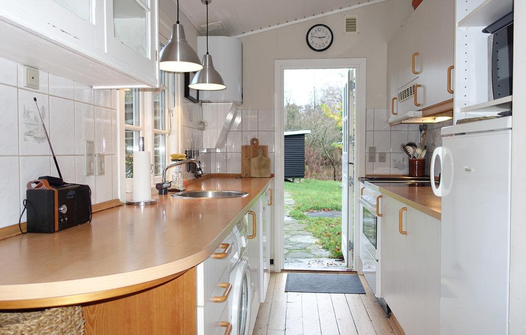 Das Herzstück des häuslichen Lebens ist das schöne Wohnzimmer mit Essbereich, wo Sie es sich bequem machen, Radio oder Musik hören und sich im Winter am knisternden Feuer im Holzofen erfreuen können. Direkt daneben befindet sich die offene, gut ausgestattete Küche mit Spül- und Waschmaschine. Im Badezimmer gibt es eine komfortable Fußbodenheizung. Das Haus verfügt über zwei Schlafzimmer und einen dritten Schlafbereich (Doppelbett mit 140 cm) in einem gemütlichen Anbau, der 12 der insgesamt 67 m2 ausmacht.