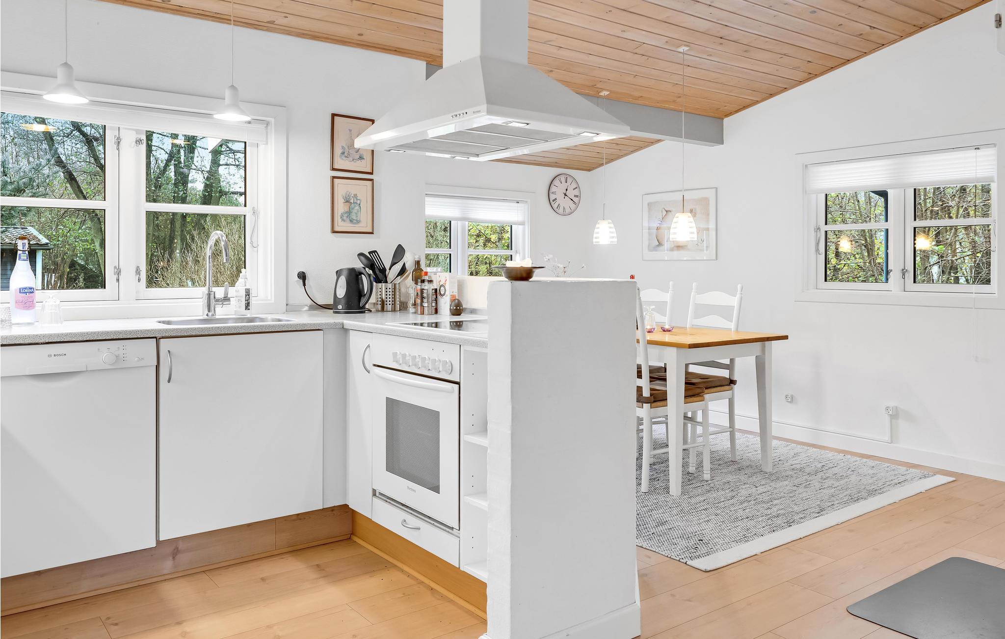 Sie wohnen einen kurzen Weg vom Strand entfernt, wo Sie Ihre Zeit mit Schwimmen, Sonnenbaden und Spielen im Sand verbringen können. Sei es mit dem Fahrrad oder mit dem Auto, die überschaubare Größe der Insel ermöglicht Ihnen zu jedem Ausflugsziel eine einfache und schnelle Anreise. Der Besuch der Sehenswürdigkeiten Ruine Hammershus, Dueodde Strand, der Rundkirche von Østerlars, dem berühmten Echotal (Ekkodalen) oder den Klippen Helligdomsklipperne ist wärmstens empfohlen. Auch die äußerst charmanten Städtchen wie Aakirkeby, Snogebæk und Svaneke bieten sich an.