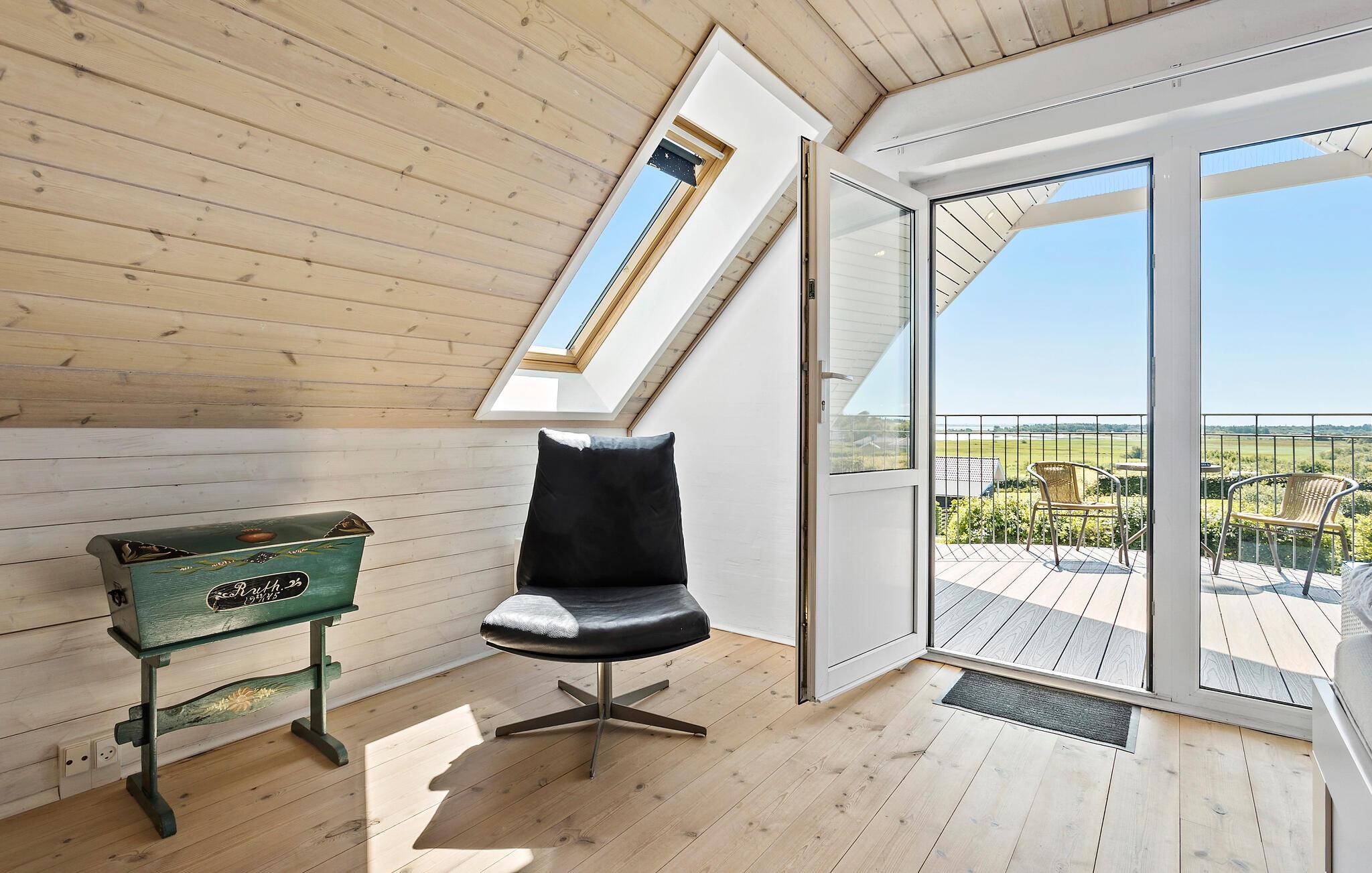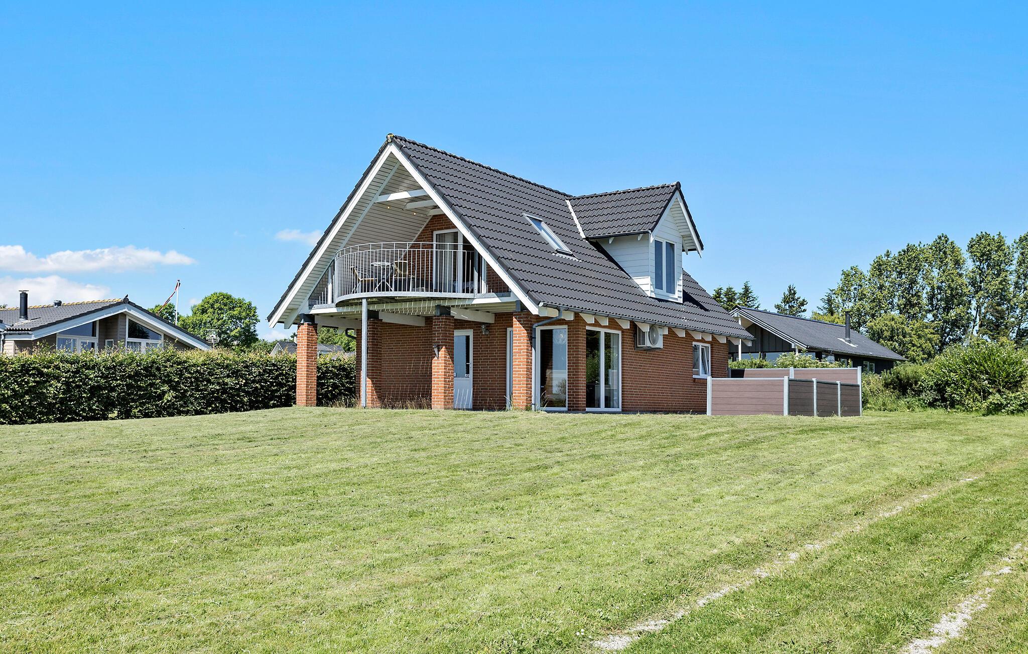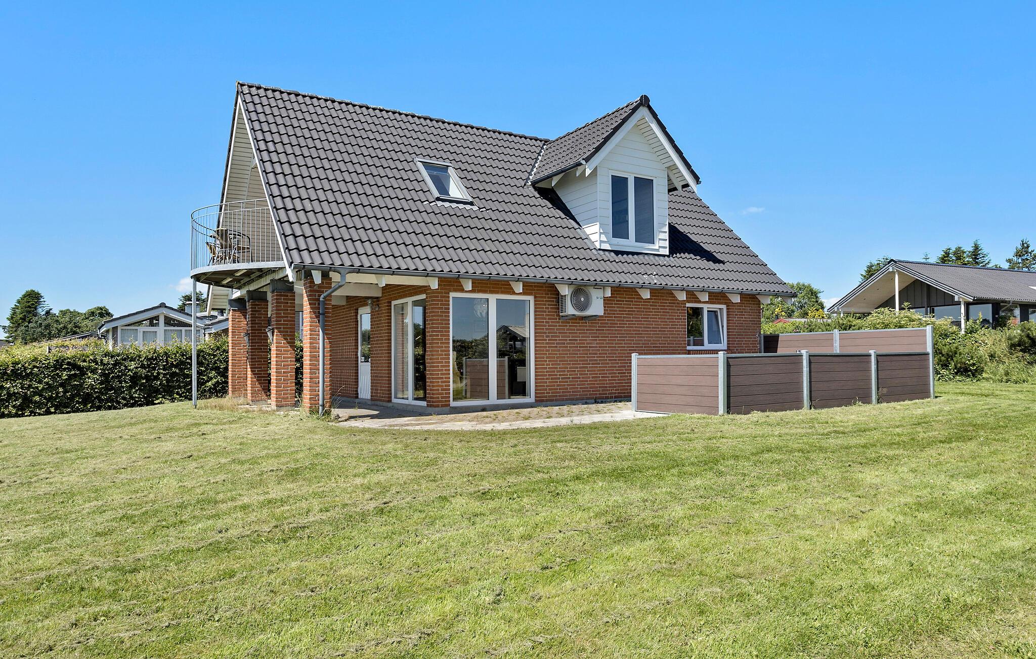 Gemütliches Ferienhaus auf Mors mit Panoramablick, Terrasse, Kamin und moderner Ausstattung für entspannte Urlaubstage.