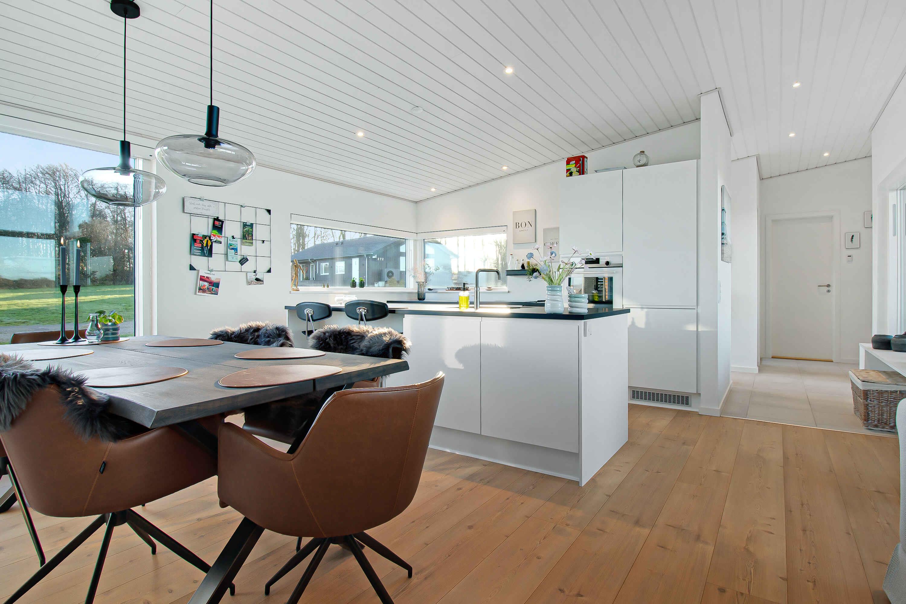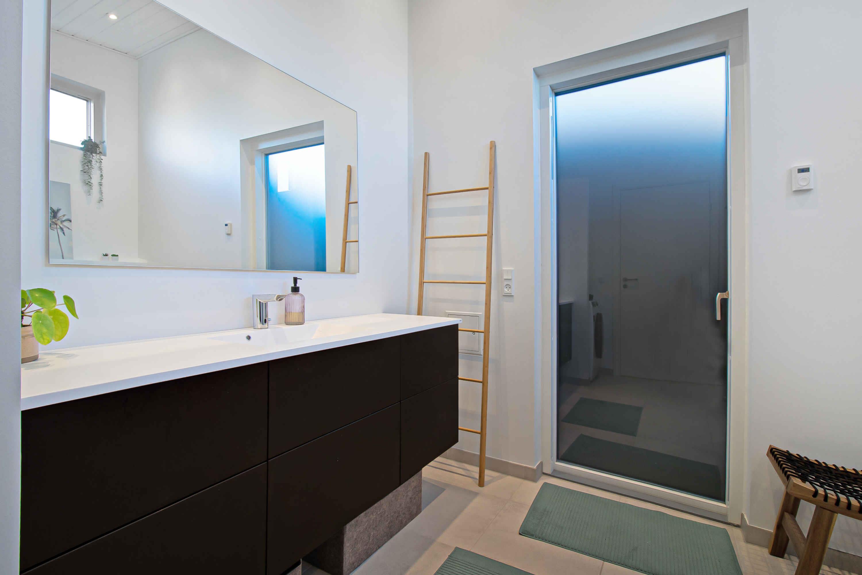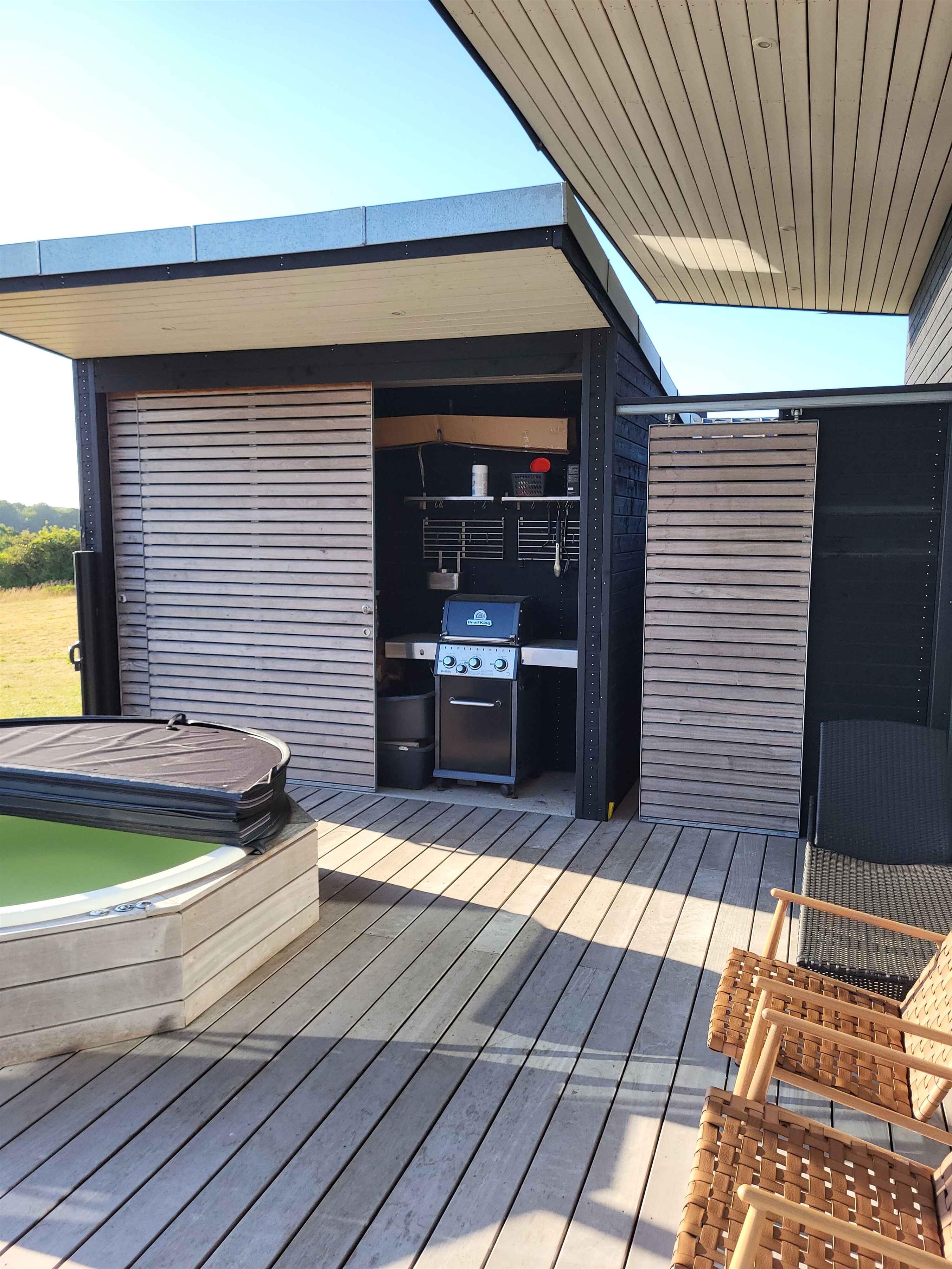 Freuen Sie sich auf einen Urlaub in diesem neuen und hochmodernen Ferienhaus in der nähe von Genner Buchten. Das Haus enthält 100 m2 Luxus aufgeteilt in 3 Schlafzimmer mit 1 Doppelbett und 2 kleinere Doppelbetten, 2 große Badezimmer und eine große, geschmackvolle Wohnküche. Die Wohnküche ist das Herz des Hauses mit einer hellen funktionalen Küche (mit Weinkühlschrank und Quooker), einem schönen Essbereich mit Platz für die ganze Familie sowie einem wunderschönen Wohnzimmerbereich mit einem großen bequemen Sofa und einem Fernseher. Die großen Fenster des Hauses sorgen für ein wunderbares Licht in allen Räumen sowie einen schönen Blick auf die Umgebung. Draußen ist eine fantastische Terrassenumgebung mit 2 überdachten Terrassen mit Grill und Gartenmöbeln. Auf der einen können Sie den Blick auf das Meer und die Morgensonne geniessen, während Sie auf der anderen Seite einen wunderbaren Panoramablick auf Wald und Landschaft sowie die Abendsonne genießen können. Freuen Sie sich auch darauf, unter der Außendusche abgespült zu werden und im Aussenwhirlpool mit Blick auf die malerische Umgebung zu entspannen. Vom Haus aus sind es nur 400 Meter zu einem schönen Strand, wo Sie ein Bad nehmen oder einfach nur die schöne Aussicht auf das Wasser genießen können. In der Umgebung finden Sie Folgendes: 18-Loch-Golfplatz 300 m entfernt Campingplatz innerhalb von 800 m Gute Einkaufsmöglichkeiten in Løjt Kirkeby 3,7 km Außerdem sind es nur 11 km bis zu Aabenraa, die eine Fülle von Erlebnissen und Möglichkeiten anbietet – egal ob Sie Shopping, Sehenswürdigkeiten oder Konzerte suchen, hier werden Sie etwas nach Ihrem Geschmack finden. Es wird nicht an Jugendgruppen unter 25 Jahren vermietet. Hinweis: Mieter müssen Bettwäsche und Handtücher mitbringen. Bettdecken und Kopfkissen sind im Haus. Achtung: Wird nicht für gewerbliche Nutzung vermietet.