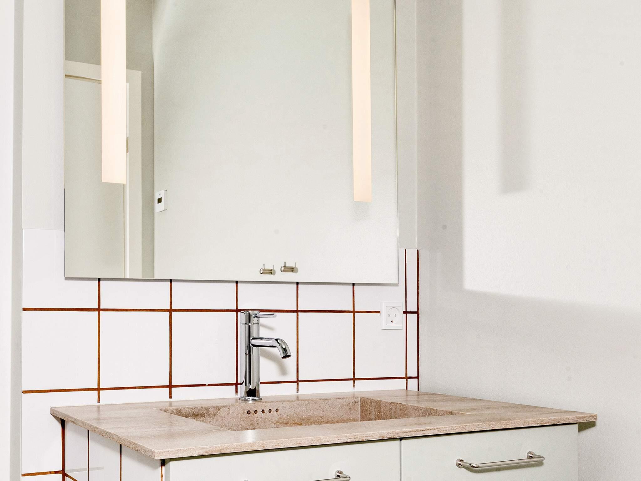 Küche: Ofen, Kühlschr. m. Gefrierfach, Mikrow., induktionskomfur, Kaffeem., Spülm.