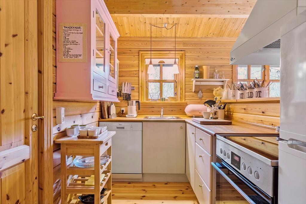 Mit seinen rustikalen Holzwänden und den hohen Decken bietet dieses Mietobjekt viel klassischen Charme. Für ein Maximum an Gemütlichkeit und Atmosphäre sorgt der im Wohnraum platzierte Kaminofen. Zu gemütlichen, entspannten Stunden laden das Ecksofa und der Essplatz ein. Sobald sich bei dir und deiner Familie der Hunger meldet, kannst du in der offenen Küche köstliche Mahlzeiten und kleine Snacks kreieren. Dank der offenen Wohnlösung genießt du währenddessen weiterhin die Gesellschaft deiner Lieben. Die drei Schlafräume verfügen über insgesamt sechs Schlafplätze. Nachdem du dich nachts so richtig ausgeschlafen hast, weckt ein morgendliches Duschbad im schlicht aber ansprechend eingerichteten Badezimmer all deine Lebensgeister.