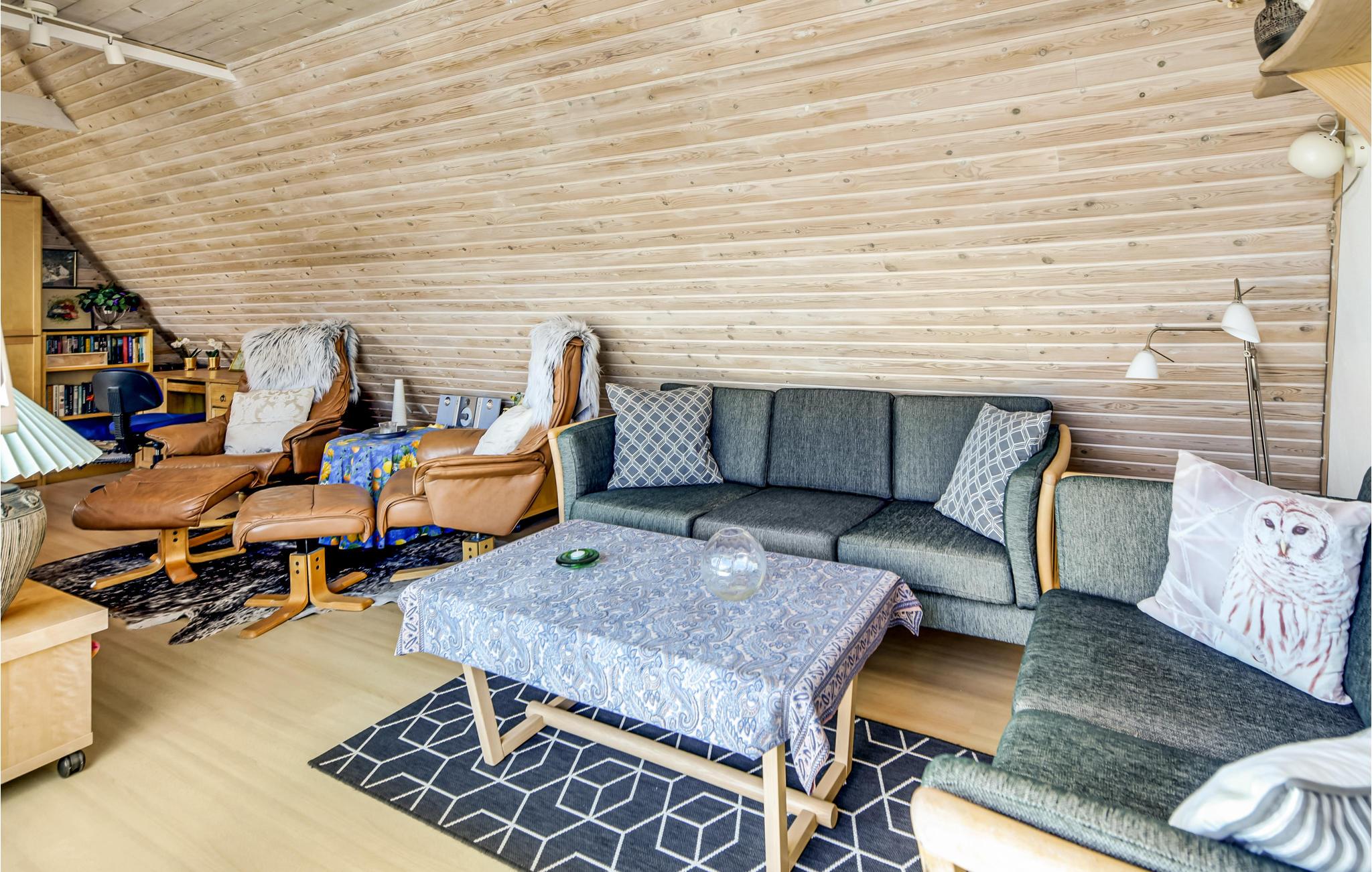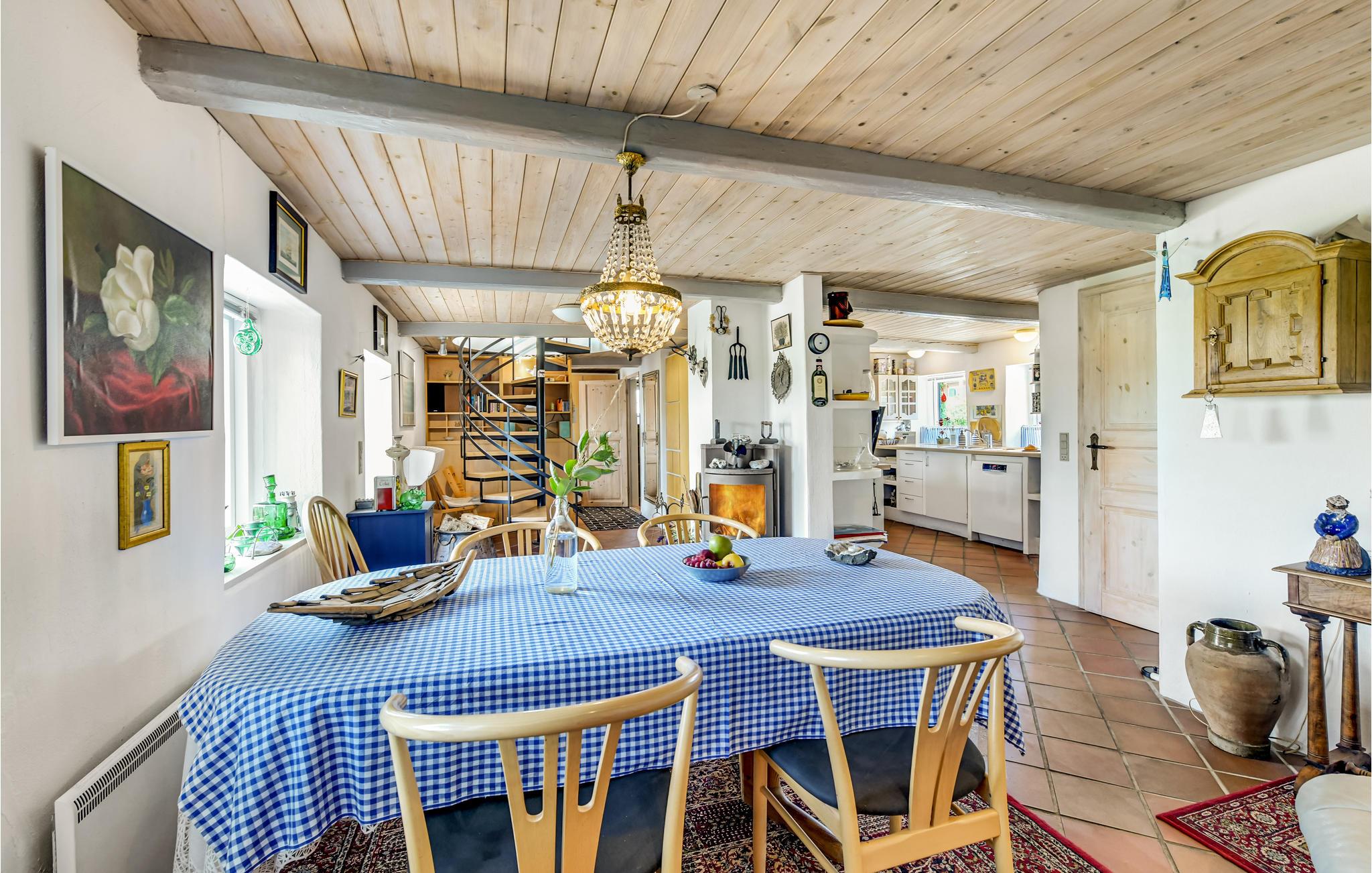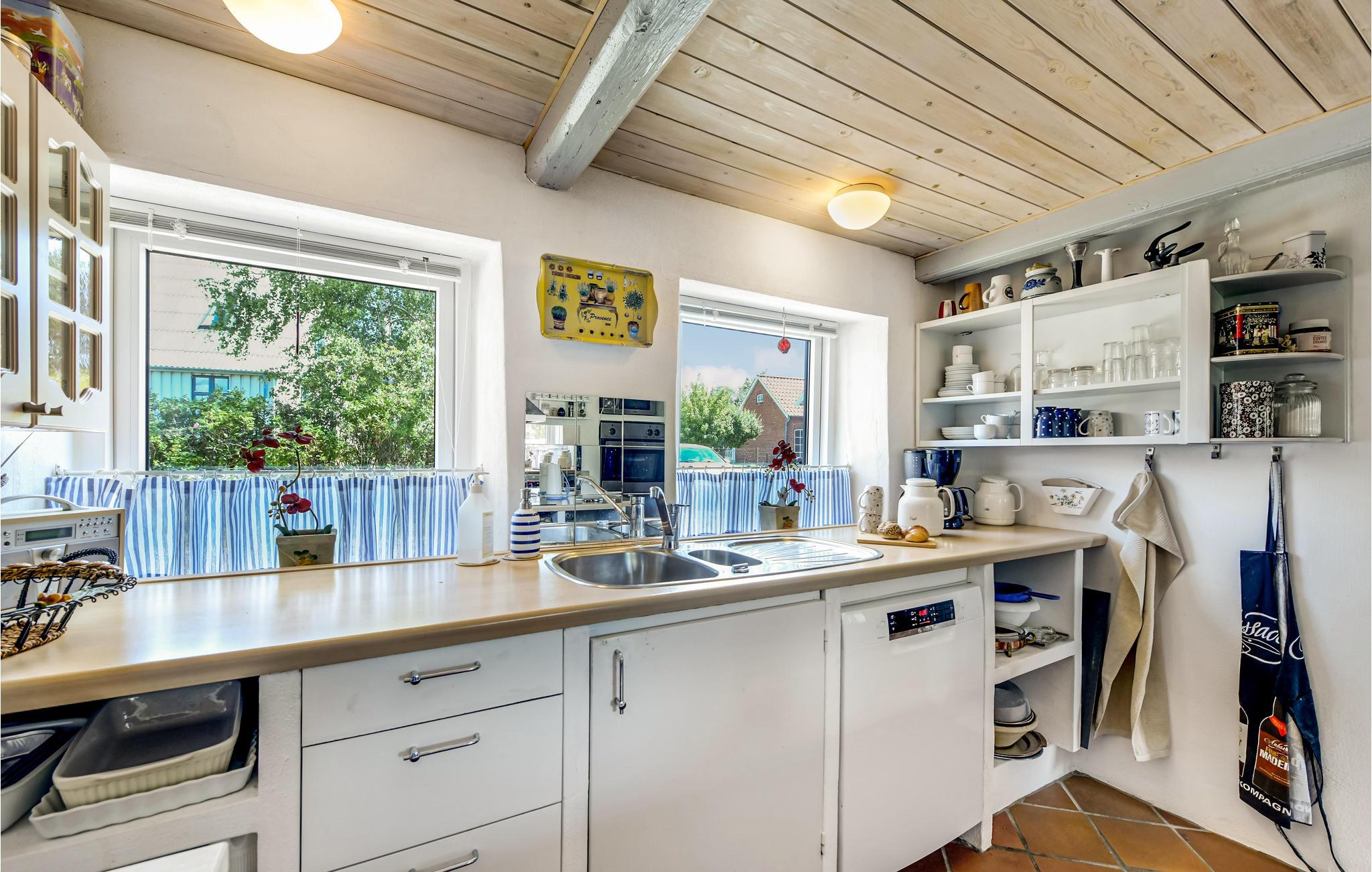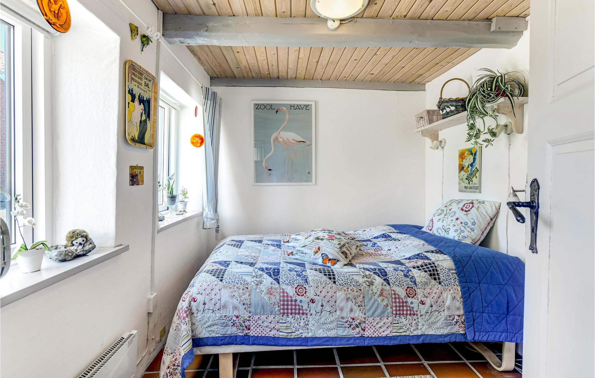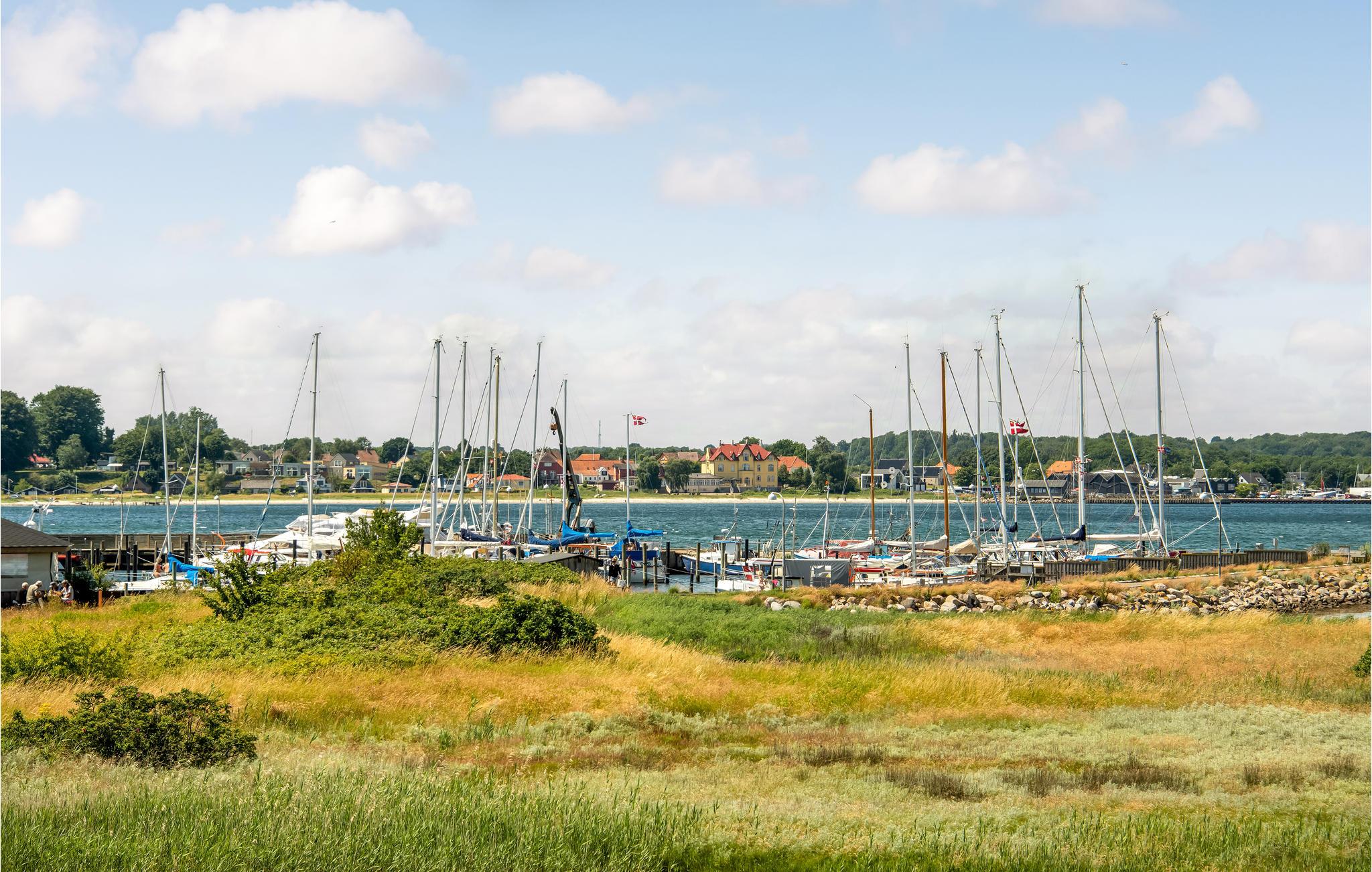Schon auf der Fähre nach Aarø kommen Sie in Urlaubsstimmung. Auch wenn die Überfahrt nur 7 Minuten dauert, bemerken Sie, dass Sie sich auf dem Weg in ein Stückchen Paradies befinden. Auch das Ferienhaus ist eine wahre Perle mit seiner Panoramaaussicht auf den Hafen von Aarø und den Kleinen Belt. Das Reihenhaus auf zwei Etagen beherbergt im Erdgeschoss eine gut ausgestattete Küche im Stil einer Landküche. Ein Kaminofen und die Wärmepumpe sorgen für die Heizung. Schlafen können Sie im Schlafzimmer oder im Alkoven, beide mit Doppelbetten. Zwei Badezimmer. Der kleine Garten vor dem Wohnbereich ist umschlossen und privat. Über eine Wendetreppe wird das Obergeschoss erreicht, dort liegen ein weiteres Wohnzimmer mit Panoramaaussicht und der Zugang zur Dachterrasse. Dieses Geschoss beherbergt auch das zweite Badezimmer des Hauses. Auf der Insel ist es nie weit zum Wasser und schönen Stränden, auch gibt es wenige Autos und keinen Stress. Einkaufen können Sie u. a. in Bauernhofläden. Ein richtiges Erlebnis verspricht ein Besuch auf dem Bauernhof Brummers Gaard, Sie können sich ein schmackhaftes Steak von einem Galloway-Rind schmecken lassen. Auf Brummers Gaard gibt es Fahrräder, Meerkajaks, Angelnetz und Bollerwagen zu mieten. Aarø Vingård, ein Weingut, besitzt ein gutes Restaurant und serviert den eigenen Wein. Weinverkostung kann vor Ort gebucht werden. Die Natur der Insel ist beeindruckend, ein großes und unberührtes Gebiet ist ein Vogelschutzgebiet und sehr sehenswert. An der Insel legt auch die Fähre Helene an, mit ihr können Sie ins 12 km entfernte Haderslev schippern. Haderslev ist eine nette alte Stadt mit Fachgeschäften und Museen. Die Fähre zur Insel Aarø legt einmal die Stunde ab, wenn es eine Schlange gibt, dann fährt die Fähre auch öfters. Dann sind Sie nach maximal 15 Minuten auf der Insel. Das Hafengebiet mit den Fischerbooten und Segeljachten hat einen besonderen Charme. Wenn Sie gerne angeln, dann können Sie Ihren ausgiebigen Fang gut reinigen und aufbewahren, denn im Haus sind ein Fischreinigungsplatz und ein große Gefriereinrichtung vorhanden.