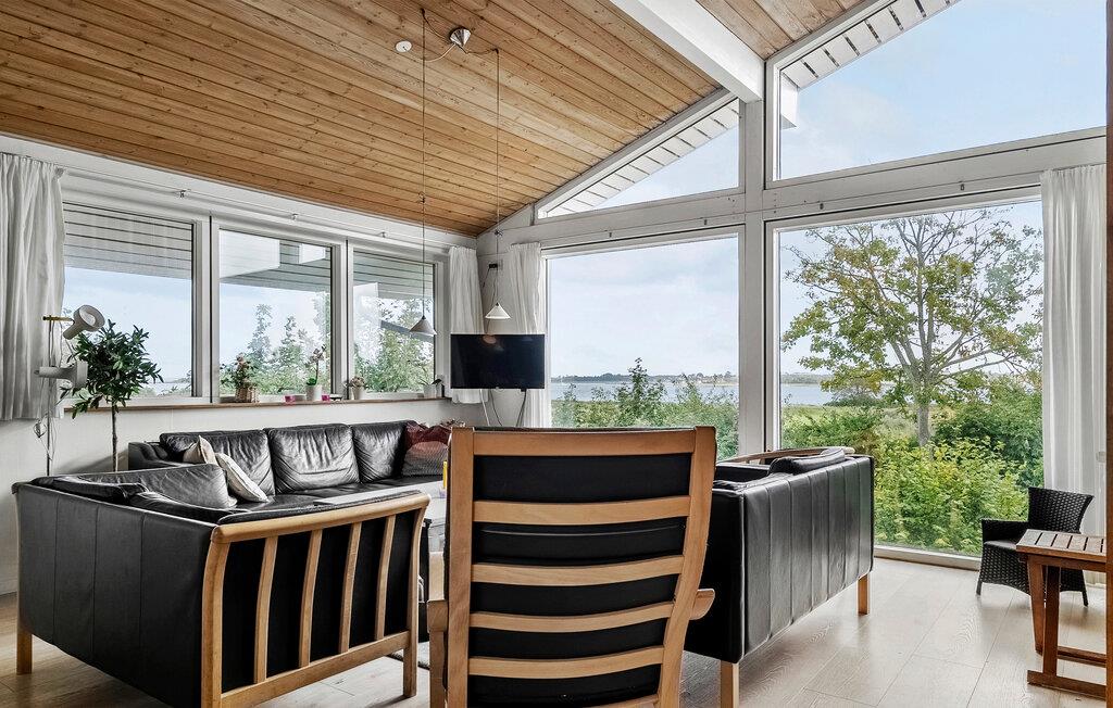 Modernes Ferienhaus in Årøsund mit Pool, Sauna und Fjordblick, ideal für erholsame Tage am Wasser.