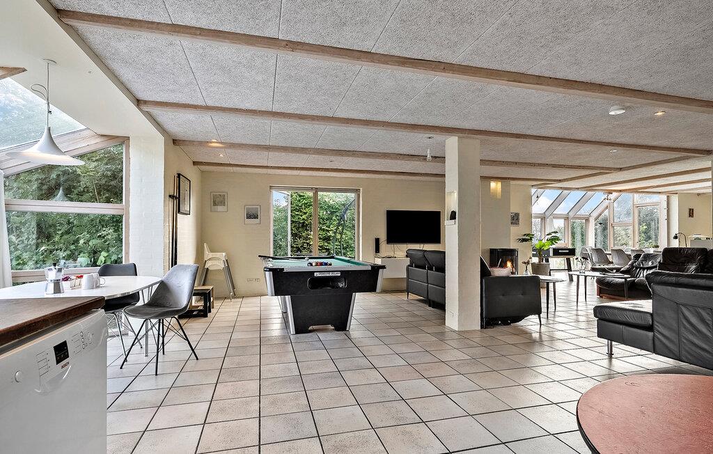 Wenn Sie mit einer großen Familie oder vielen Freunden einen wunderschönen Urlaub verbringen wollen, ist dieses Haus genau das richtige für Sie. Ein lichtdurchfluteter Wohnbereich mit verschiedenen großen Sofas bieten ausreichend Platz, um gemeinsam zu entspannen, fernzusehen oder einen Spieleabend zu verbringen. In der Küche können Sie leckere Mahlzeiten zubereiten und diese am langen Esstisch genießen. Ein Billardtisch lädt zu geselligen Runden und heiteren Duellen ein.
