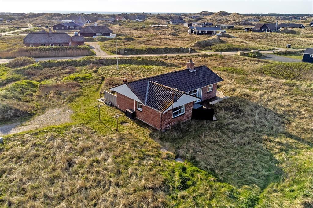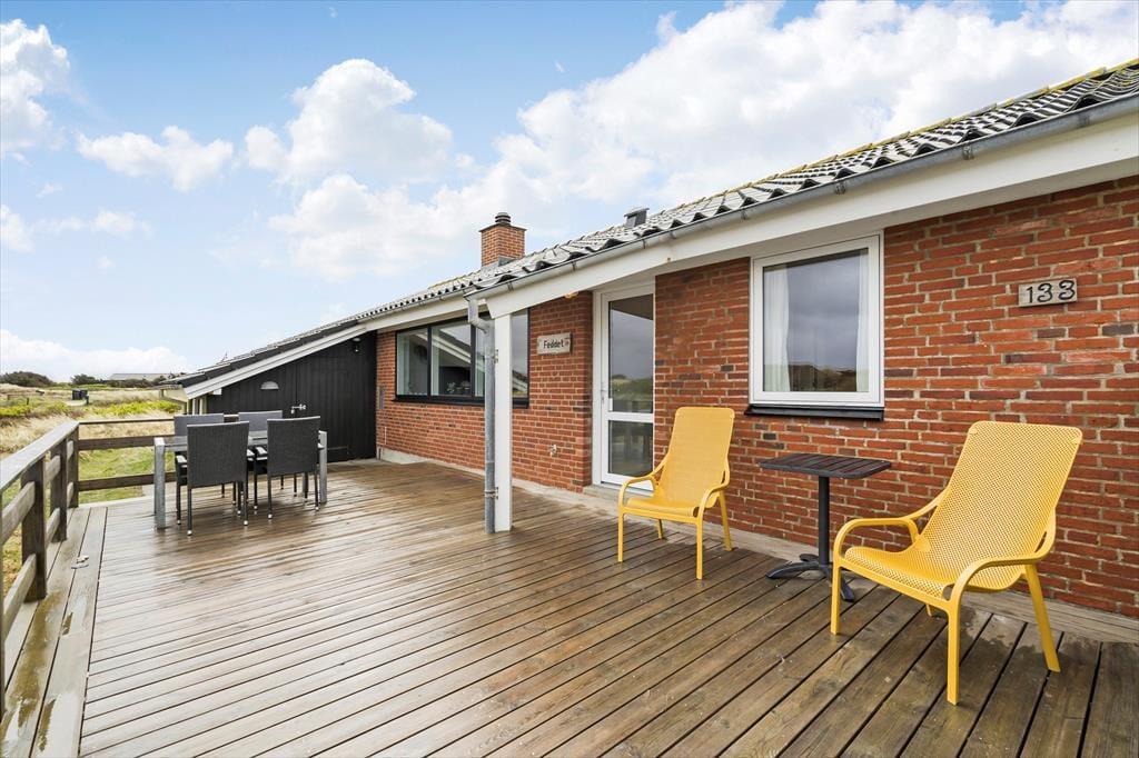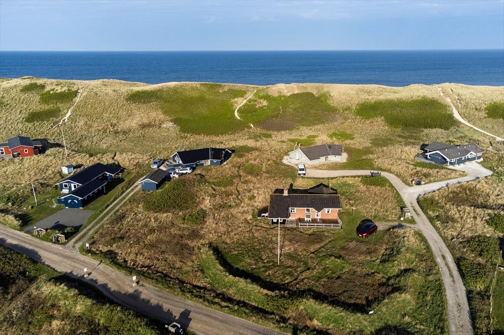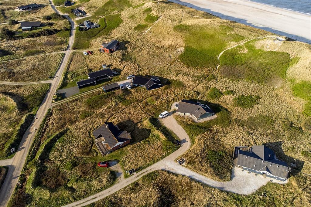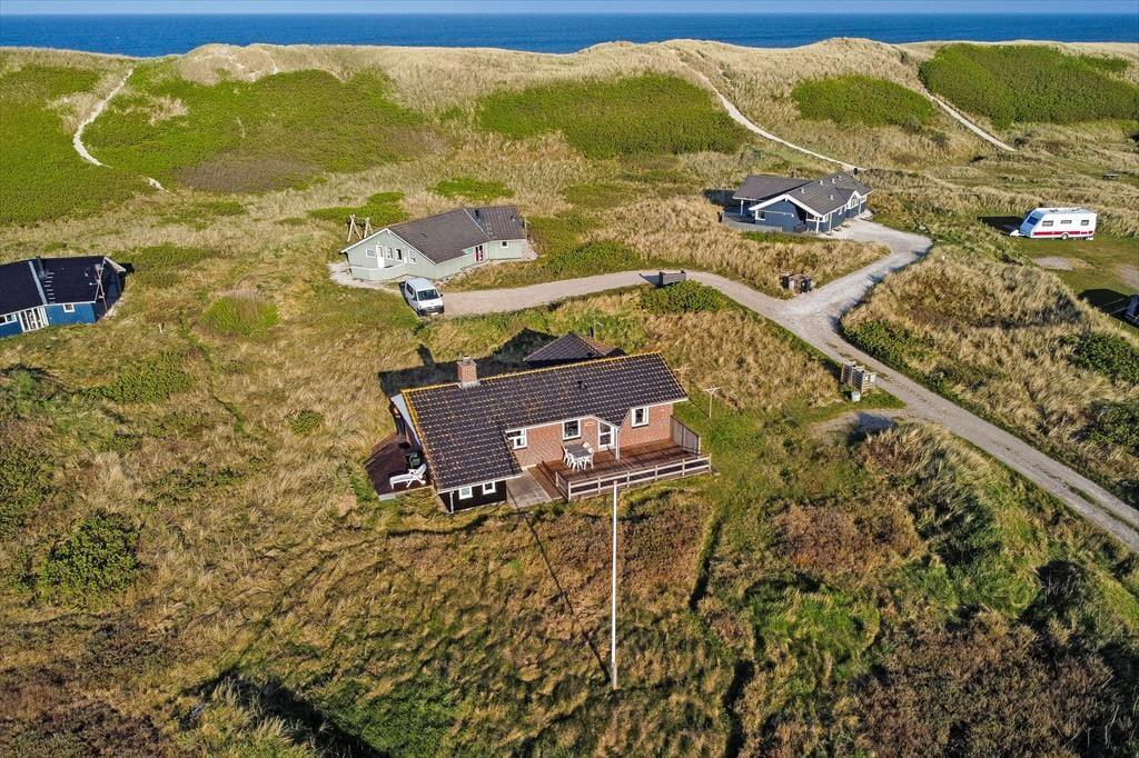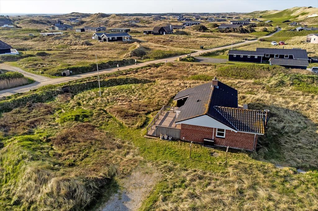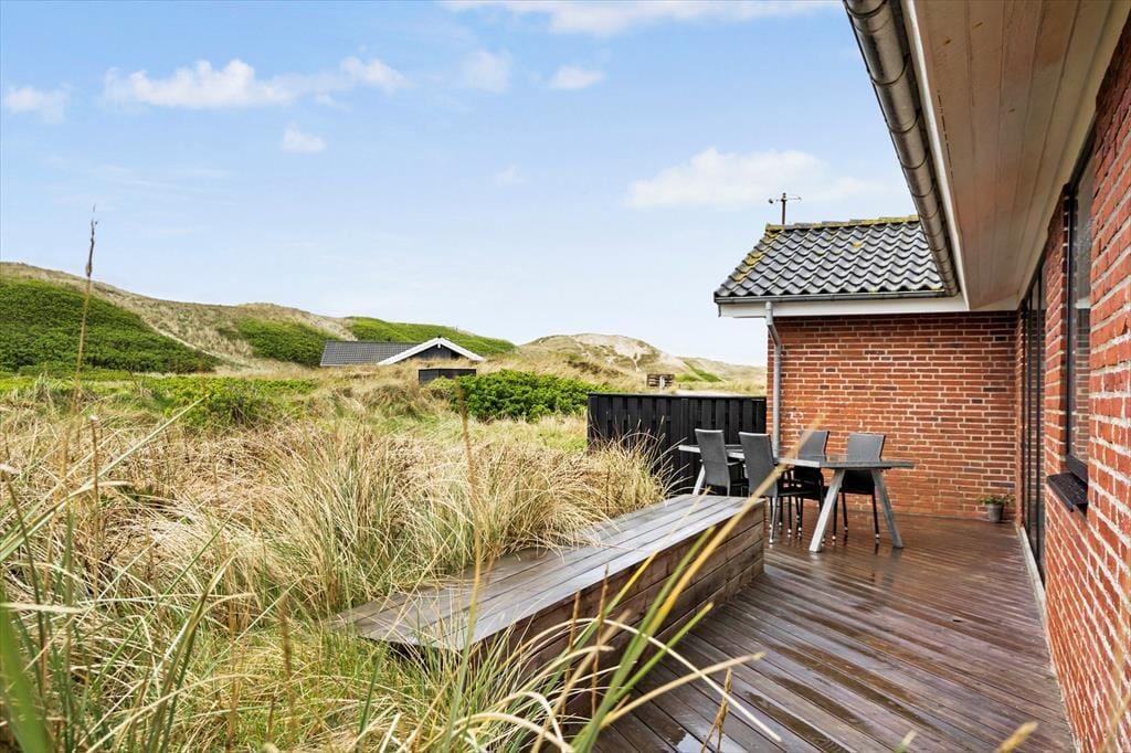 Um das Haus herum erstrecken sich zwei wunderschöne Terrassen, die sicherlich zu deinen bevorzugten Aufenthaltsplätzen werden, wenn die Sonne scheint und der Himmel über Aargab klar und blau ist. Deinen morgentlichen Kaffee kannst du auf der ostseitigen Terrasse genießen. Hier fühlt es sich gut an, den Tag in ruhigem Tempo zu beginnen, während der Rest des Hauses und die umliegende Landschaft langsam erwachen. Später kannst du auf die südwestliche Terrasse wechseln, wo du das Leben genießen und den Blick über das Dünengras und weiter über die Dünen bewundern kannst. Ein oder mehrere Autos können in der Einfahrt parken – und falls du mit einem Elektroauto kommst, hast du die Möglichkeit, es am Haus aufzuladen.