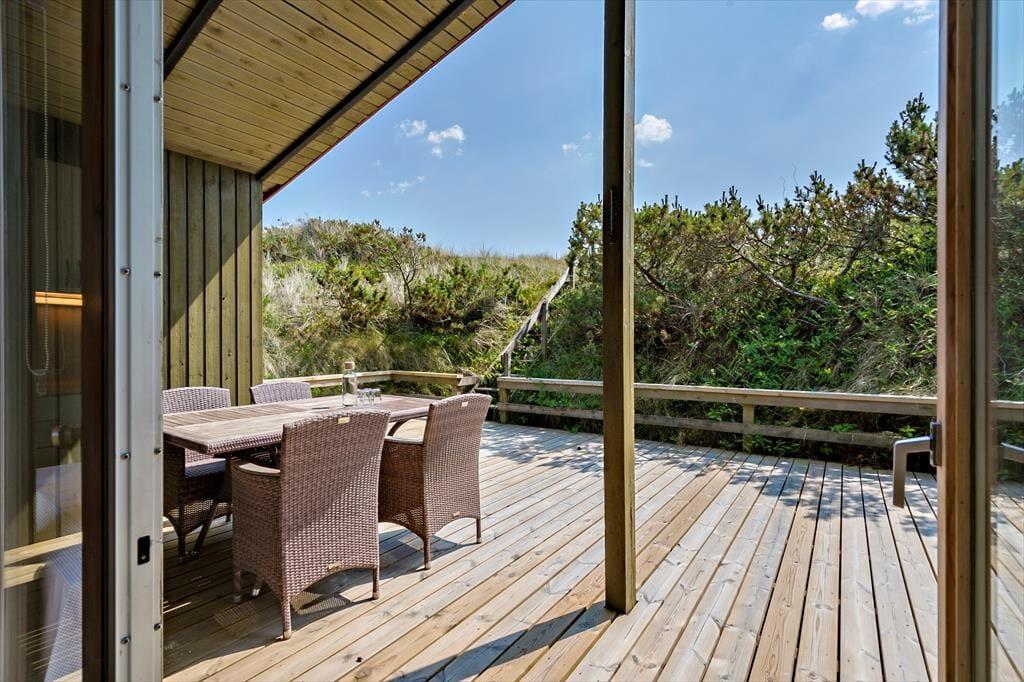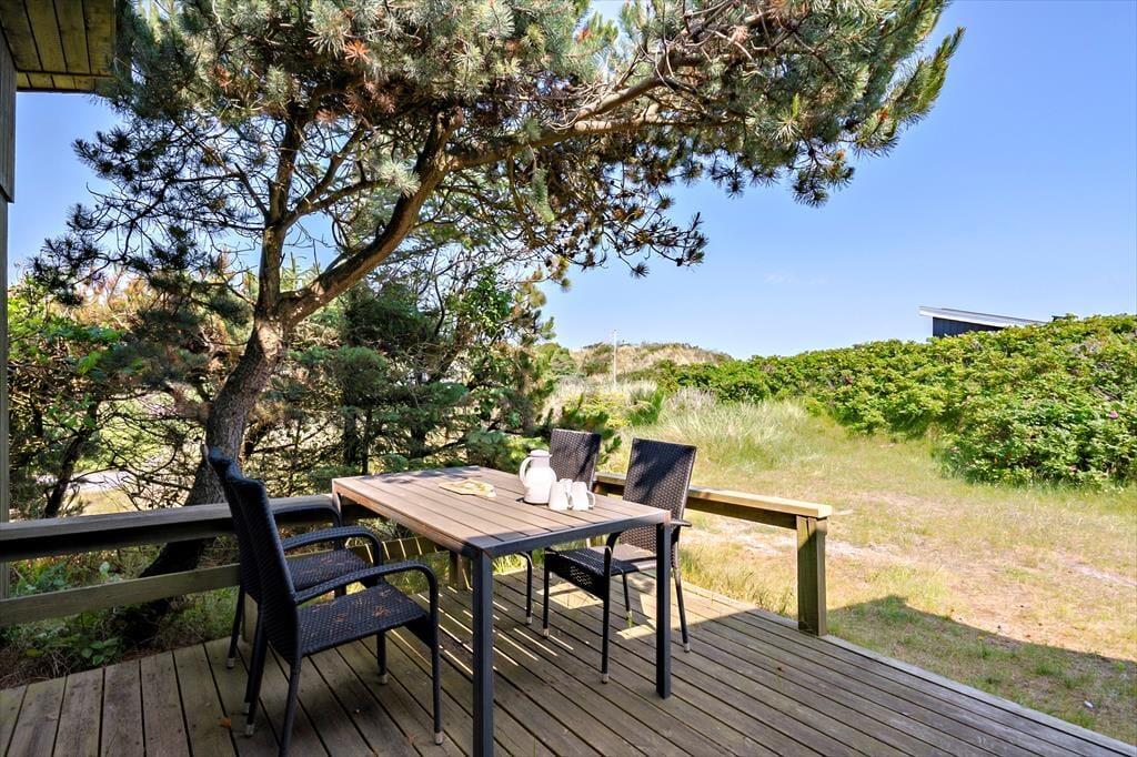 Eine Terrasse an der Nordseite und ein großes, nach Osten und Süden ausgerichtetes Terrassenareal bieten beste Möglichkeiten, die lauen Sommertage in der Sonne zu verbringen. Das schöne Naturgrundstück ist stimmungsvoll und ungestört. Auf der Aussichtsbank genießen Sie einen prachtvollen Blick über die Umgebung und den Ringkøbing Fjord.