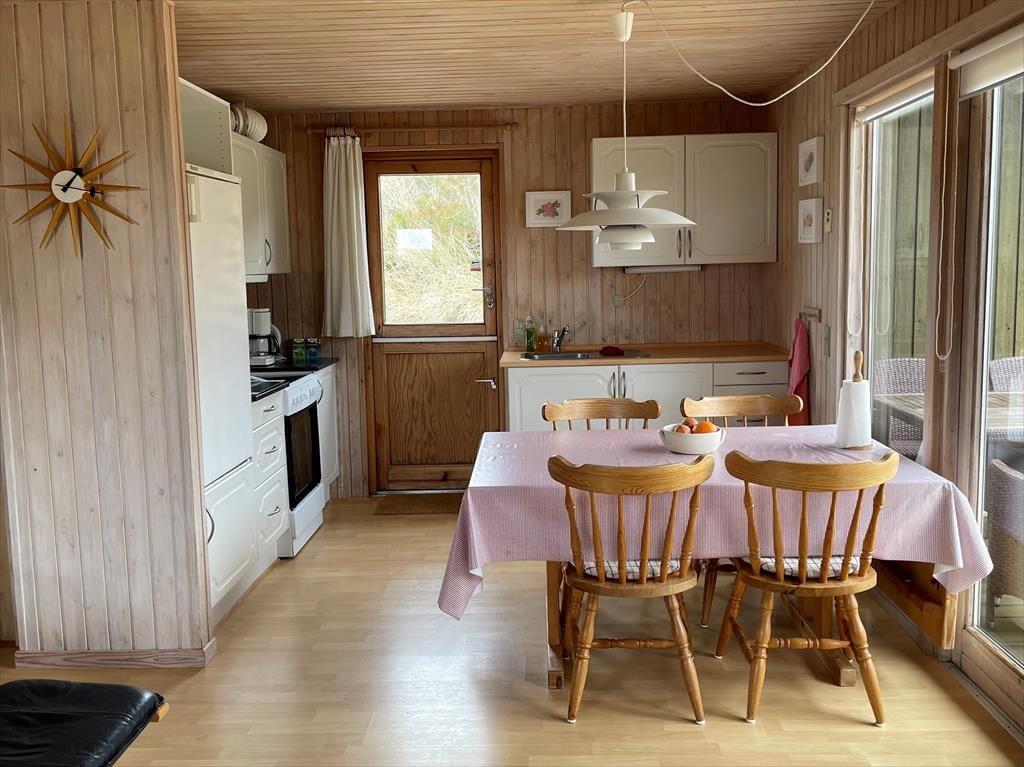 Dieses Mietobjekt verzückt mit echtem, klassischen Ferienhauscharme. Es begrüßt Sie mit einem Eingangsbereich und zwei Schlafräumen mit insgesamt vier Schlafplätzen. Das Badezimmer beinhaltet eine Duschnische. Der Rest der Wohnfläche ist dem offenen Aufenthaltsbereich gewidmet, der sich aus der Küche und dem Wohnzimmer zusammensetzt. Die helle Küche ist funktionell eingerichtet und verfügt über einen Essplatz. Im Wohnraum sorgt ein Kaminofen für behagliche Temperaturen und eine gemütliche Atmosphäre. In diesem Raum werden Sie viel Zeit im Kreise Ihrer Lieben verbringen.