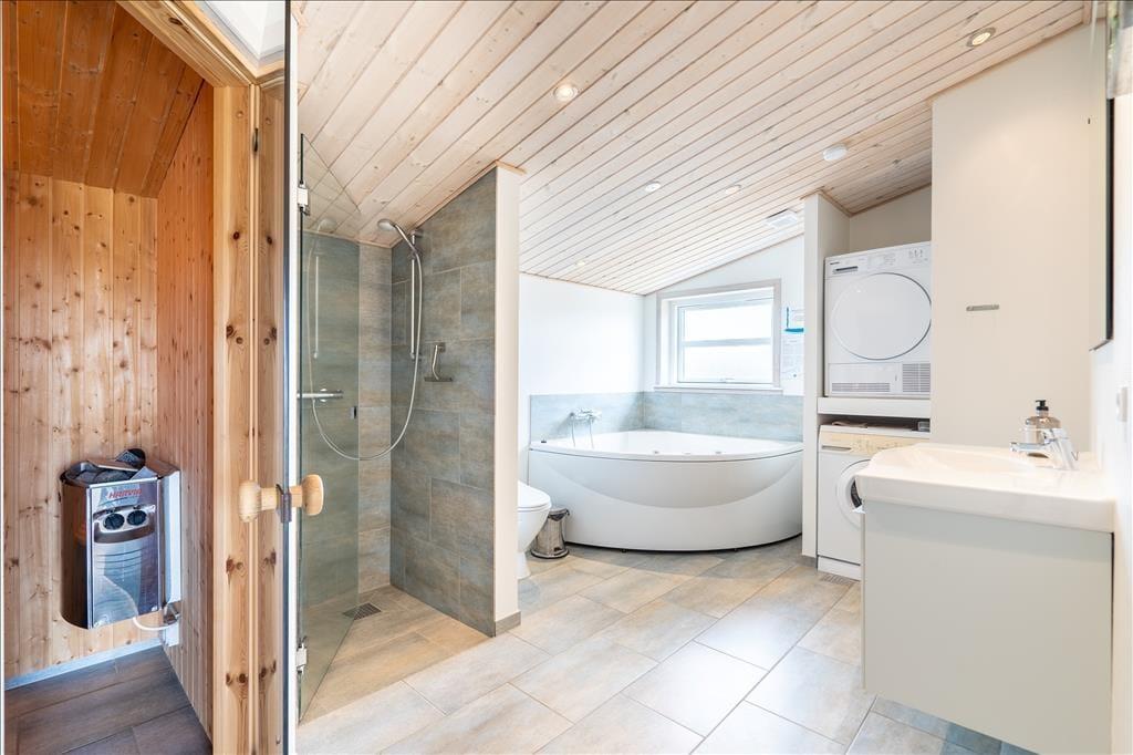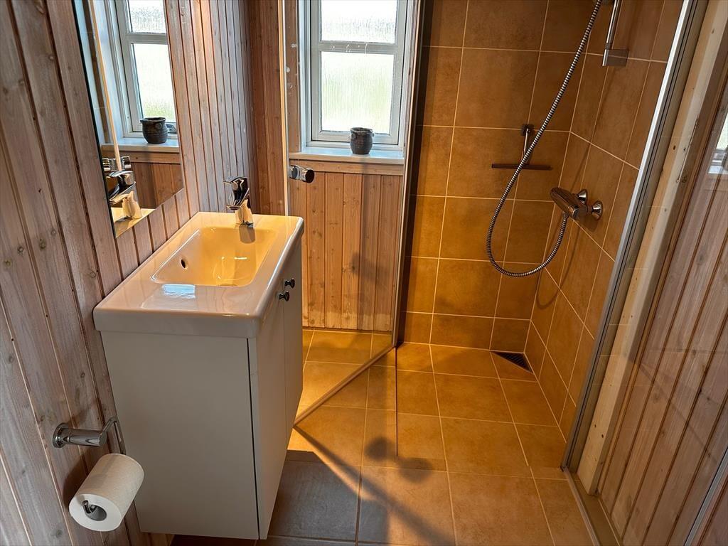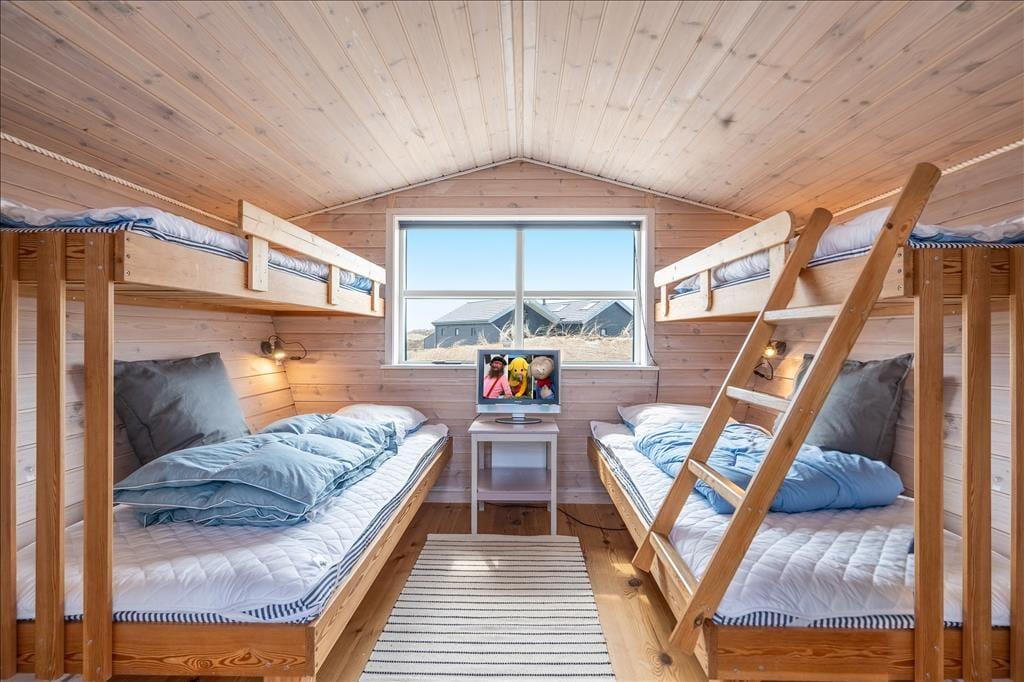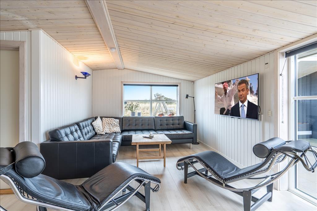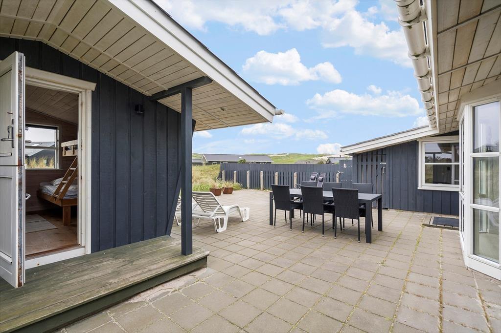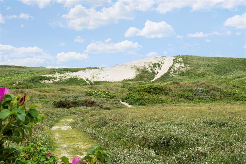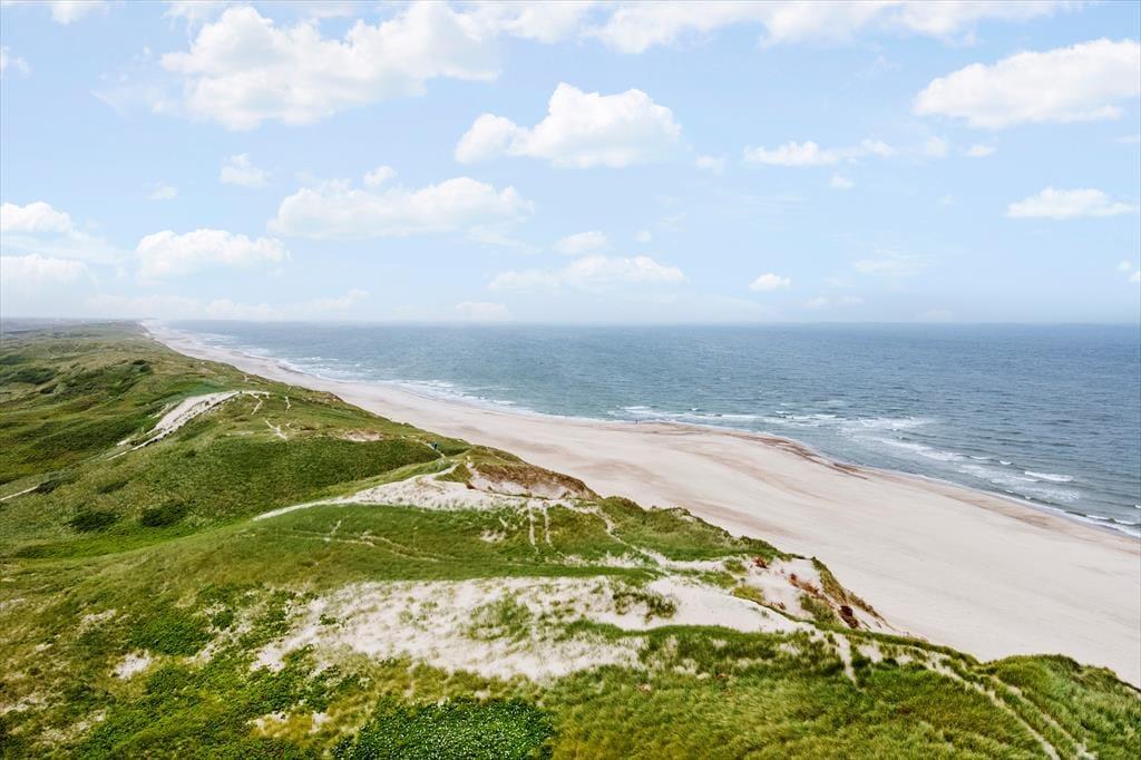 Tingodden ist ein begehrtes Ferienhausgebiet in Aargab, umgeben von einer geschützten Dünenlandschaft zwischen Ringkøbing Fjord und Nordsee. Bis zum Wasser sind es nur 300 Meter, wo Sie lange Spaziergänge unternehmen oder bei schönem Sommerwetter ein kühles Bad nehmen können. Hvide Sande ist nur fünf Autominuten vom Ferienhaus entfernt. Hier finden Sie gut sortierte Supermärkte, spannende Geschäfte und Restaurants, ob Sie nun Gourmetgerichte, Fish'n'Chips oder einfach nur ein Eis essen möchten. Die Surfstrände der Stadt bieten beste Möglichkeiten zum Windsurfen und für andere Wassersportarten. Der Hafen und die Angelseen machen die Stadt zu einem Paradies für Angler.