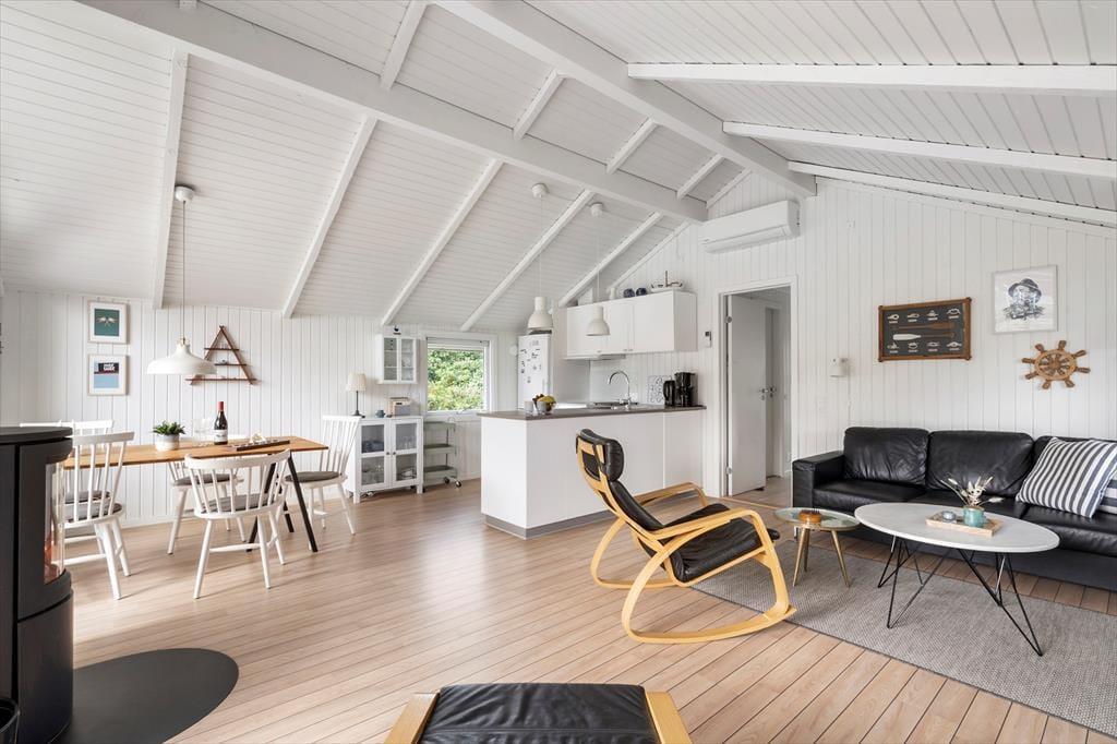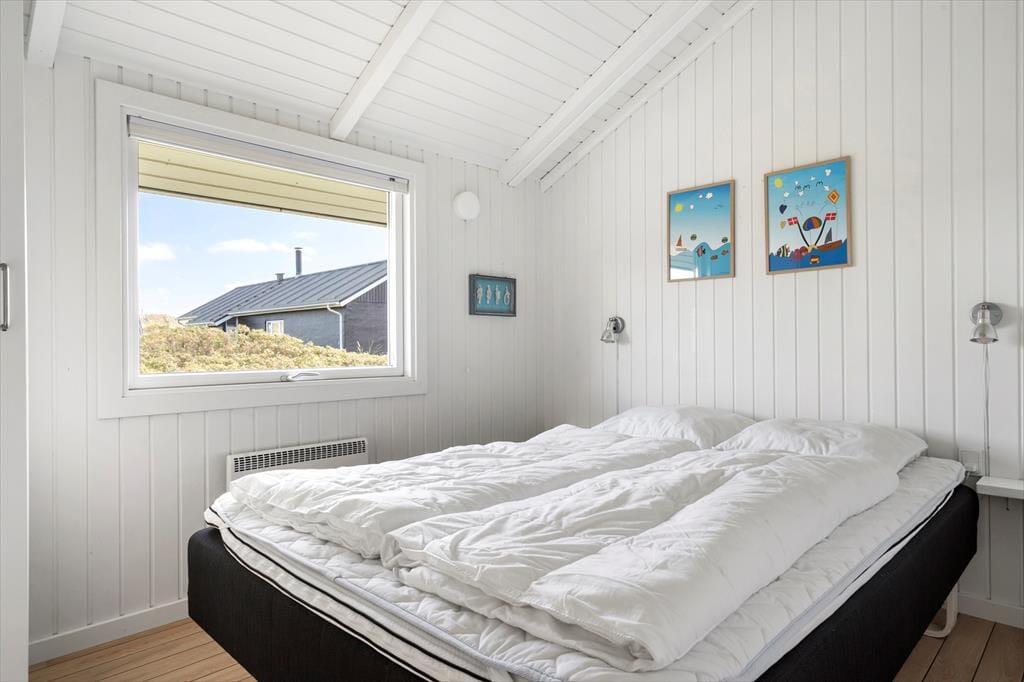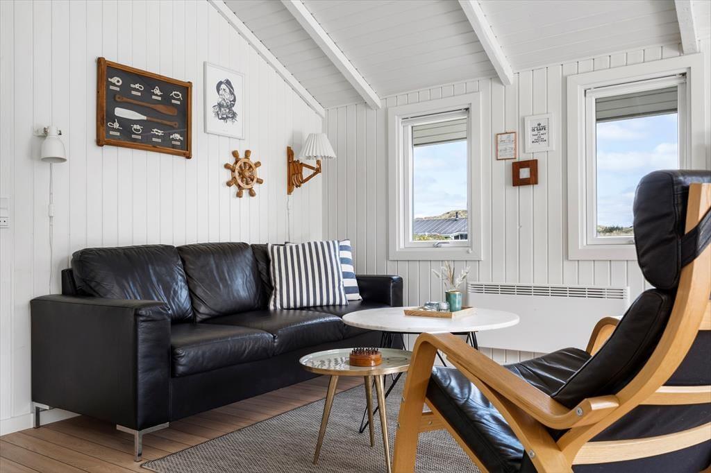 Auch wenn Sie drinnen bleiben, können Sie die Nähe zur Natur genießen, denn durch die großen Giebelfenster des Wohnzimmers haben Sie einen Blick auf die Dünen, die mit Strandhafer und Hagebutte bewachsen sind. Die schöne Aussicht passt perfekt zur Einrichtung, die weiß gestrichene Holzwände, schöne Schiffsböden und Schmuckstücke bietet, die den gemütlichen und maritimen Stil des Zimmers unterstreichen. Der Holzofen und der Alkoven tragen zusätzlich zur gemütlichen Atmosphäre bei, während die offene Küche dafür sorgt, dass Sie alles haben, was Sie brauchen, um morgens, mittags und abends leckeres Essen zuzubereiten. Die drei Schlafzimmer verfügen über bequeme Betten für fünf Personen. Das Badezimmer wirkt dank der jüngsten Renovierung im Jahr 2018 hell und einladend.
